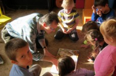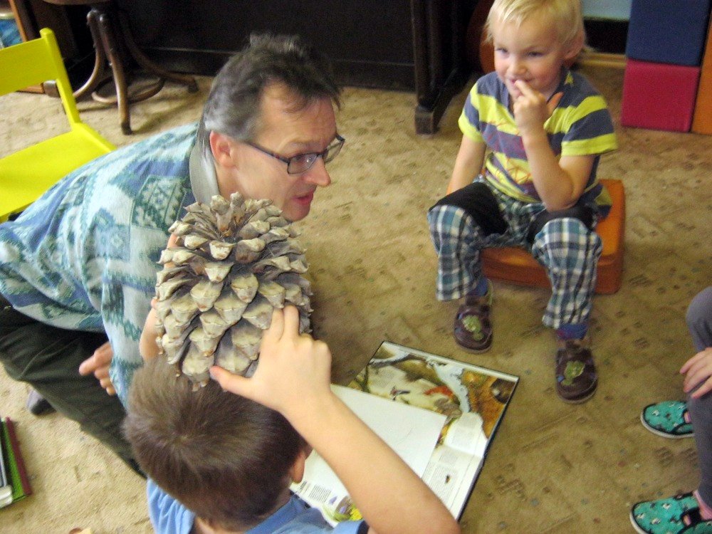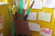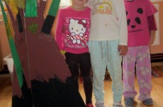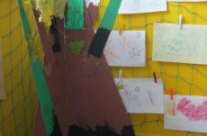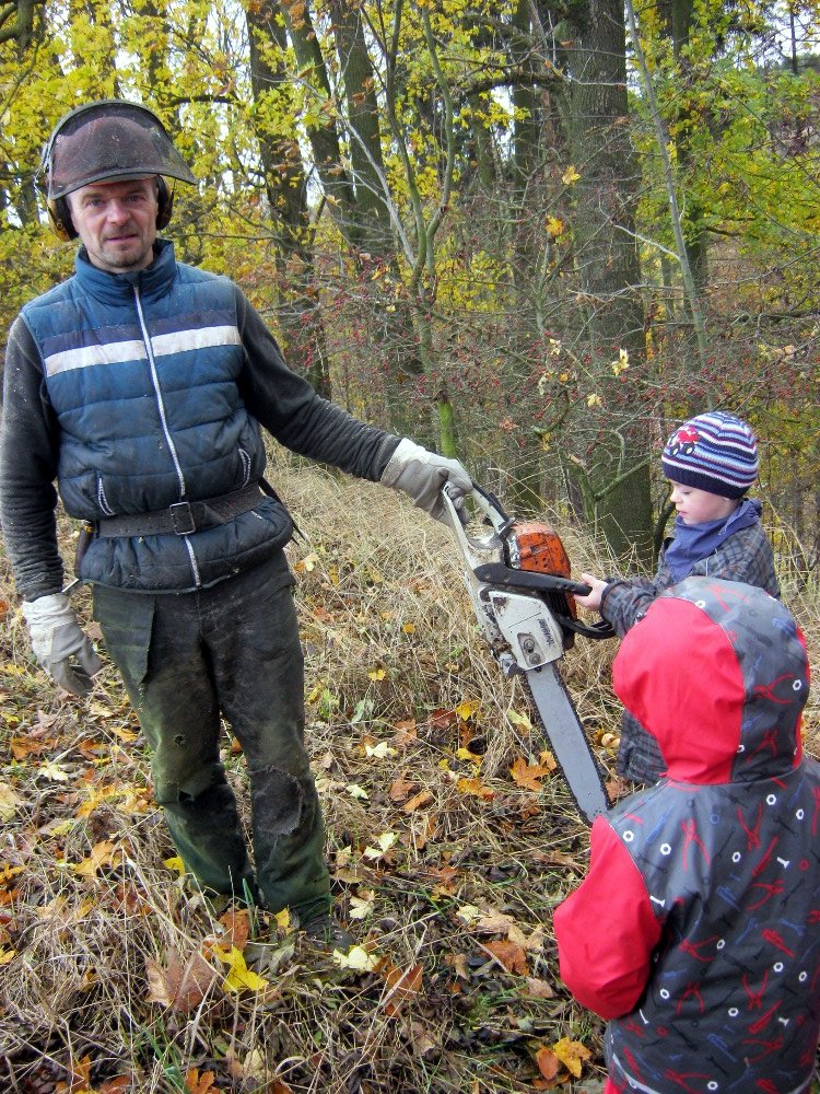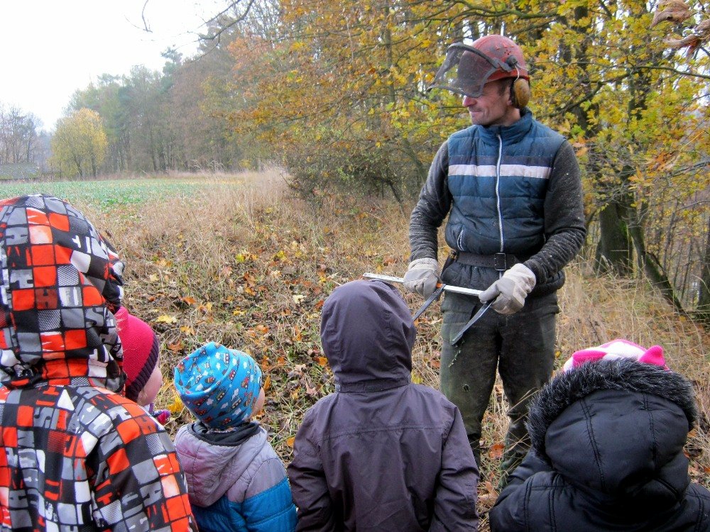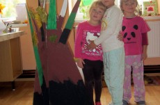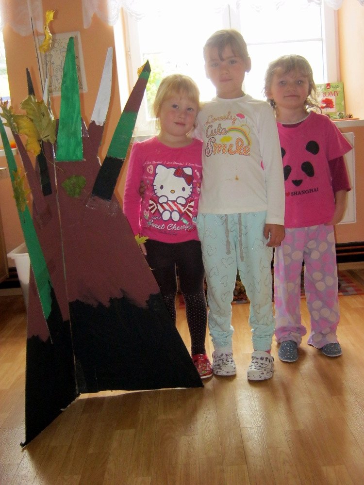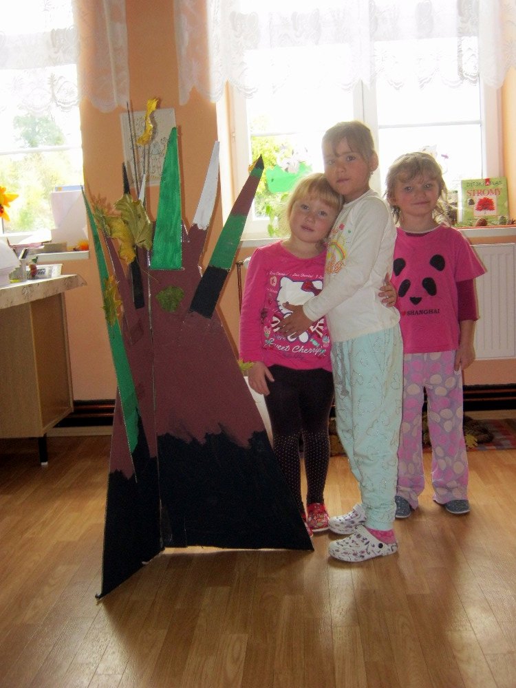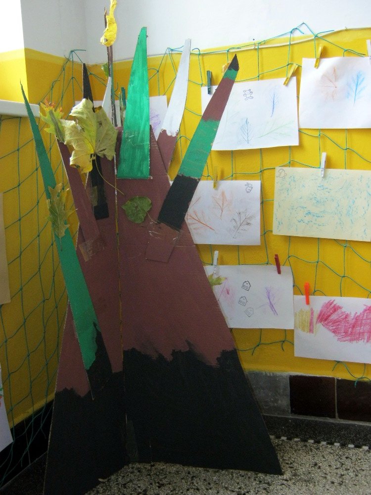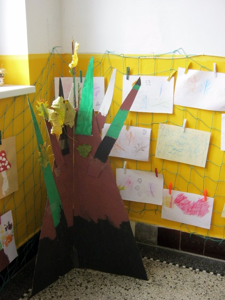 Hodně jsme pracovali s přírodninami. Společně jsme vyrobili velký strom. Besedovali jsme s panem ekologem, podívali jsme se na práci dřevaře v lese, donesli jsme pamlsky zvířátkům do krmelce.