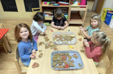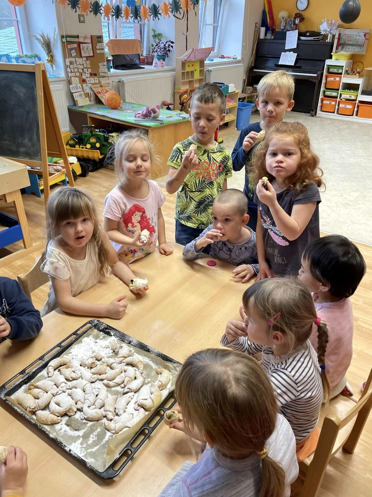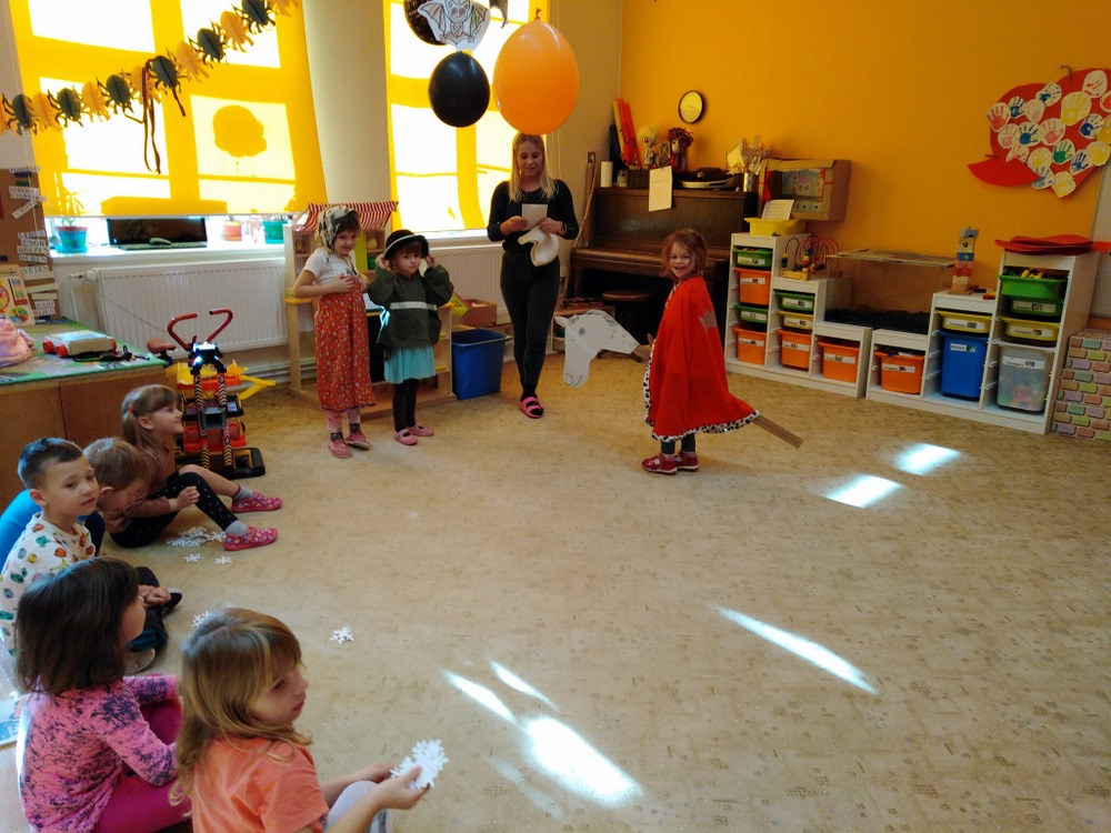 Zpívání a rytmizace nás baví, tak v listopadu jsou to písně o sv. Martinovi, o zimě. Děti si také zahrály scénku O sv. Martinovi, na vážnou hudbu od "Comedian" Galop předvedly Martinovu jízdu na koni.