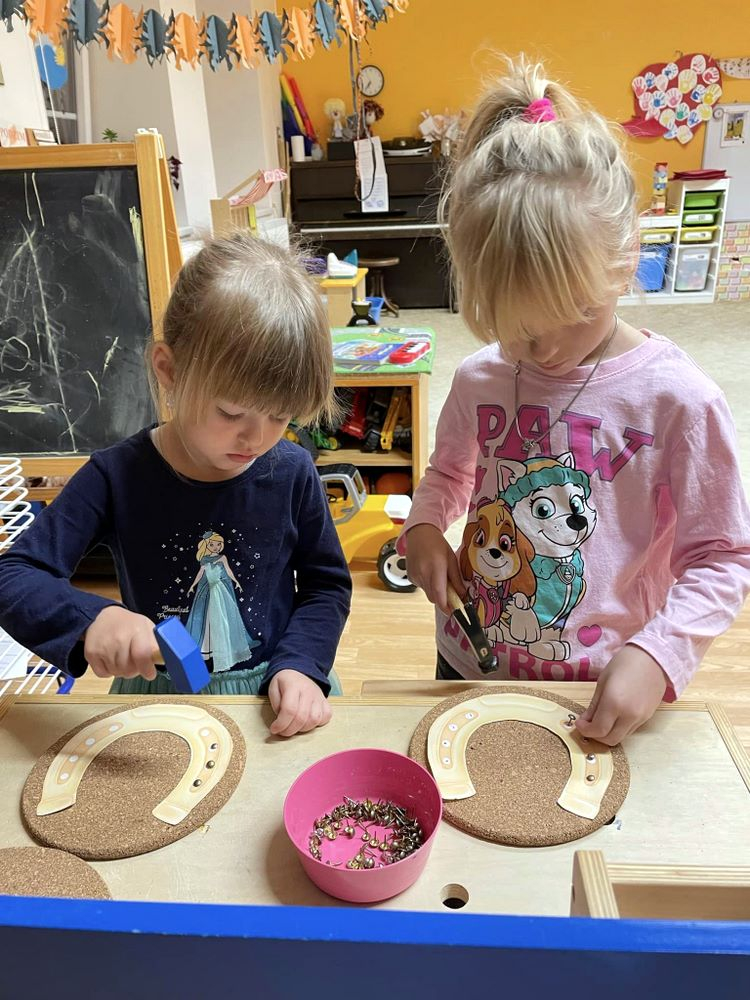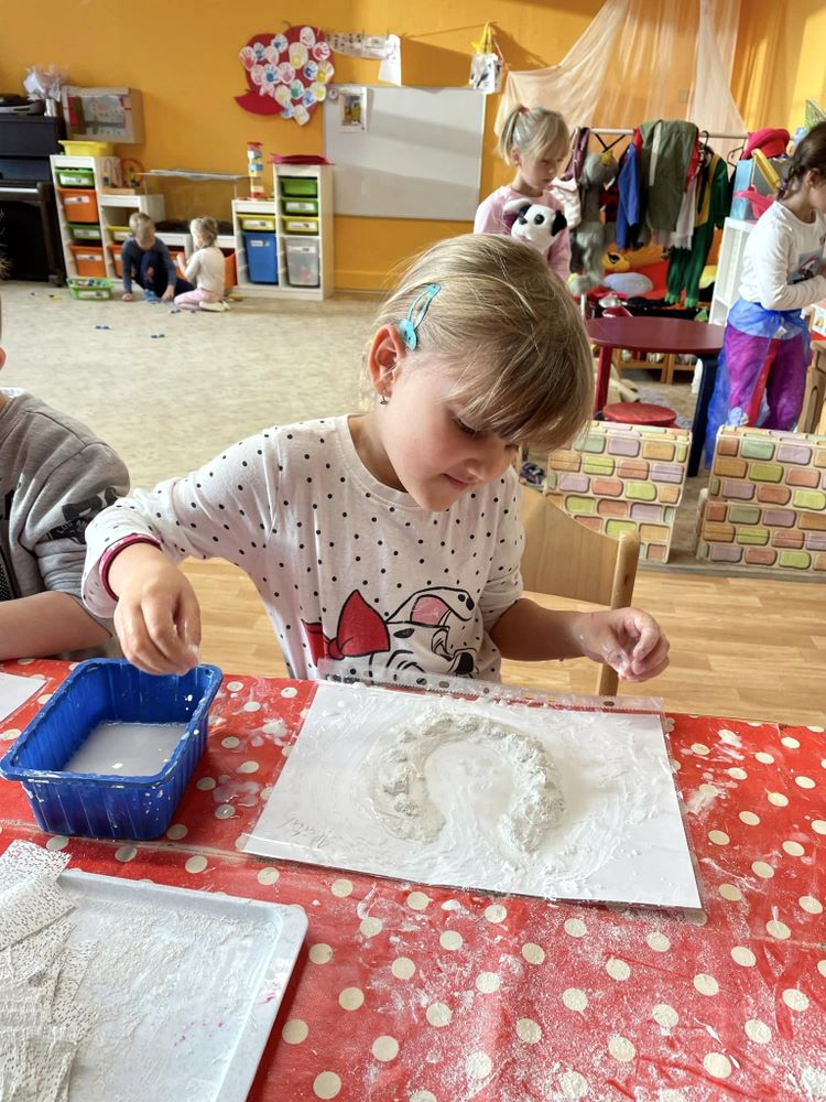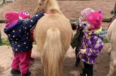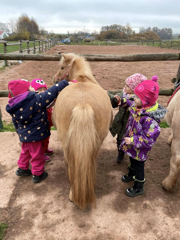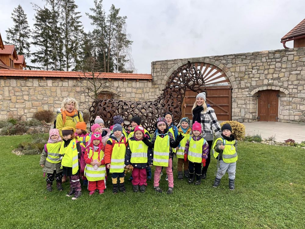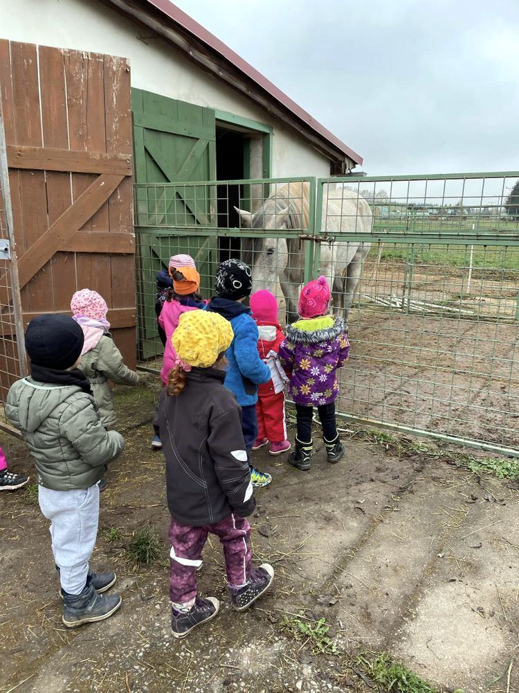 Nejvíce se však těšily na výlet do Jízdárny v Hejtmánkovicích, kde se učily pečovat o poníky, odměnou byla jízda na poníkovi. I když svatý Martin sníh nepřivezl, výlet jsme si všichni užili. Velkou radost způsobilo nalezení zlatých podkoviček. Práci se sádrovým obvazem si děti vyzkoušely při modelování podkov.