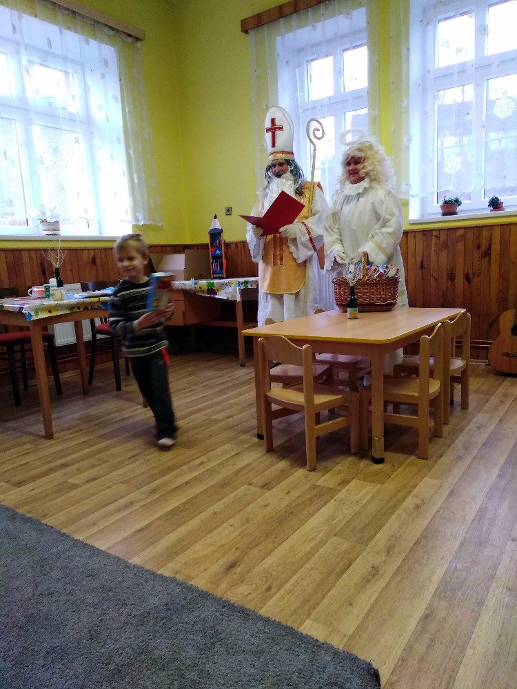 Ve čtvrtek 6. 12. nás navštívil Mikuláš s andělem. Děti statečně zpívaly a recitovaly, za odměnu dostaly vánoční brumíky a adventní kalendář, kterým si zkrátí čas čekání na Vánoce.