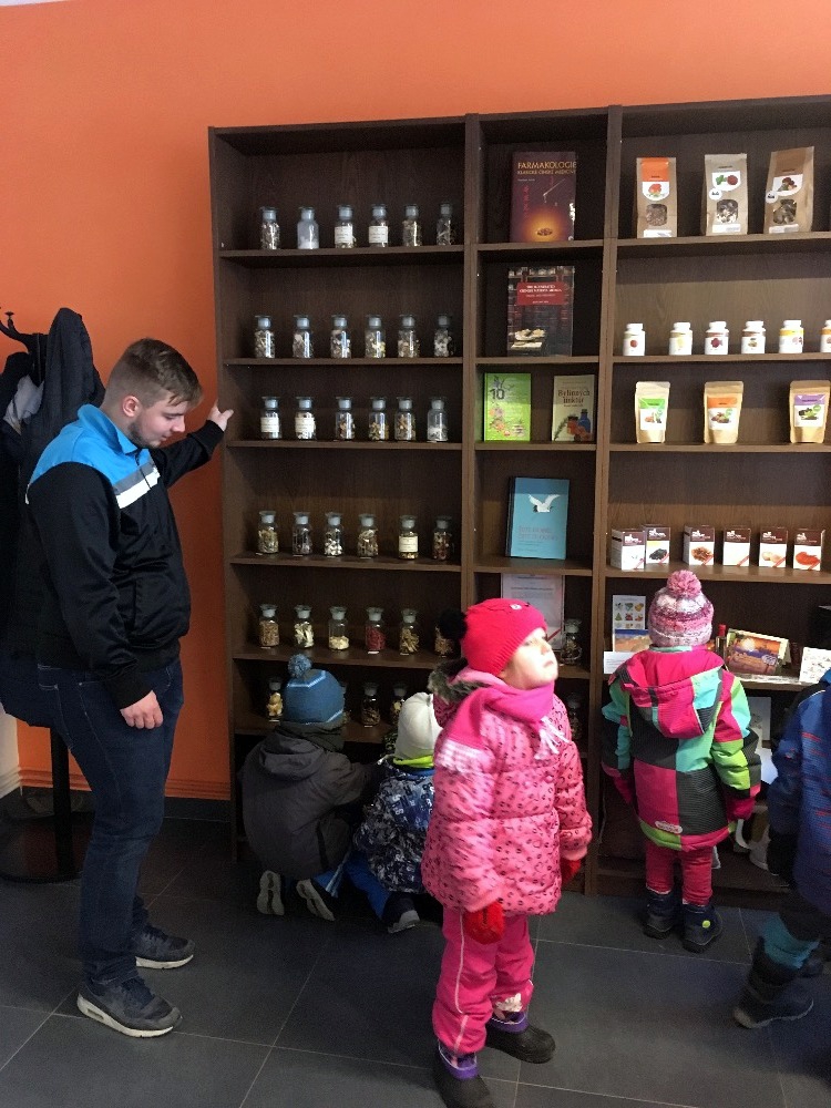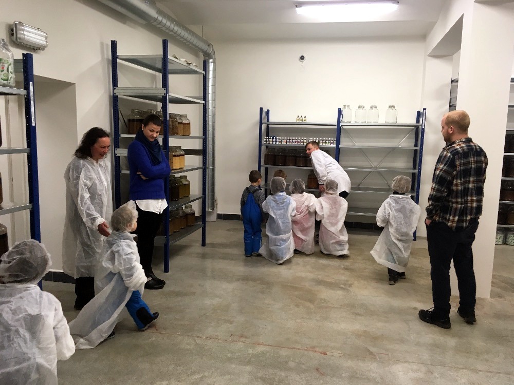 Viděli jsme sklady plné sušených léčivých hub, bylin a dalších surovin. Trochu jsme nahlédli do přípravy tinktur. A hlavně jsme si procvičili jeden z našich smyslů - čich.