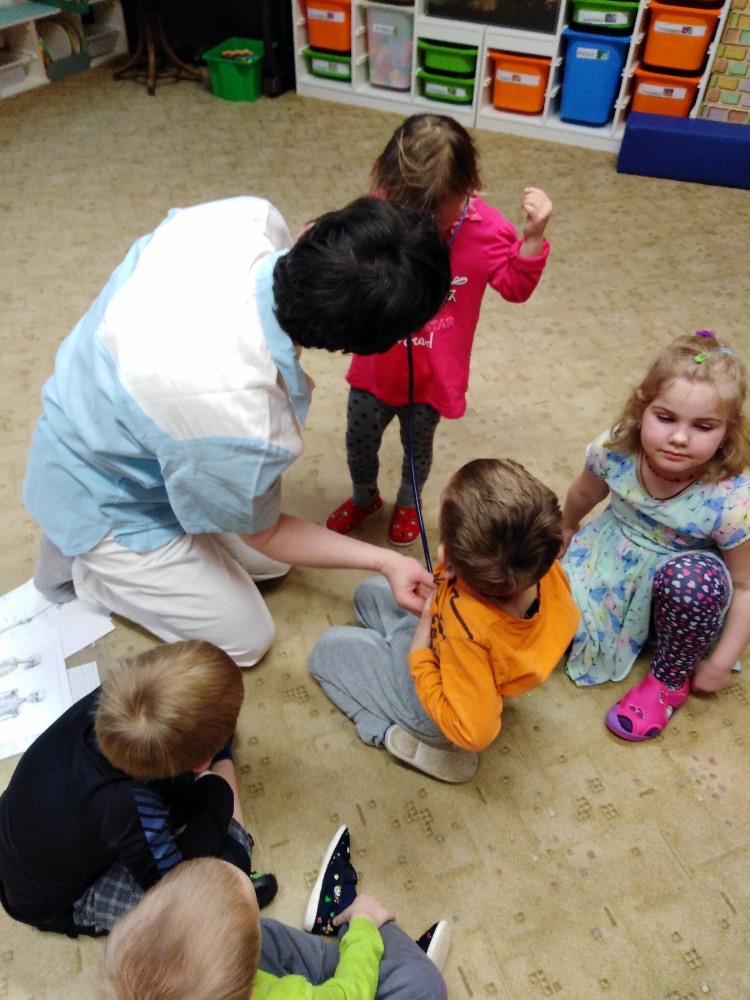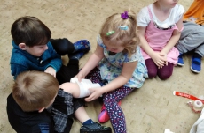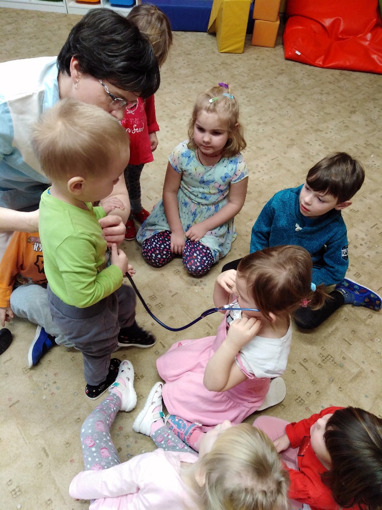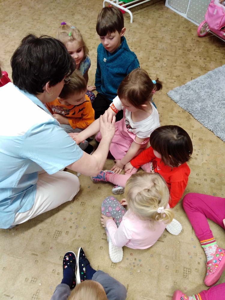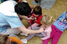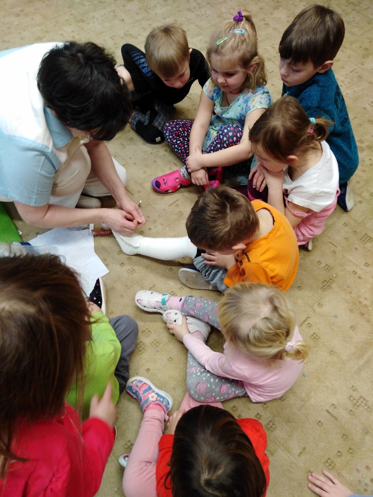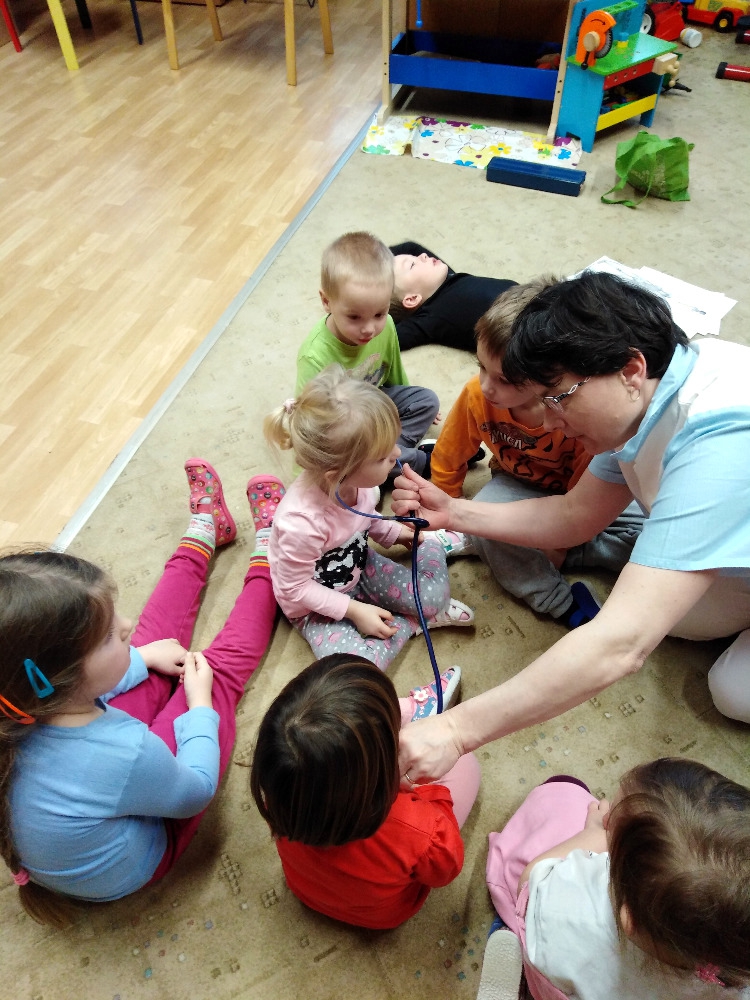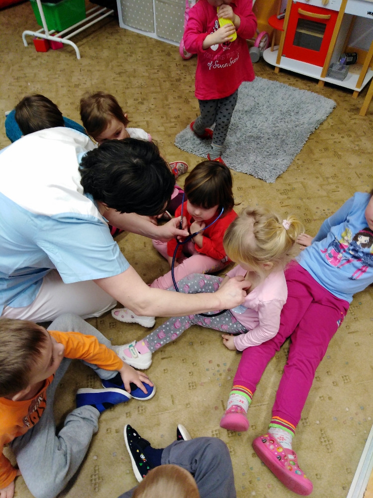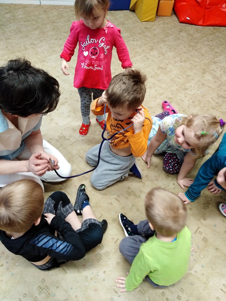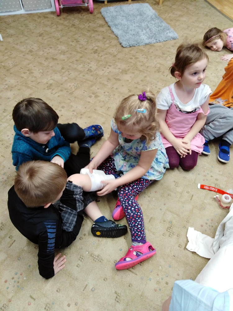 Ve školce proběhla beseda se zdravotní sestrou. Děti získaly informace o lidském těle, dozvěděly se, jak se odebírá krev, jak poskytnout první pomoc. Poslouchaly srdíčko a vzájemně se obvazovaly.