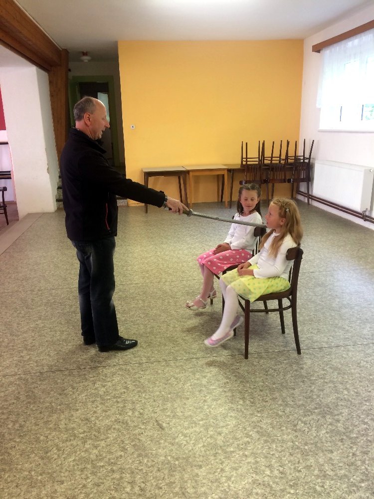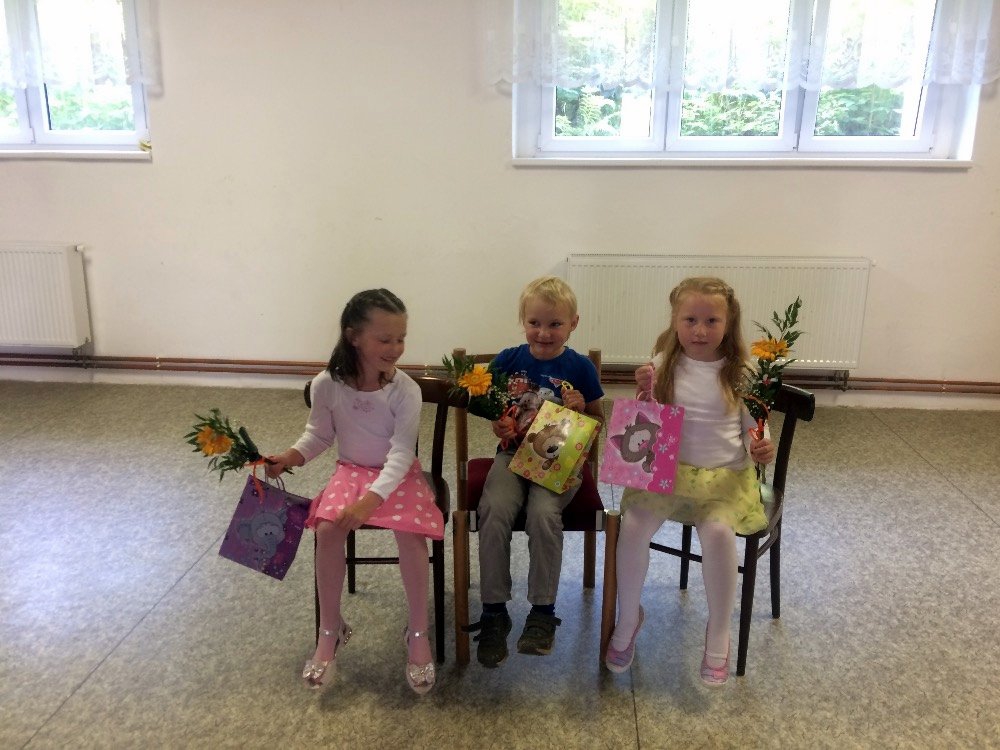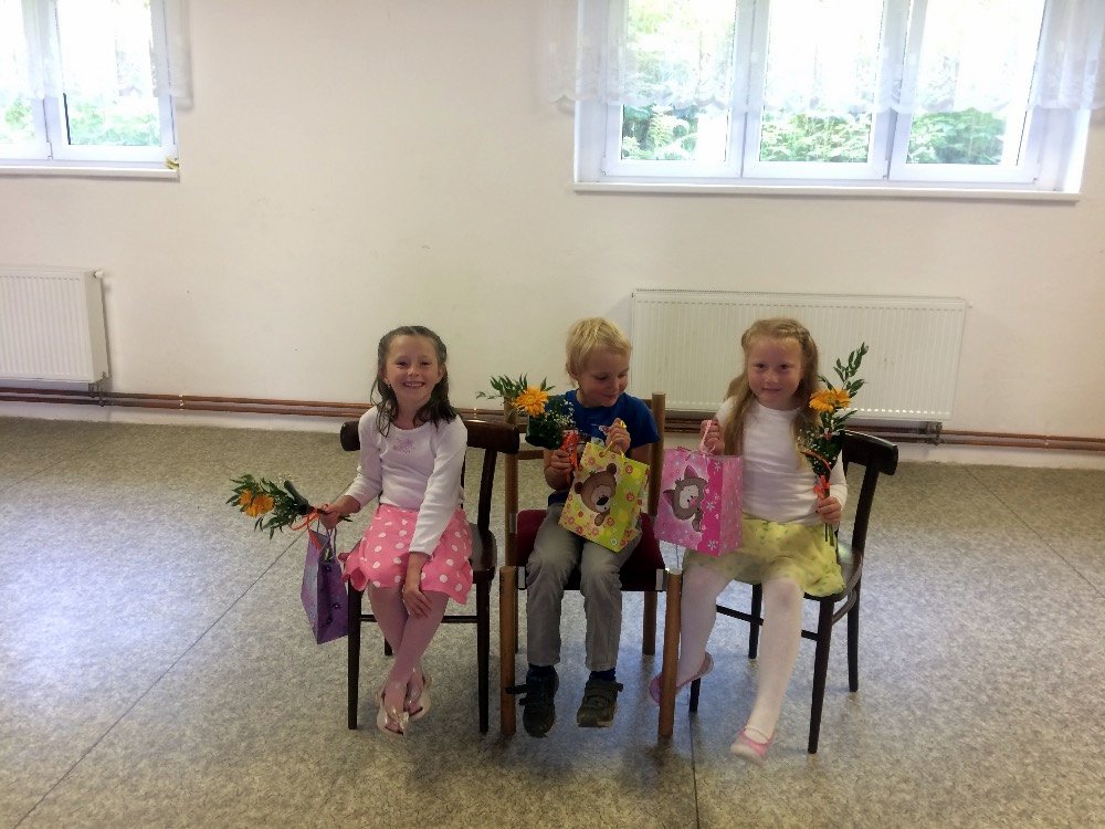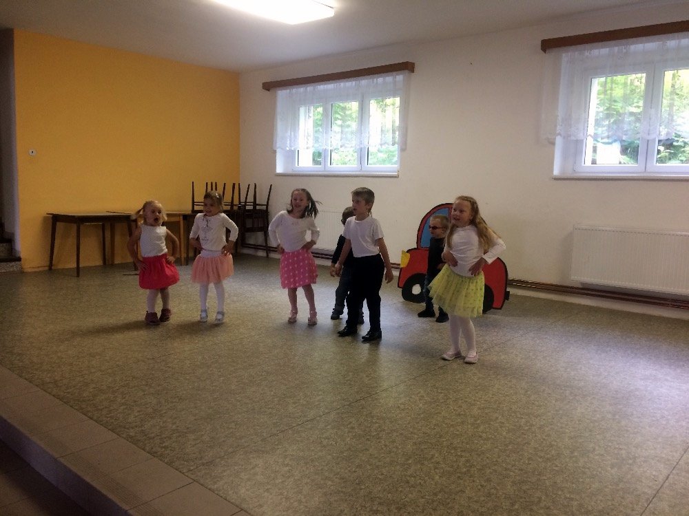 Na sále Obecního úřadu České Metuje jsme se rozloučili s našimi třemi předškoláky. Odpasoval je pan místostarosta. Všechny děti zatančily oblíbený Auťák.