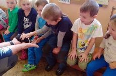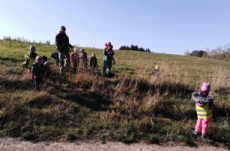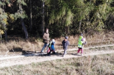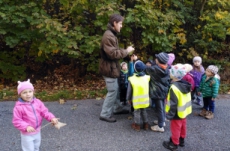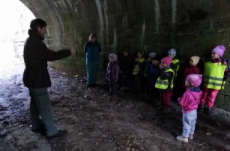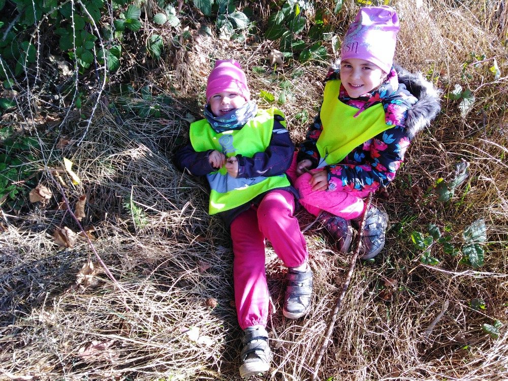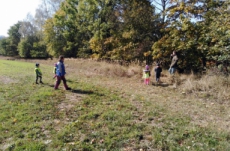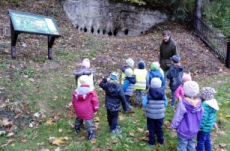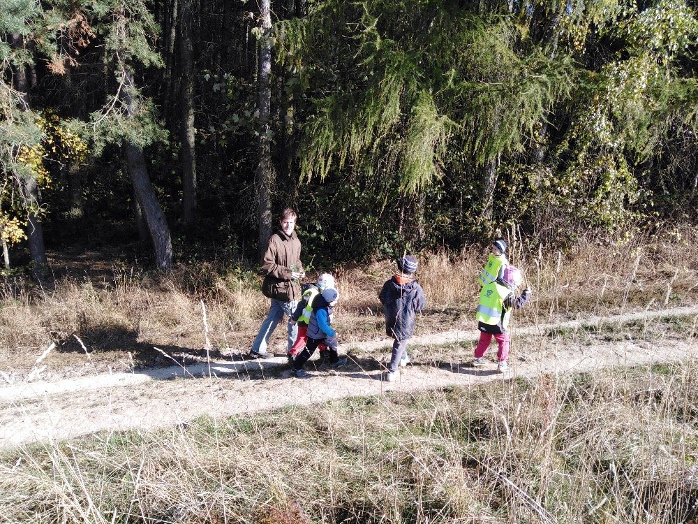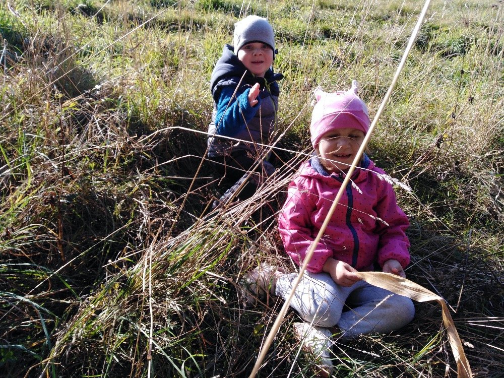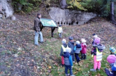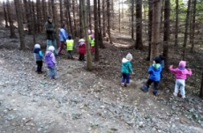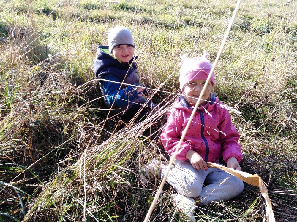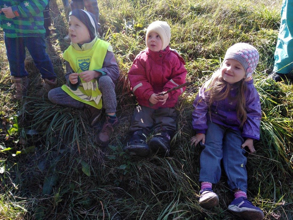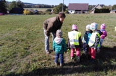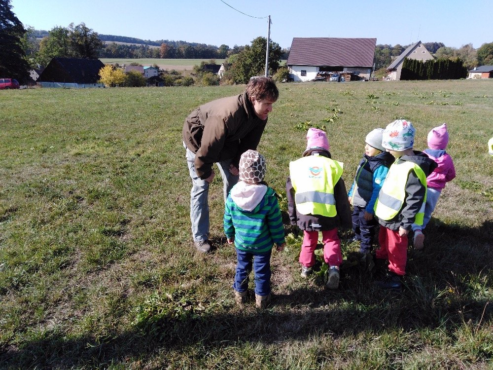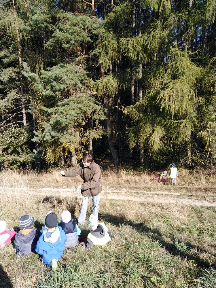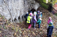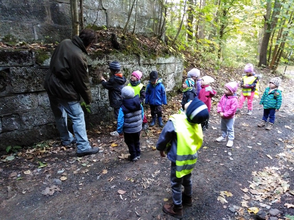 Potom přijel pan Koppl ze Správy CHKO Broumovsko. Strávil s námi celou vycházku. Cestou přírodou jsme se zastavili u vzácného metujského skalního útvaru - pískovcových sloupků. V tunelu jsme poslouchali zvuky ptáků a také jsme si o nich povídali. V lese jsme si ukazovali stromy a na louce jsme si prohlíželi stopy po divočácích. Stejně jako dění ve školce, tak i příroda je pestrá, zvláště teď na podzim.