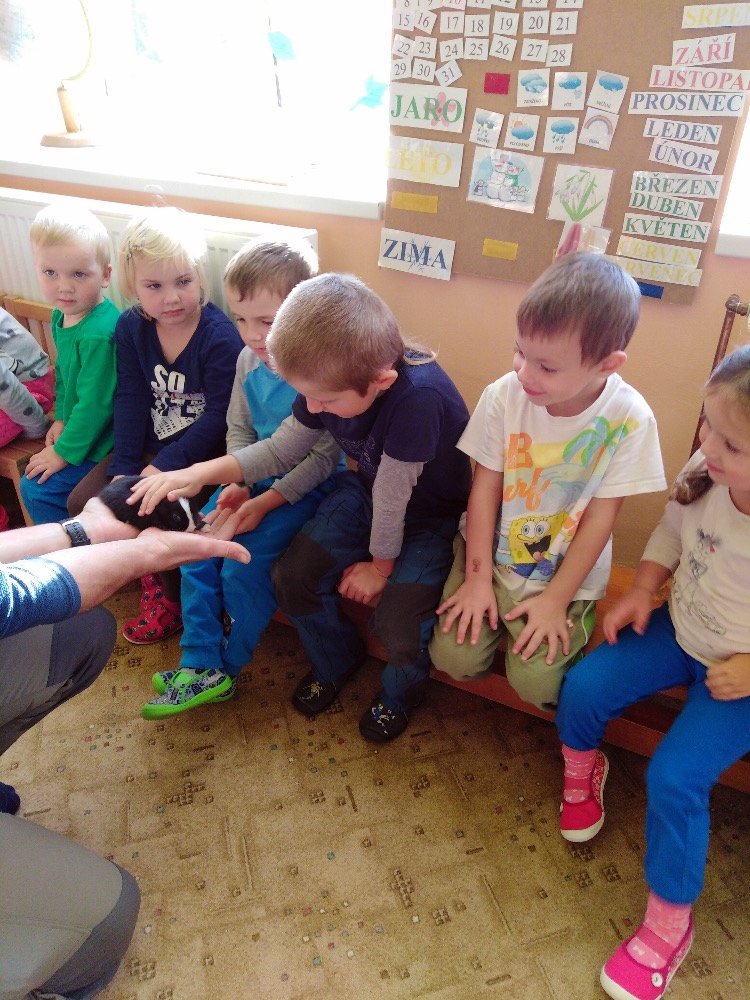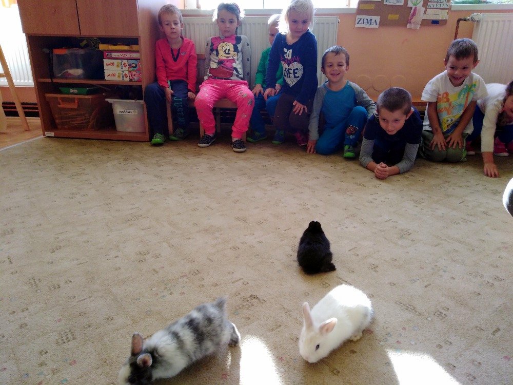 Někdy je den ve školce hodně pestrý. Třeba tento pátek si odnášíme plno zážitků. Nejprve nám manžel paní učitelky přivezl ukázat králíčky.