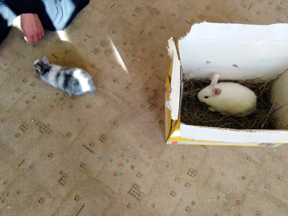 Jsou to tři roztomilá králičí miminka. Nejraději bychom je všechny "pomuchlovali", ale museli jsme být opatrní. Králíčci jsou ještě malincí.