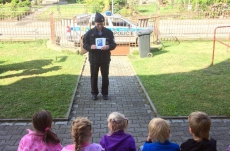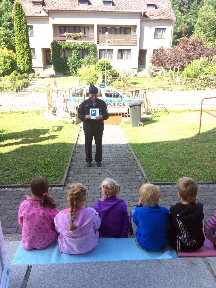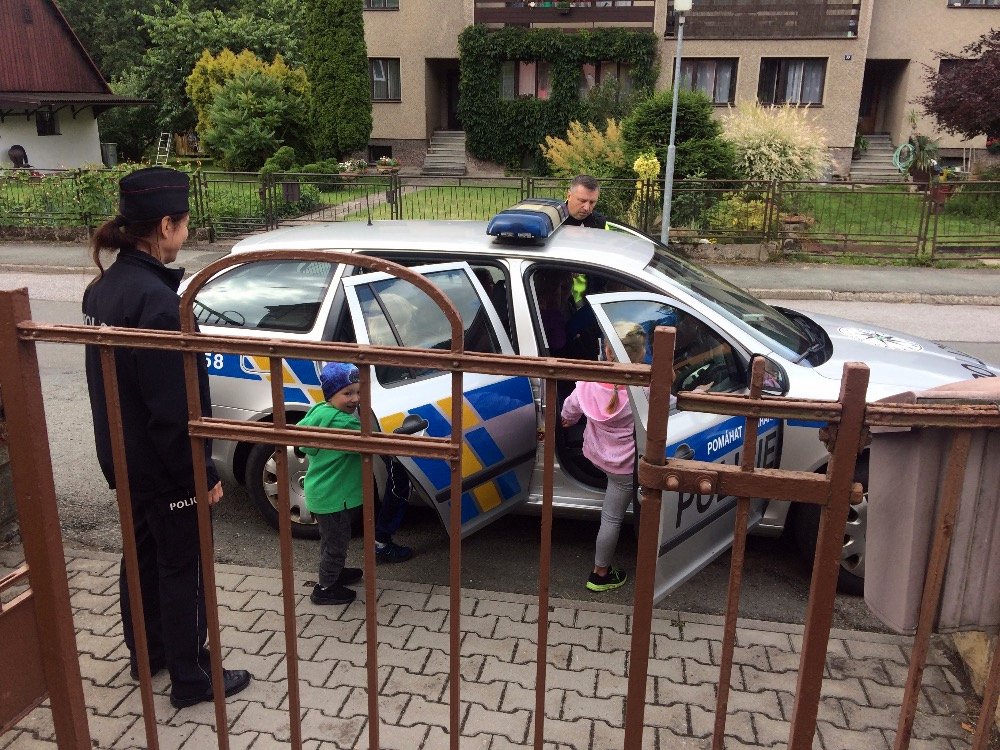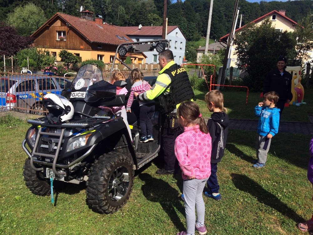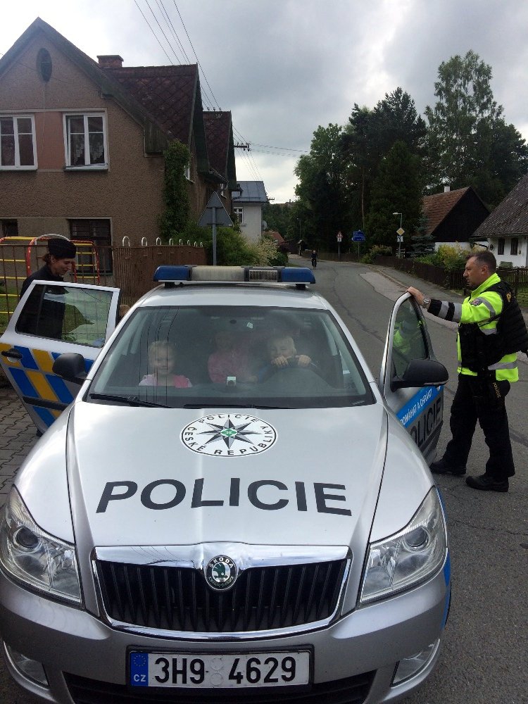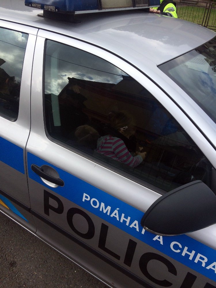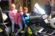 Děti samozřejmě nejvíce bavilo vyzkoušet si, jak se na ní sedí. Mohly se posadit i do policejního auta. Ještě předtím se ale seznámily s bezpečností silniční dopravy a poznávaly dopravní značky.