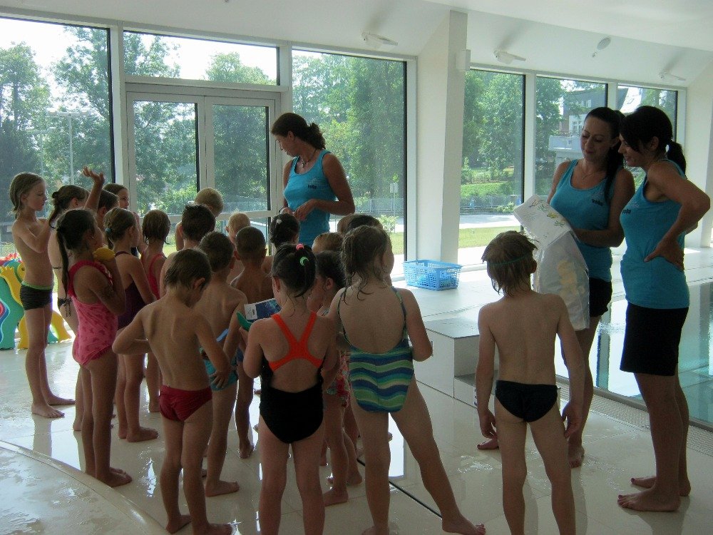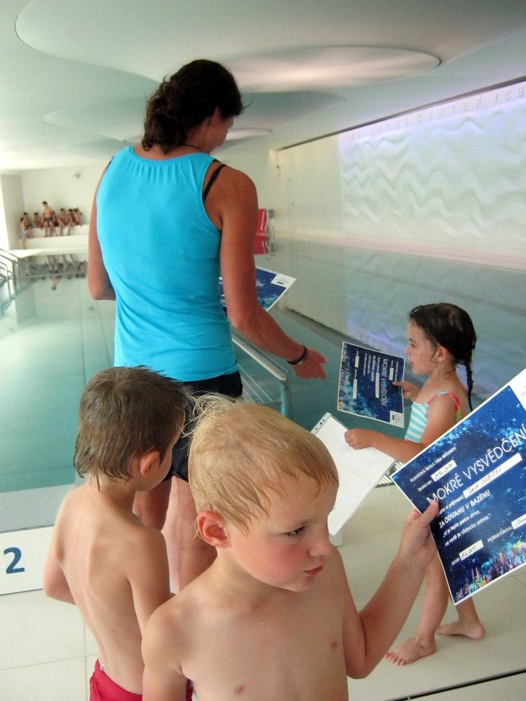 Na konci června skončil kurz plavání v bazénu broumovské Veby. Všechny děti dostaly mokré vysvědčení. Děti byly oceněny za odvahu. Ti nejšikovnější - Eliška a Dominik obdrželi vysvědčení se známkami.