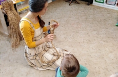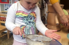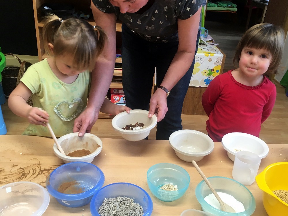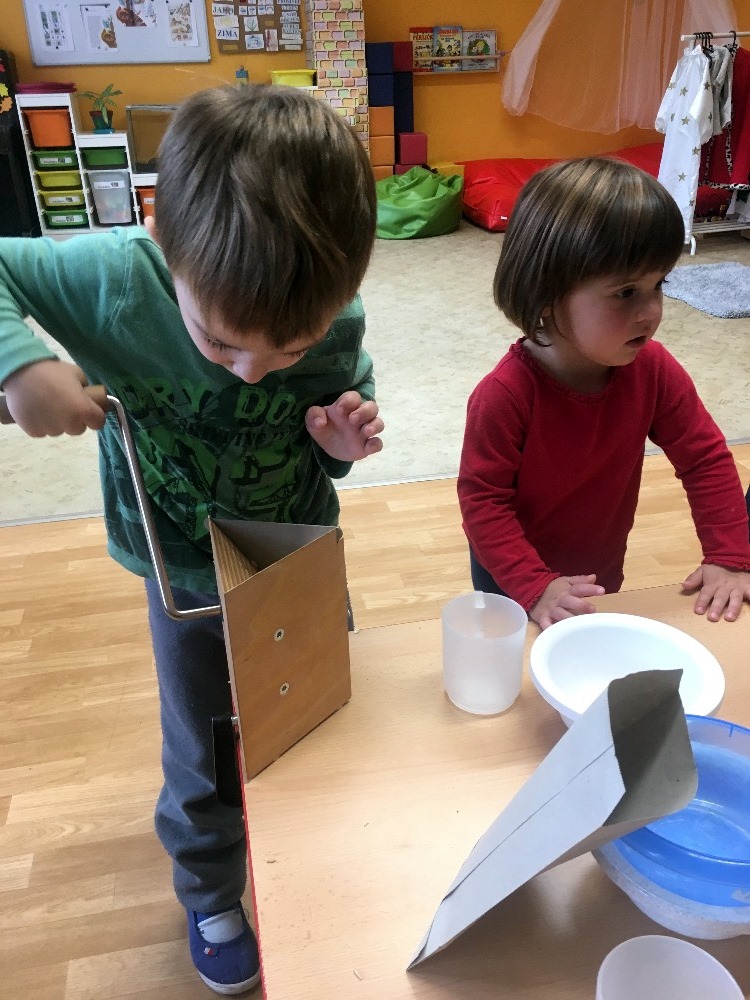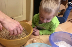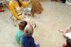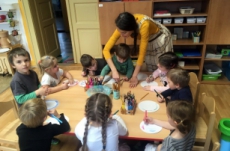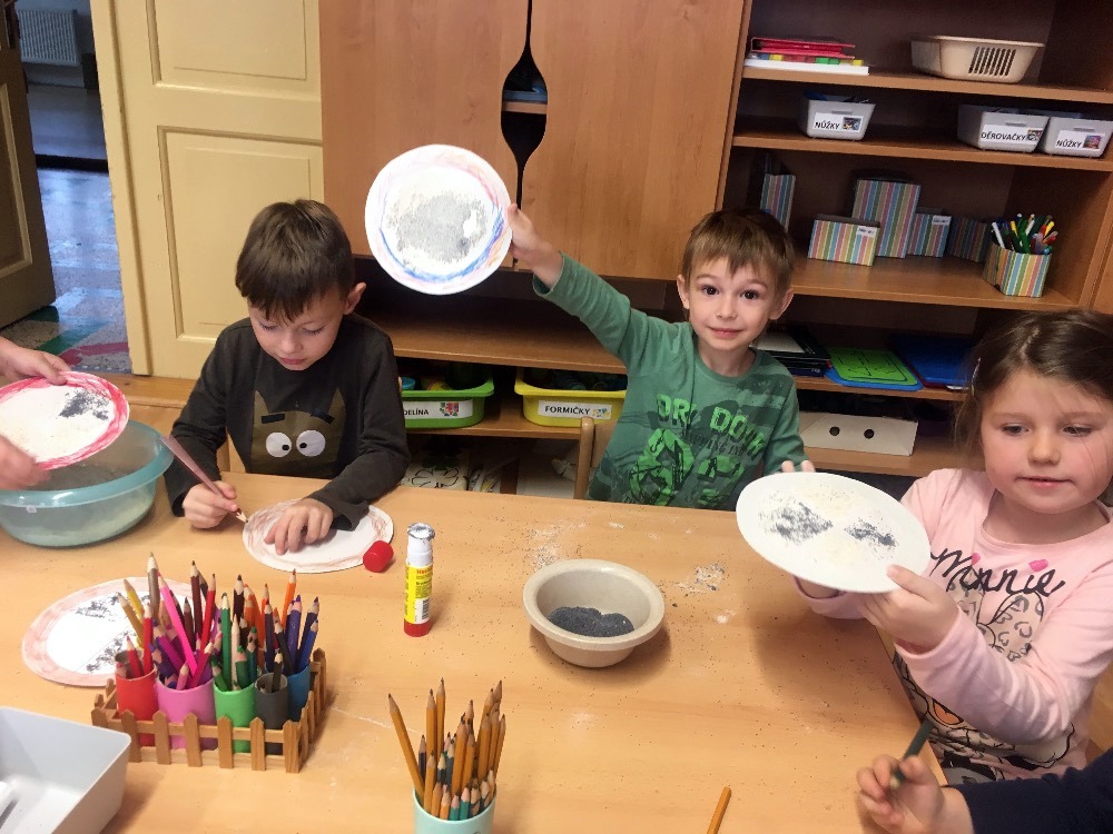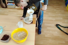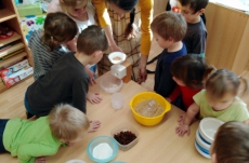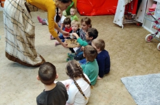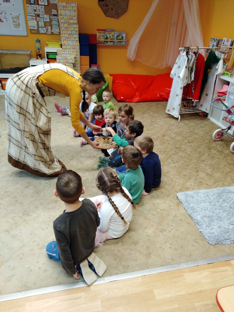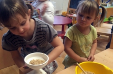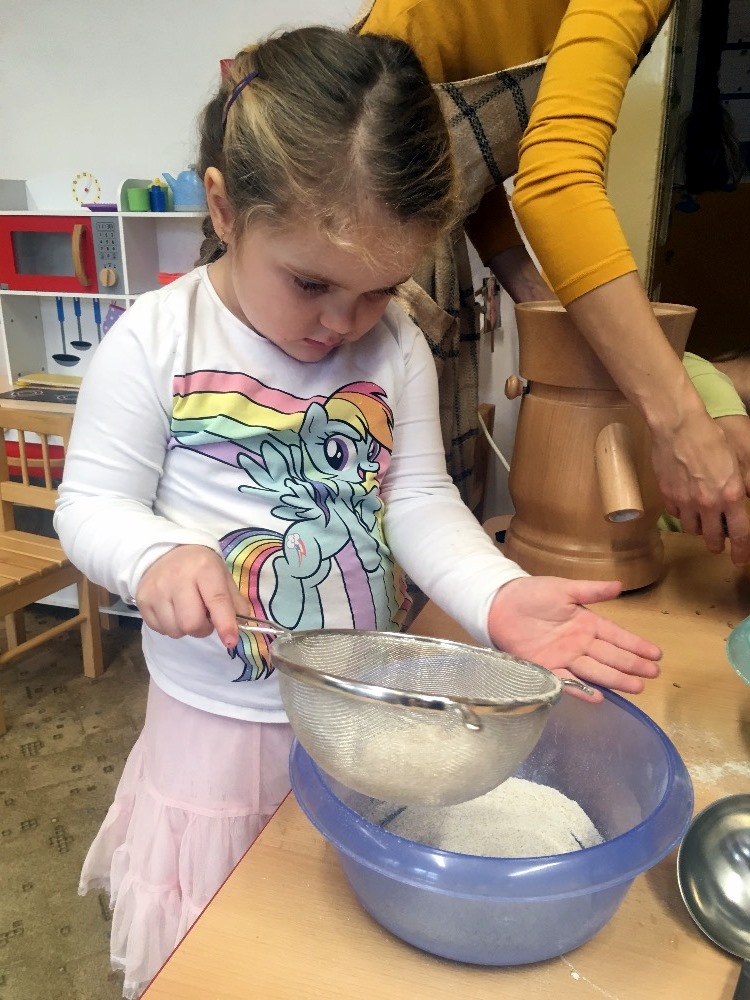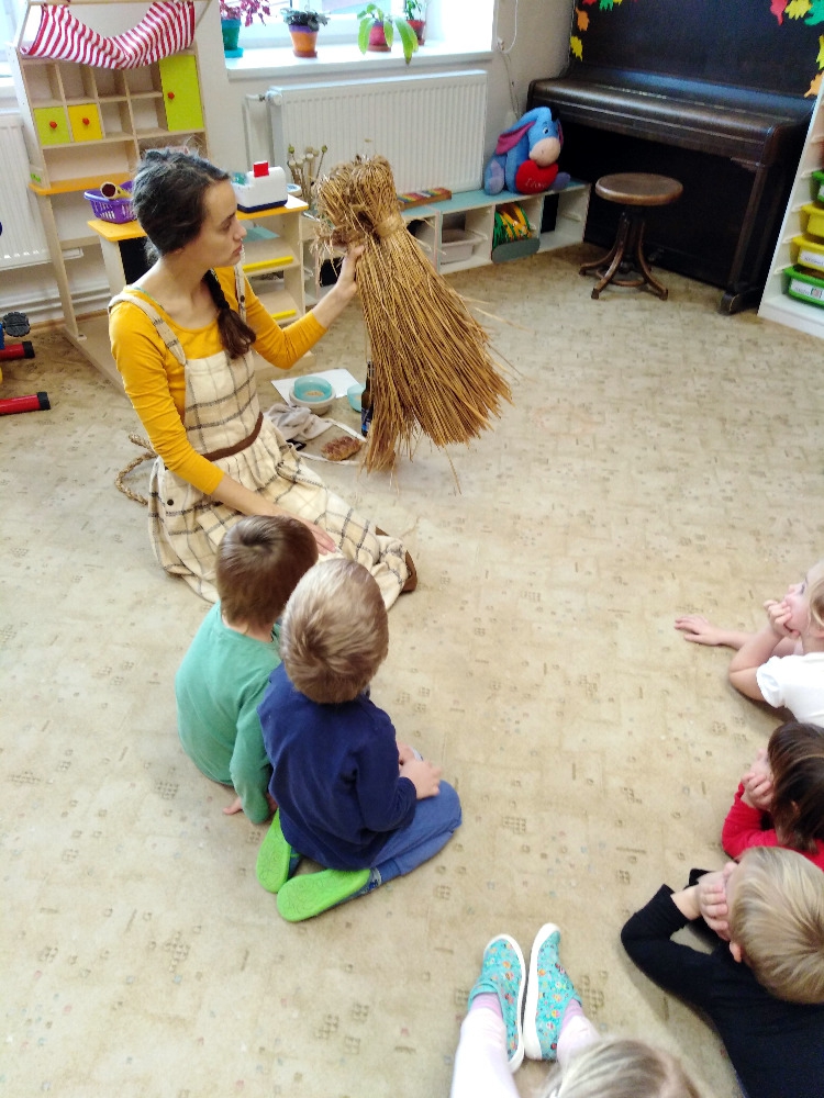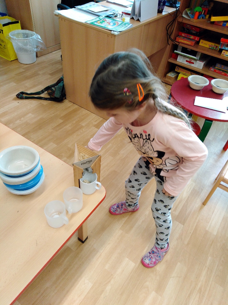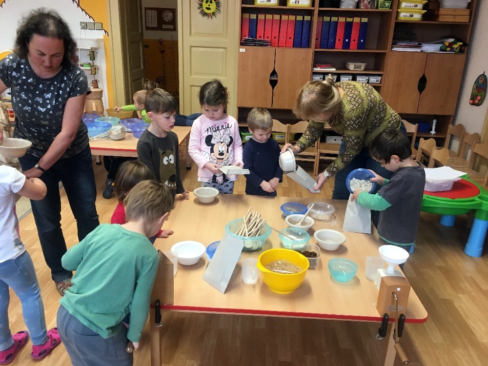 Do školky přijela paní Šárka Vávrová z broumovského kláštera s enviromentálním programem "Příběh obilí". Prožitkové učení děti velmi bavilo. Na mlýncích si umlely mouku, vločky a domů si odnesly svoje udělané musli.