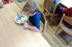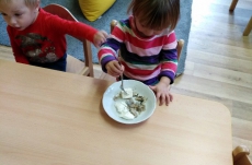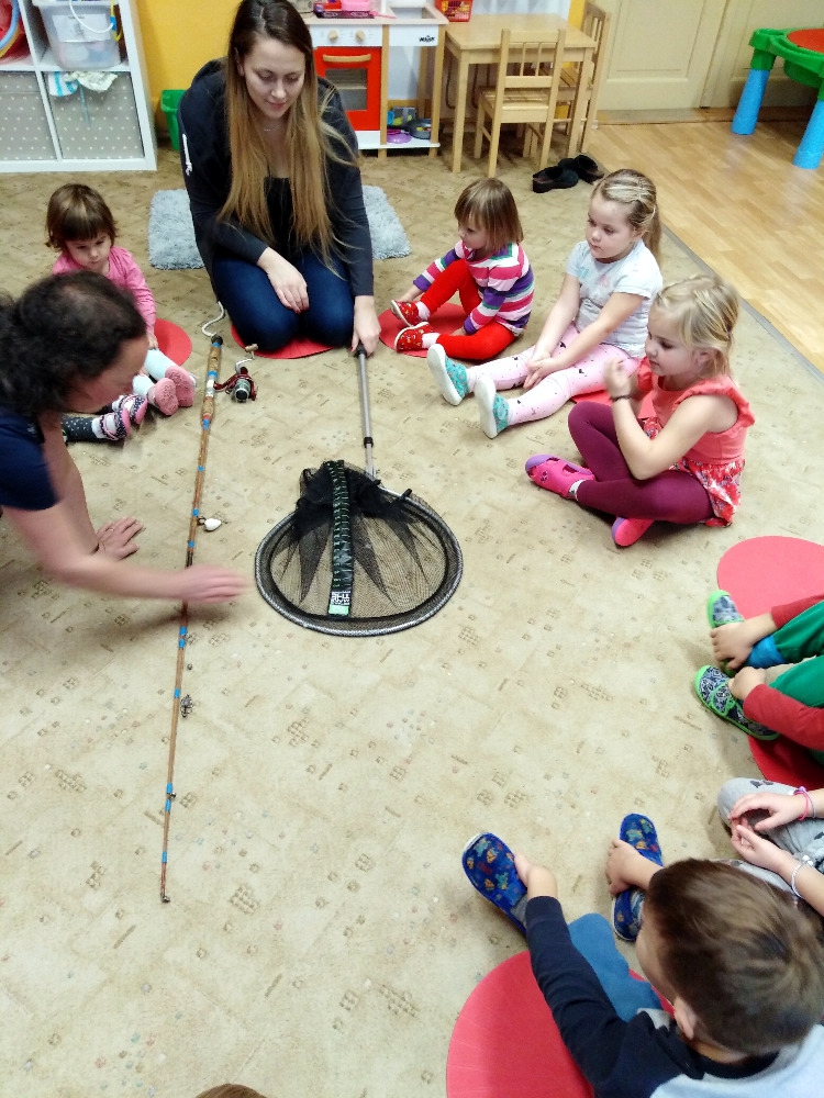 Protože na podzim probíhají výlovy rybníků, věnovali jsme se první listopadový týden rybaření. Mimo jiné nám přišla maminka Laury ukázat rybářské náčiní. Sami jsme si také připravovali svačinku - rybí pomazánku.