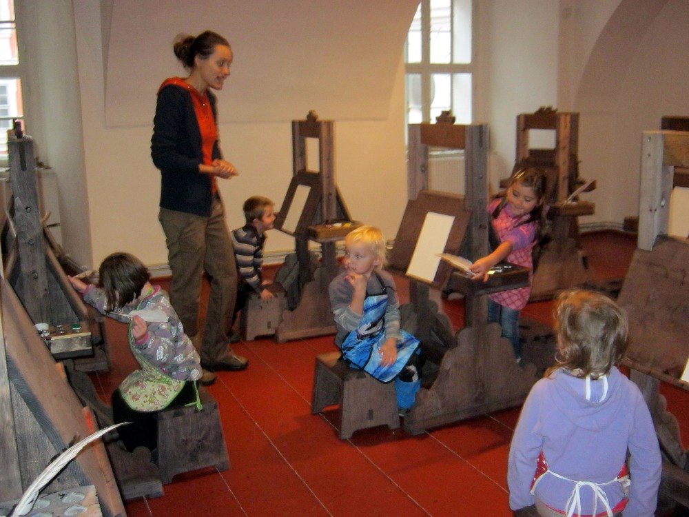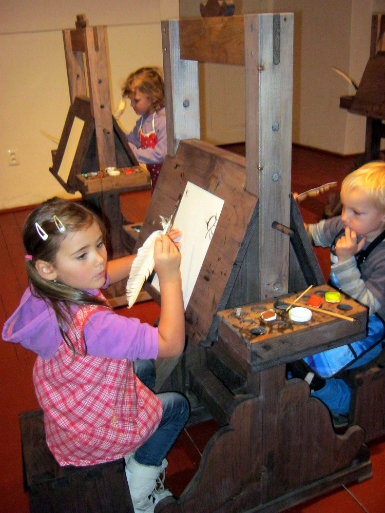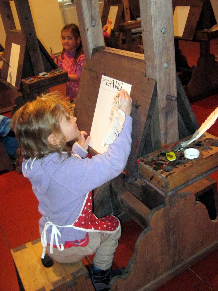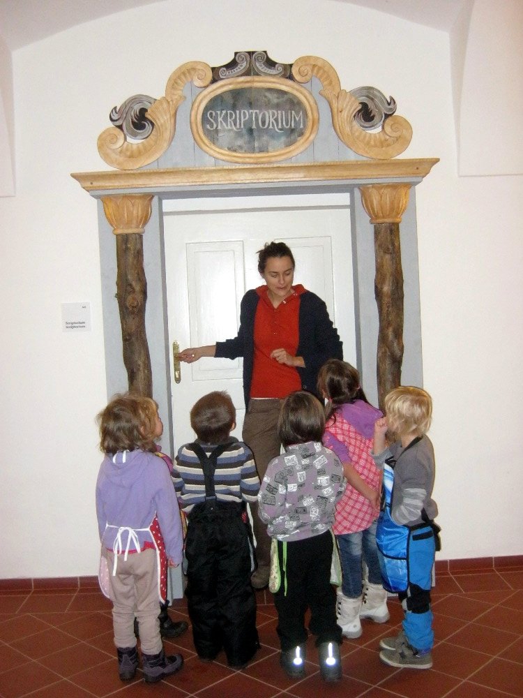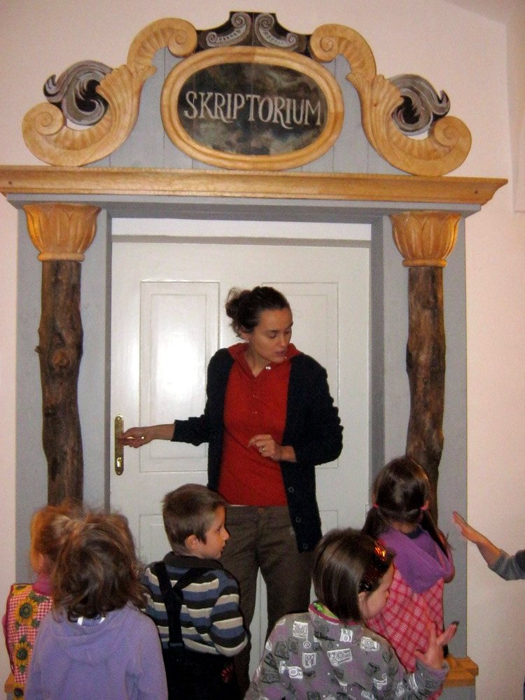 Vzdělávací a kulturní centrum v Broumově nabízí programy ve skriptoriu – středověké písárně. To se nám hodilo k našemu tématu o knížkách.