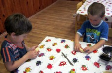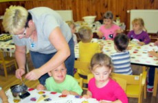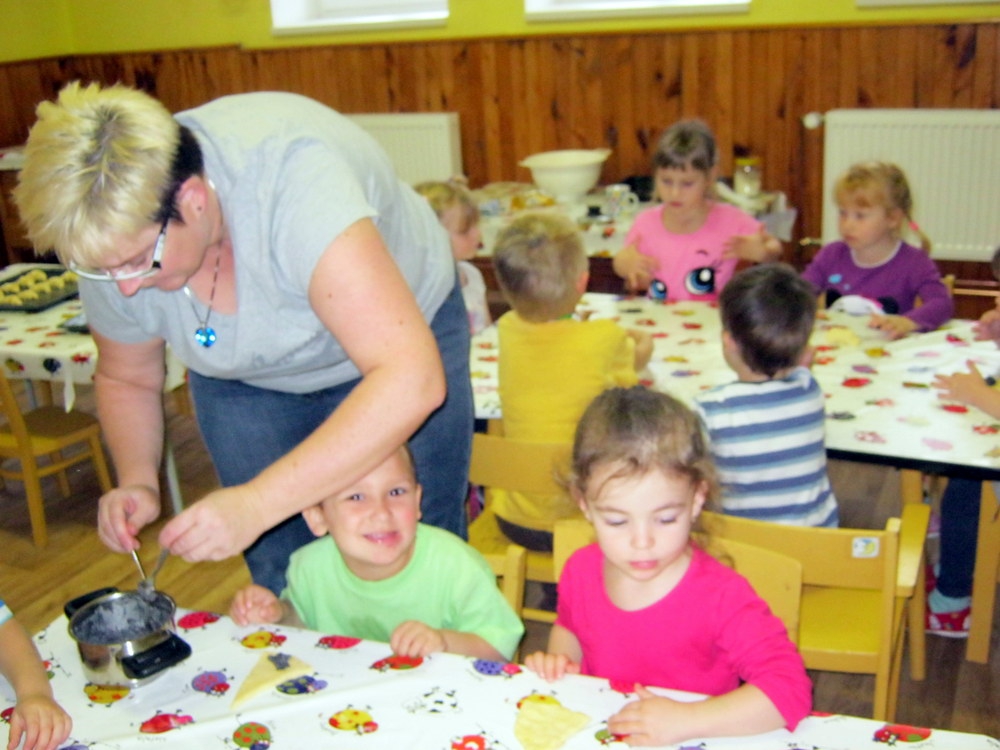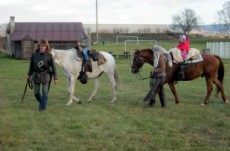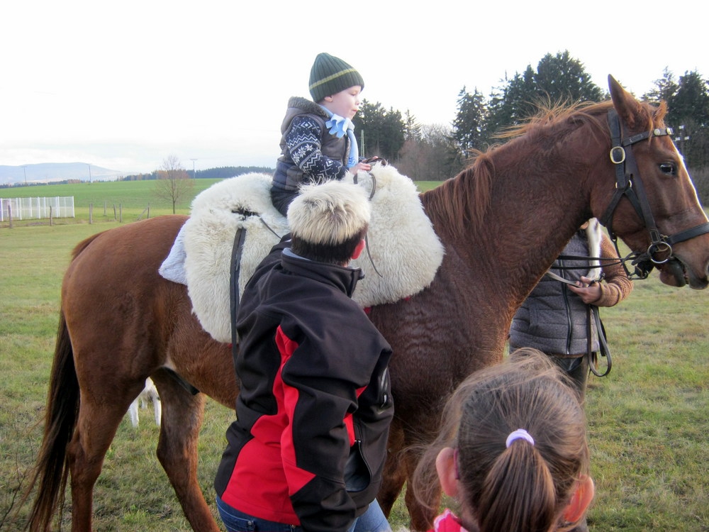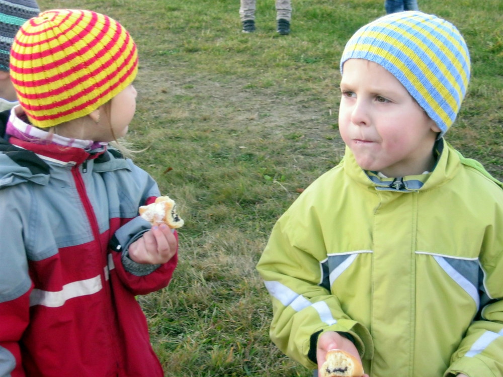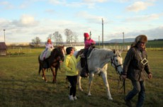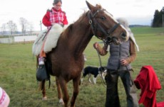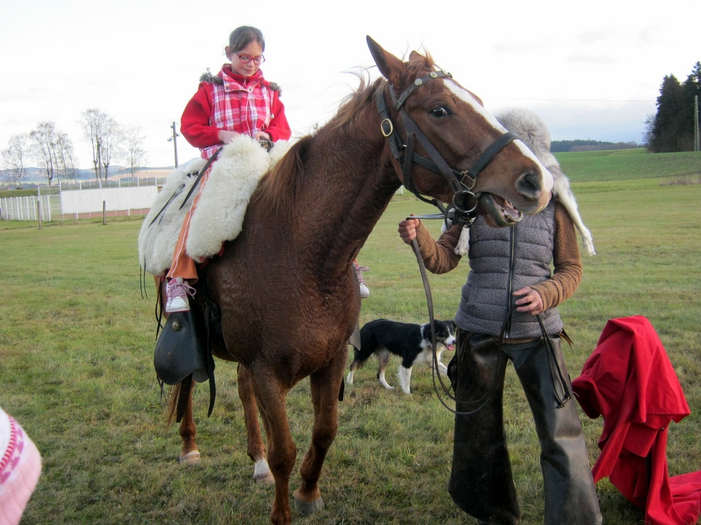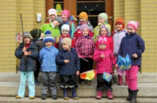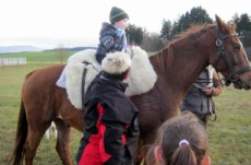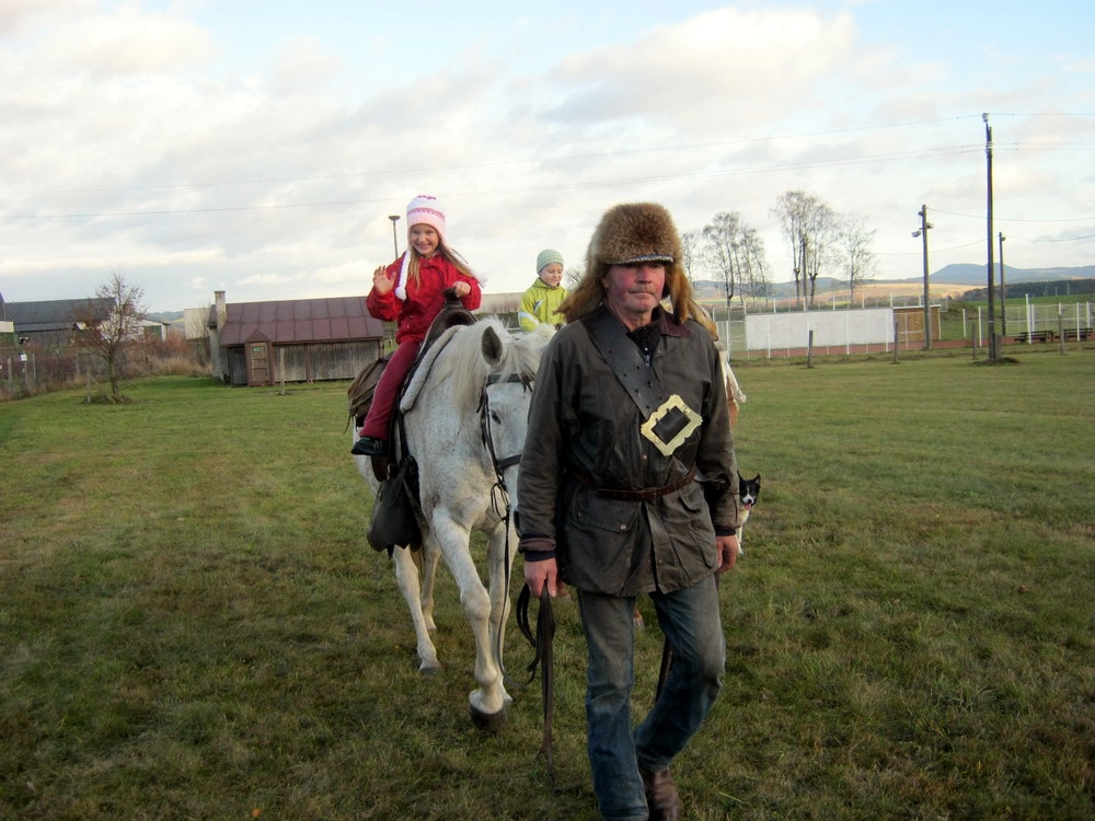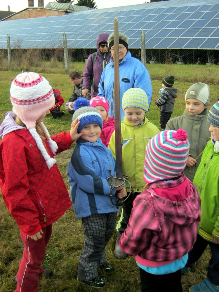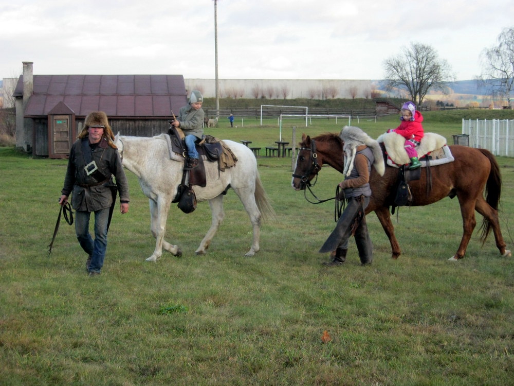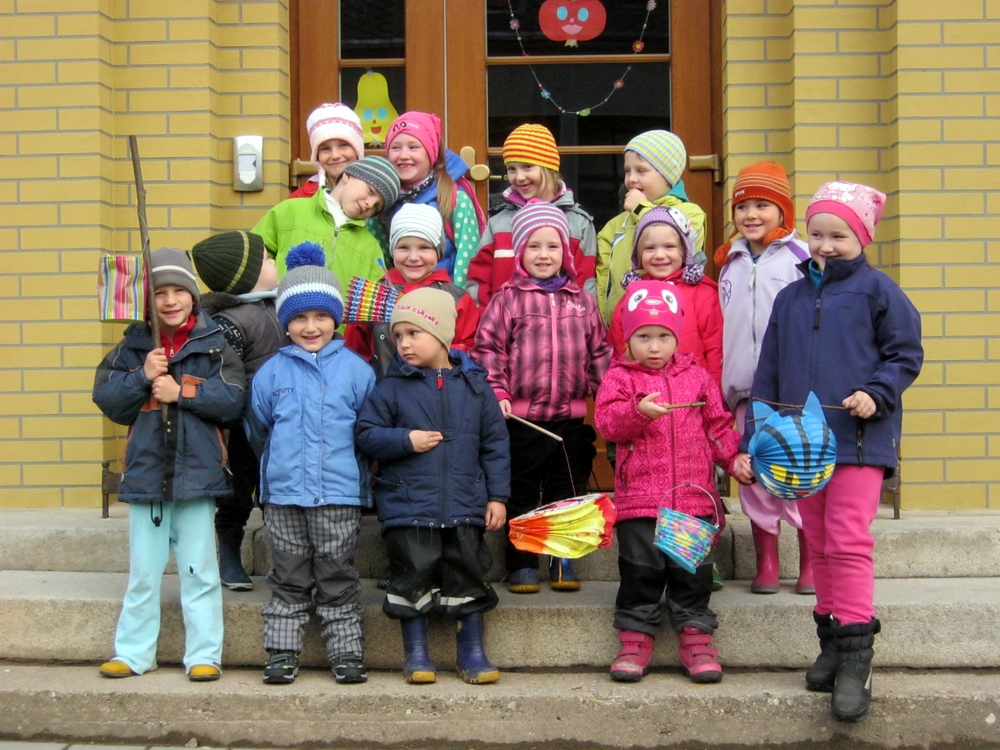 Přesto se naše tradiční akce vydařila. Společně s rodiči jsme průvodem s lampiónky došli na hřiště, kde jsme přivítali Martina. Nedovezl nám sníh, ale dovolil nám obtěžkat svůj meč a povozil nás na koni. Některé děti se nemohly jízdy nabažit a jely dokonce víckrát. Společně jsme mu za to zazpívali pěknou písničku "Jede Martin na koníčku" a dali jsme mu ochutnat naše martinské rohlíčky, po kterých se jen zaprášilo.