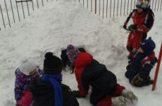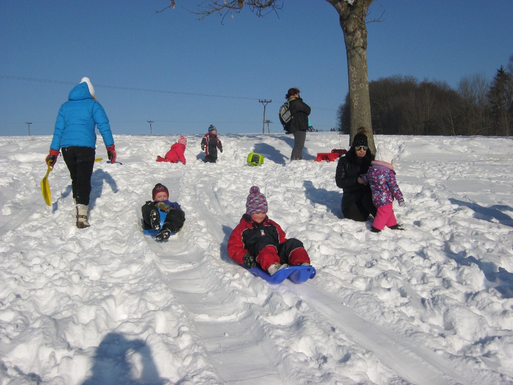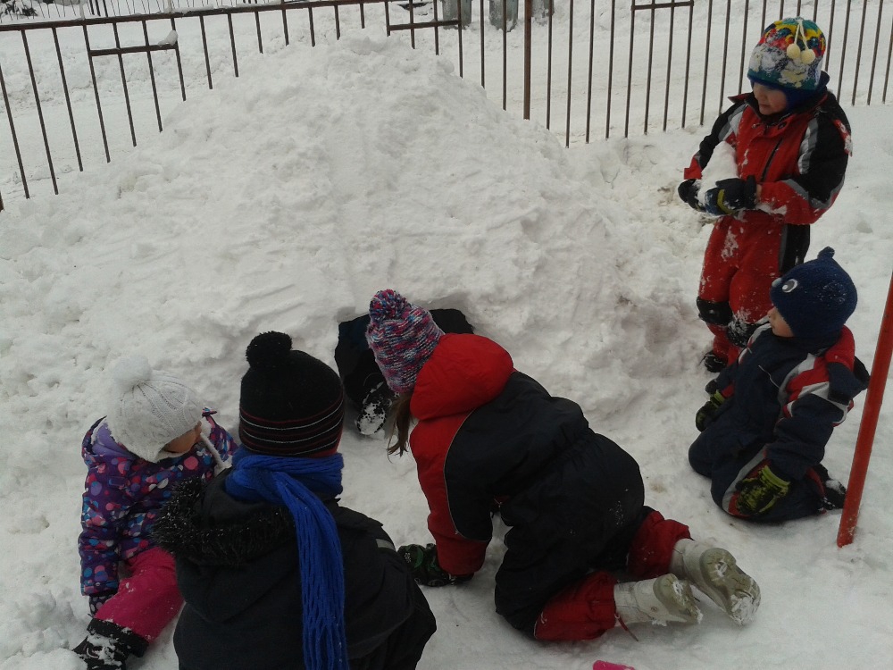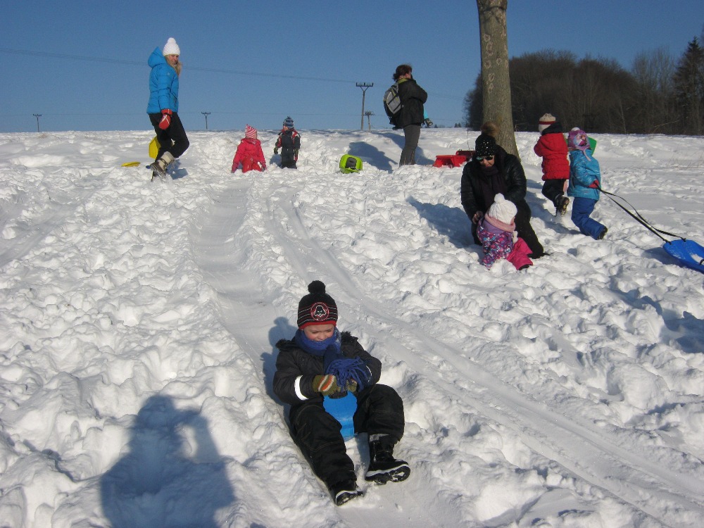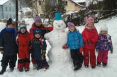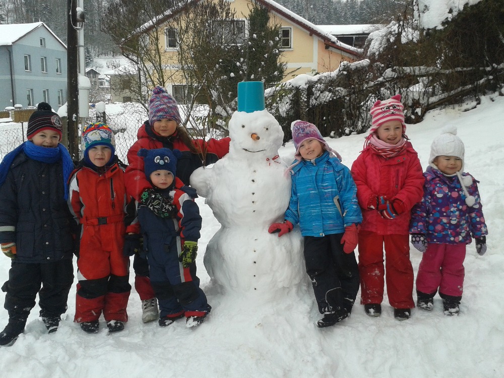 Čerstvá sněhová nadílka nám udělala velkou radost. Konečně pořádná zima! A tak si sněhu užíváme plnými doušky. Jezdíme na lopatách, stavíme iglú a sněhuláky.
