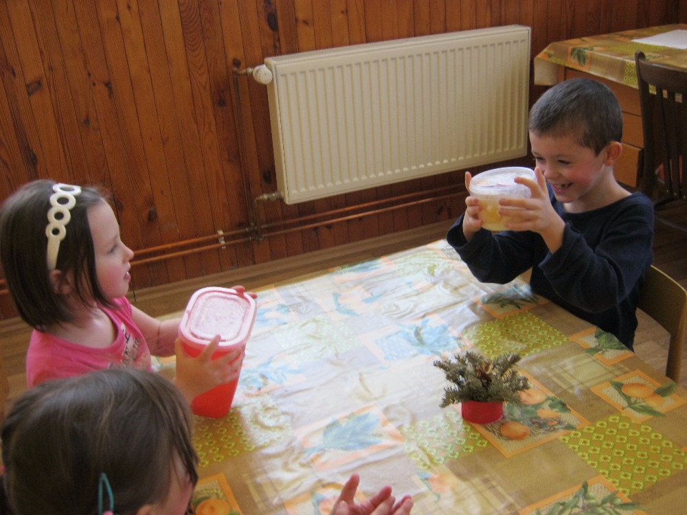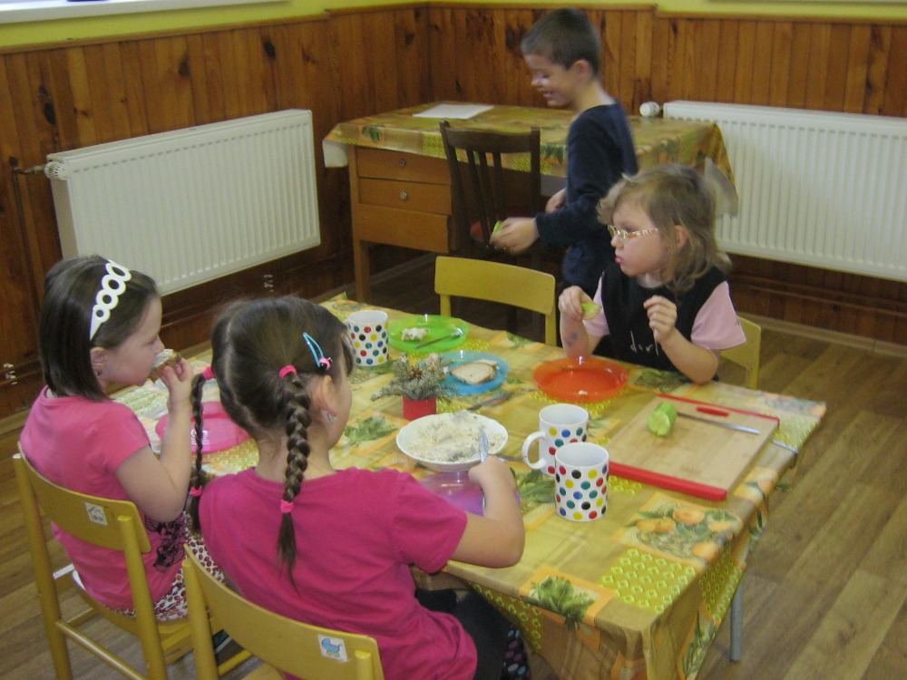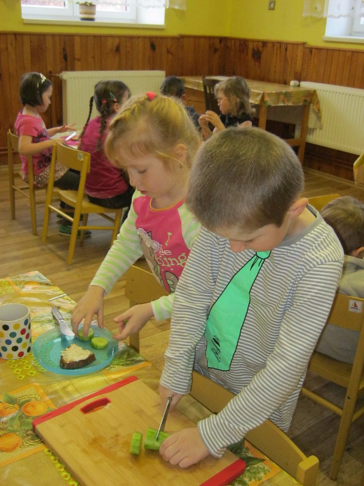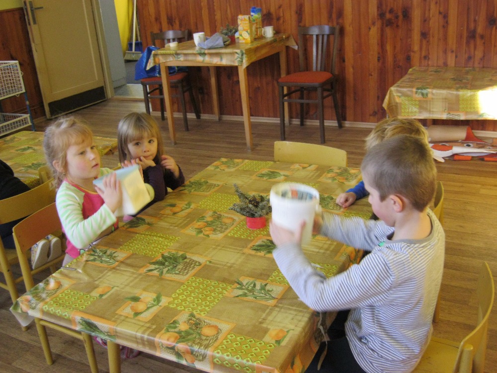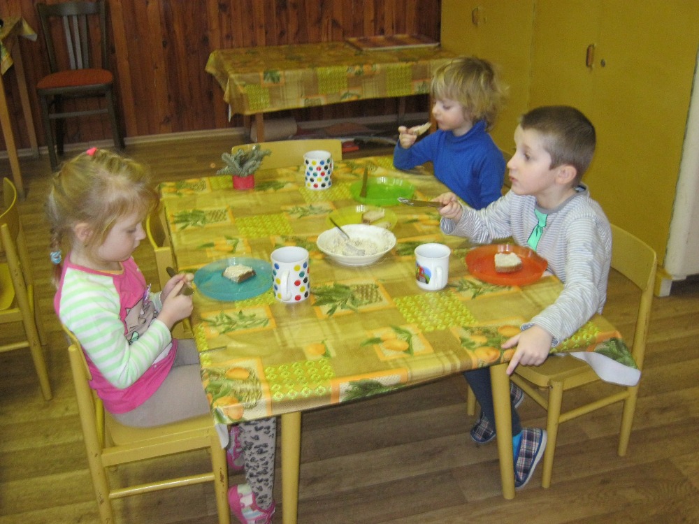 Pekáčovali jsme také společně s maminkami. Dělali jsme pokusy se sněhem, připravili jsme si zmrzlinku. Celý týden jsme si hráli na eskymáky. Sami jsme si chystali svačinku - rybí pomazánku.