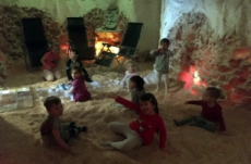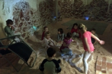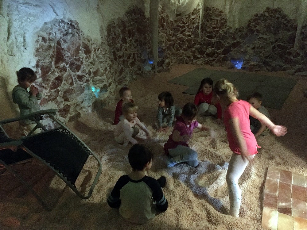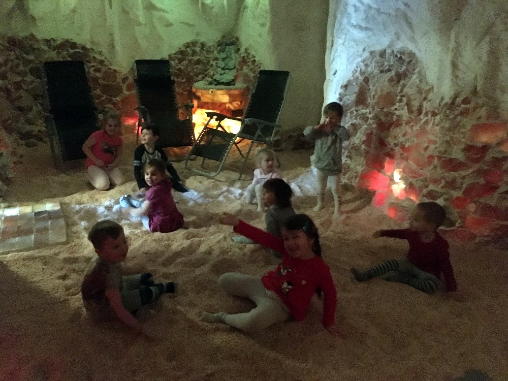 S dětmi jsme navštívili solnou jeskyňku v Meziměstí. Děti si při poslechu relaxační hudby hrály se solí. Pro zpestření jsme si procvičili naše smysly. Hmatem jsme poznávali předměty schované pod látkou. Zrakem jsme hádali, kdo z dětí chybí.