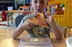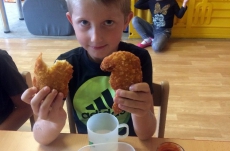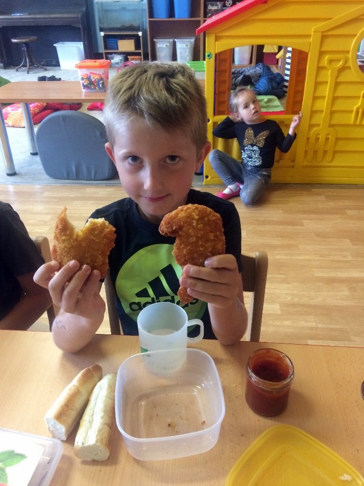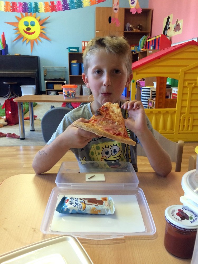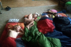 Večeře mimo domov moc chutnala. Před stezkou odvahy jsme snědli protistrašidlové bonbóny. A poté hurá do spacáčků!