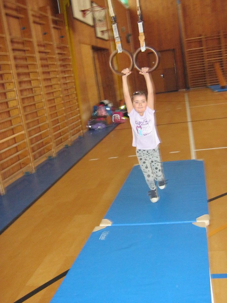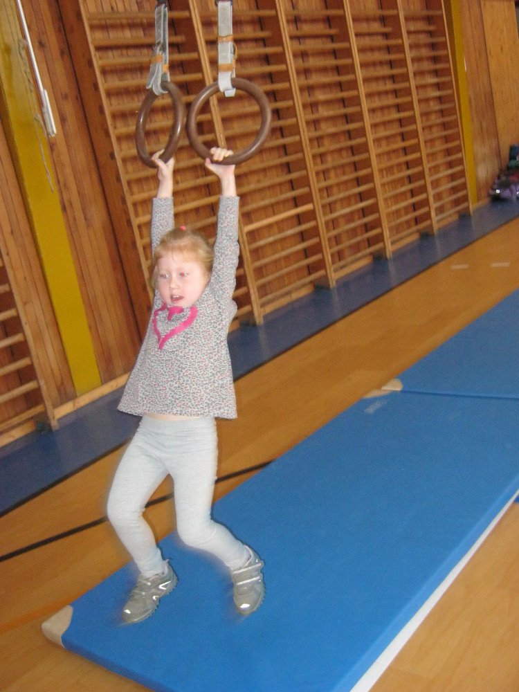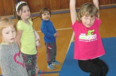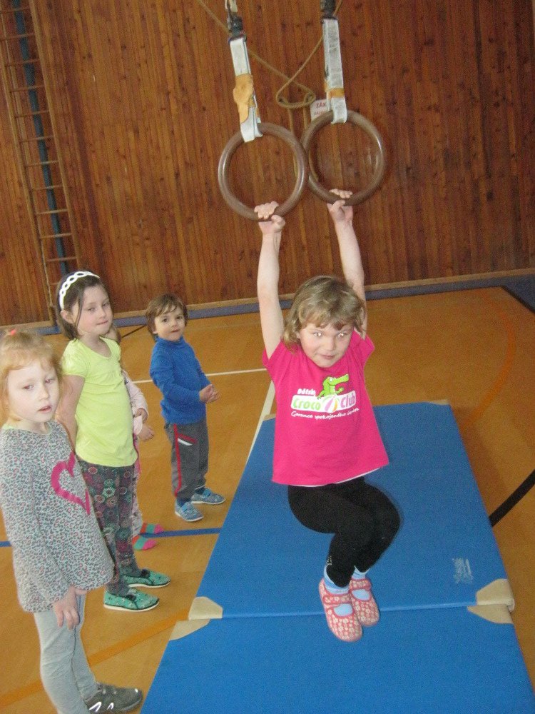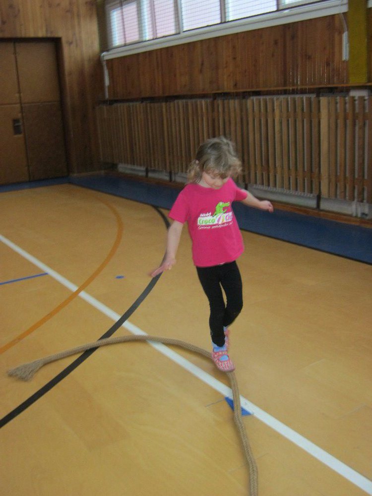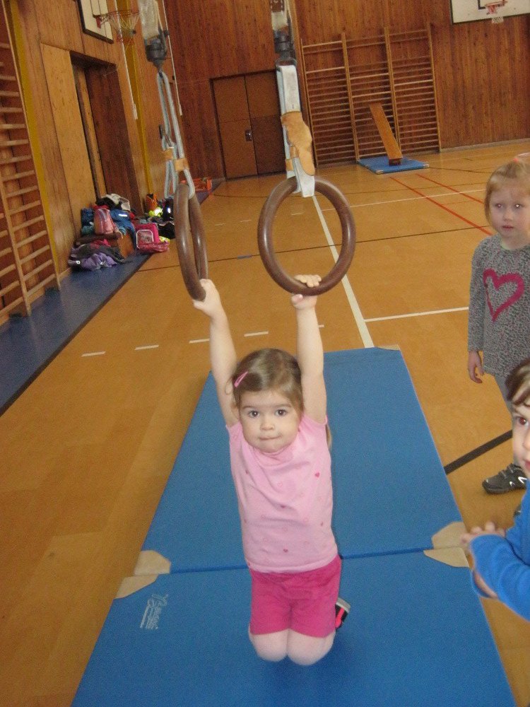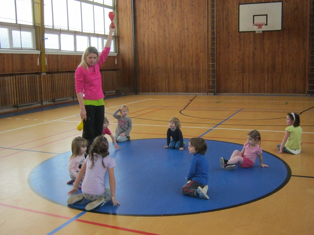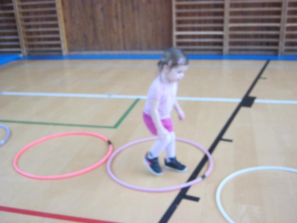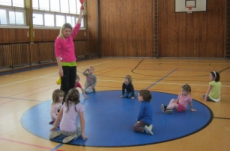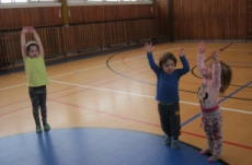 V naší školce nemáme tělocvičnu, proto jsme využili možnosti zapůjčit si tělocvičnu polické ZŠ a vyzkoušet si nářadí, které je zde k dispozici.