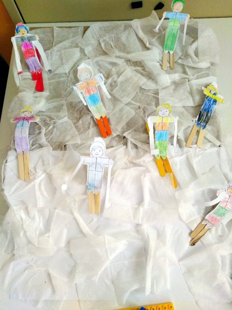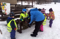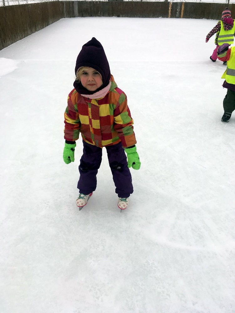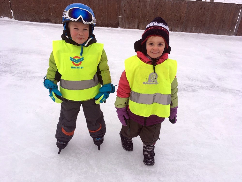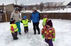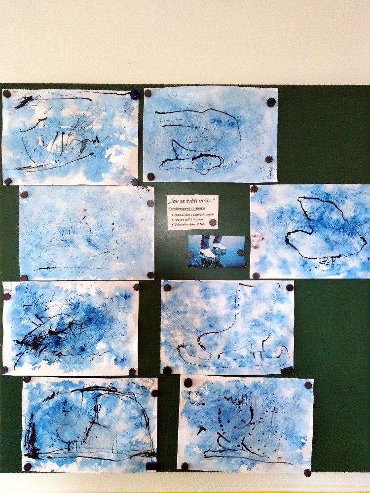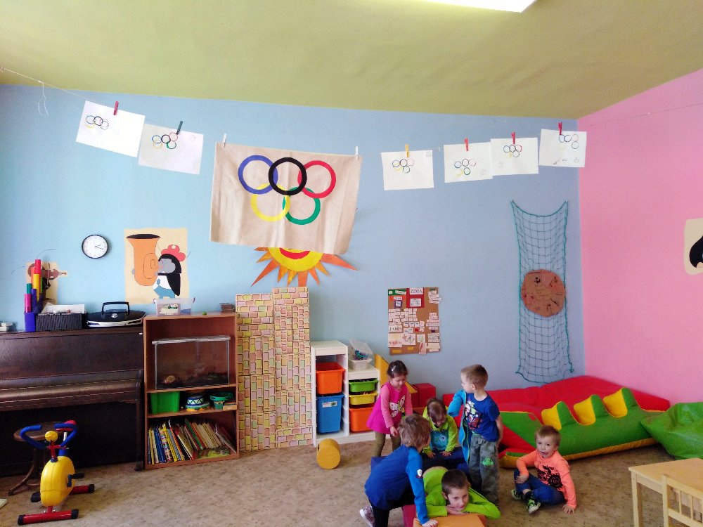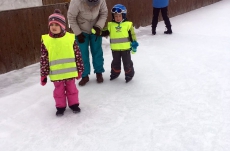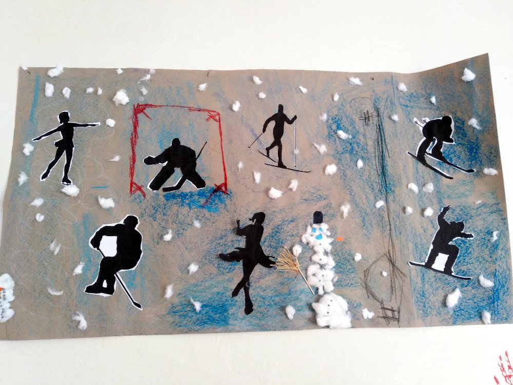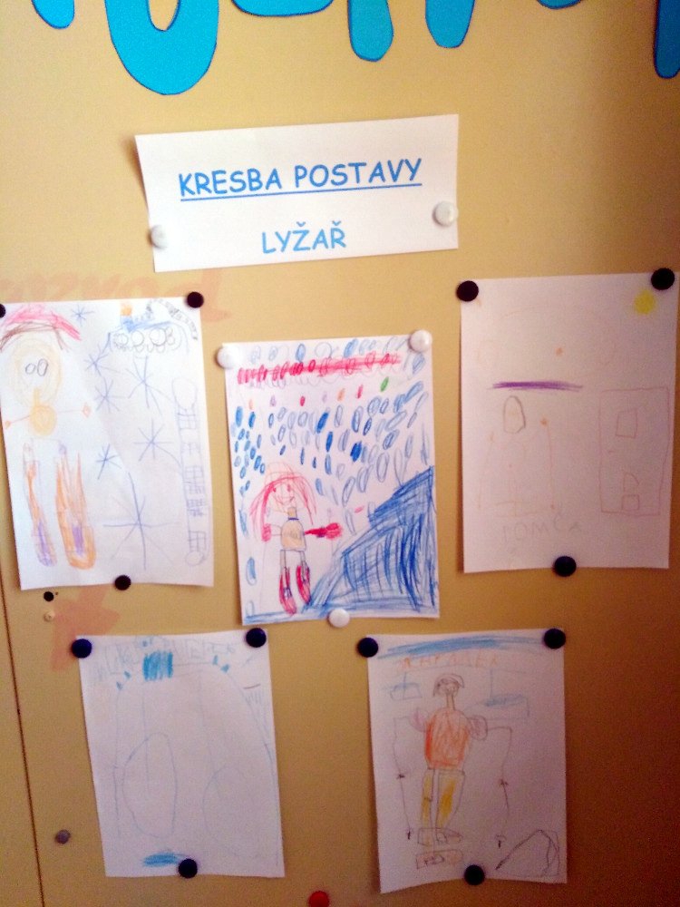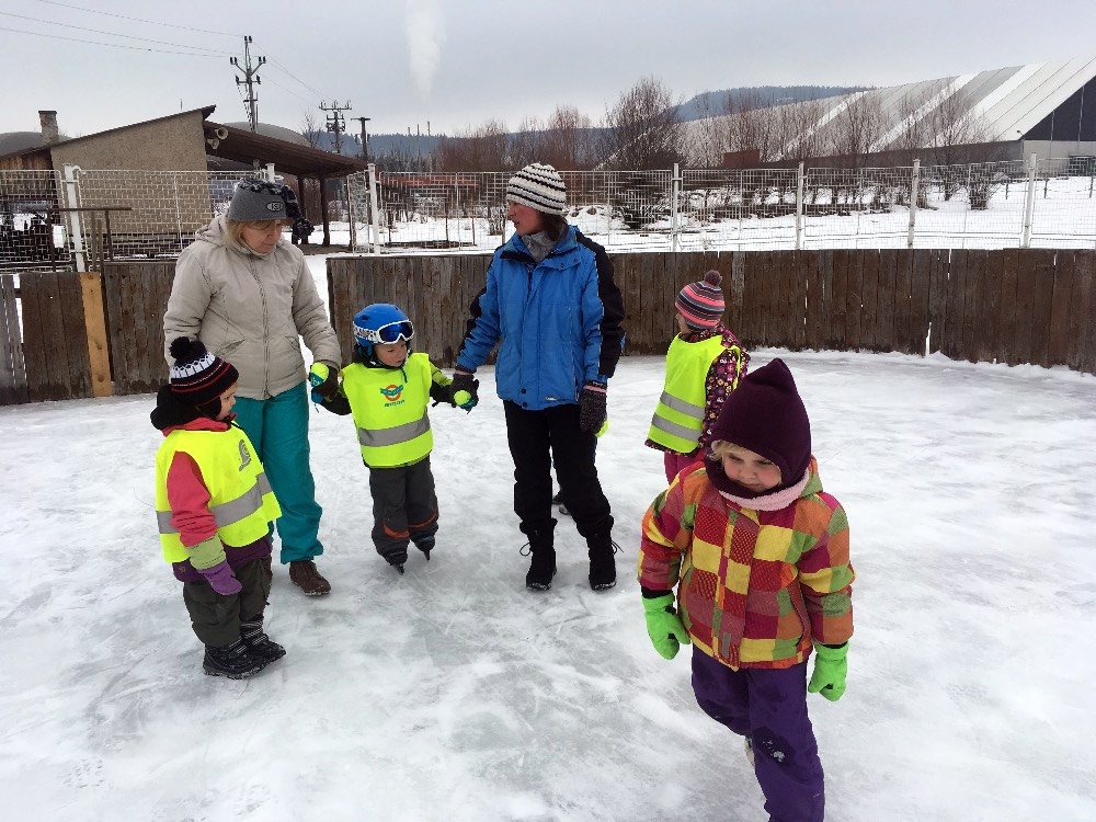 Téměř každý den jsme na lopatách sjížděli kopeček na místním hřišti. Ve školce jsme si vyrobili lyže a projeli jsme překážkovou dráhu. Na pomyslném snowboardu jsme se učili udržet rovnováhu. V biatlonu jsme se strefovali do kelímků. S opravdickou hokejkou a pukem jsme si zahráli lední hokej. Připomněli jsme si i zimní olympiádu. Celé téma jsme zakončili bruslením na metujském kluzišti.