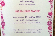Letos jsme zvolili trošku jinou oslavu svátku maminek. Místo na besídku jsme naše maminky pozvali na společné odpoledne u koní. Zázemí nám poskytla paní Rubáčková, za což jí srdečně děkujeme.