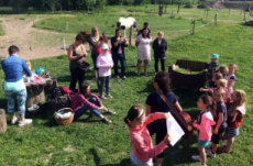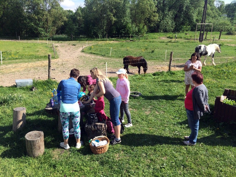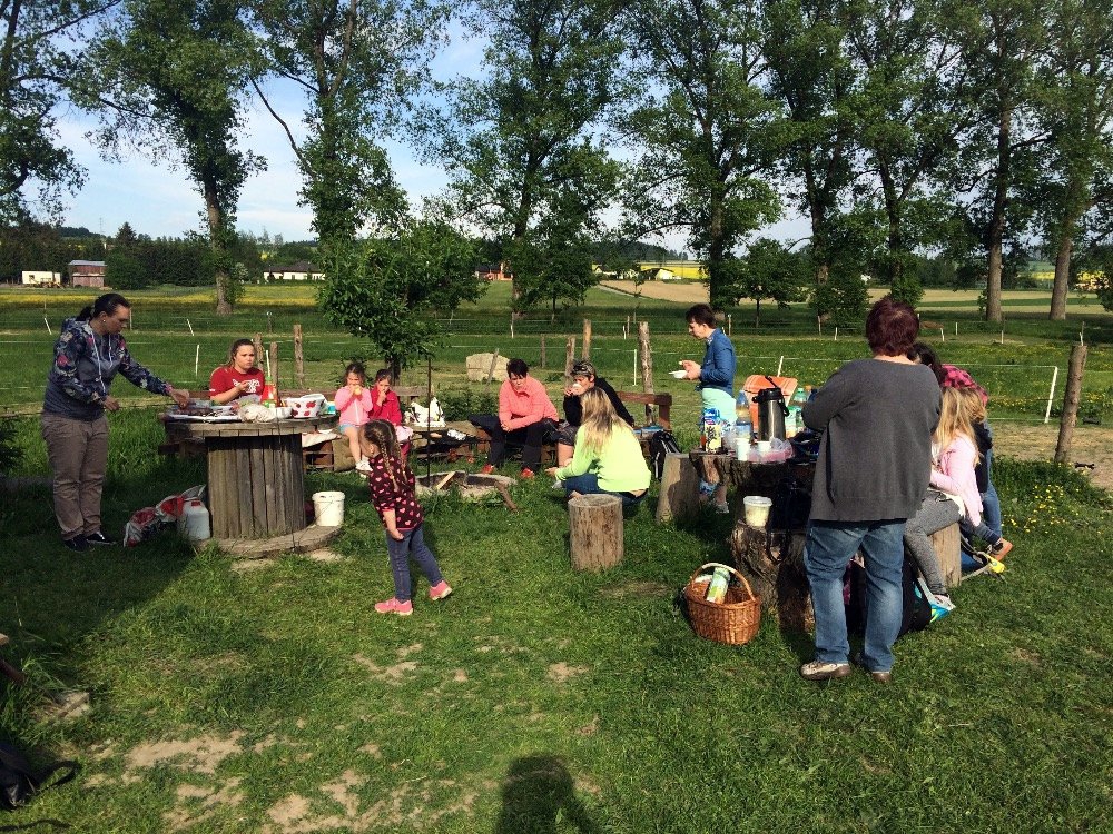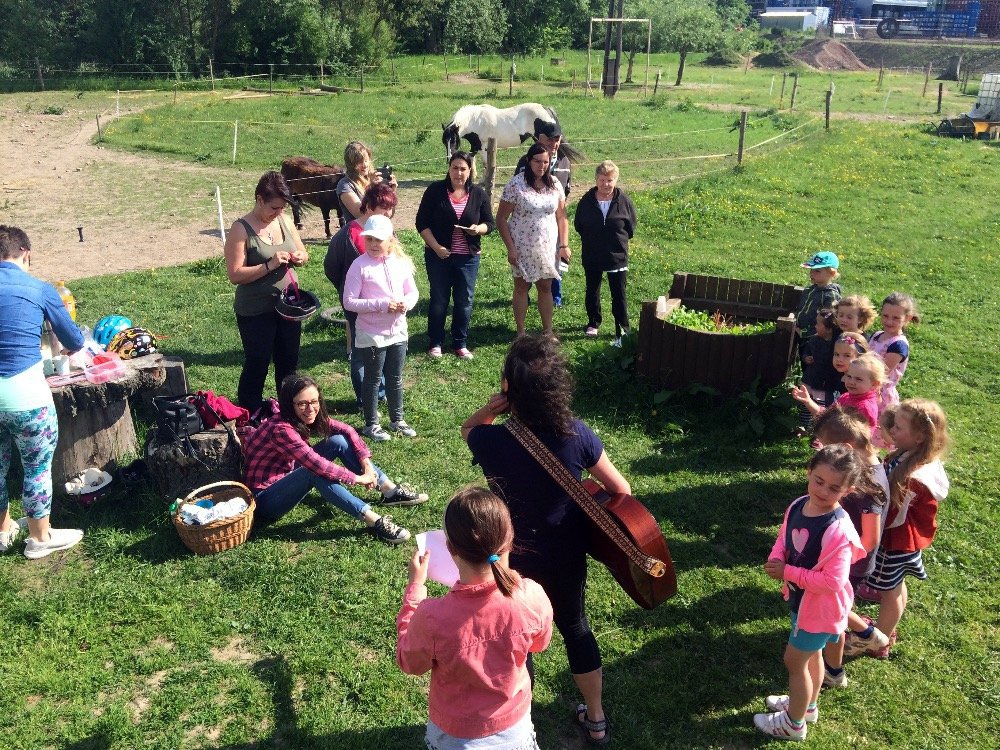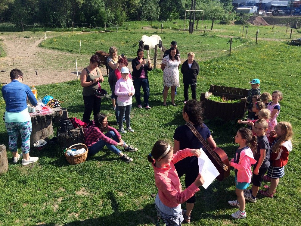 Děti maminkám nejprve předaly malé poděkování v podobě písničky a básničky a dáreček - přáníčko a náušnice z lučního kvítí. Potom jsme se s panem Hurdálkem vyfotili, děti se povozily na ponících. Společně jsme opékali a užili si pěkný den.
