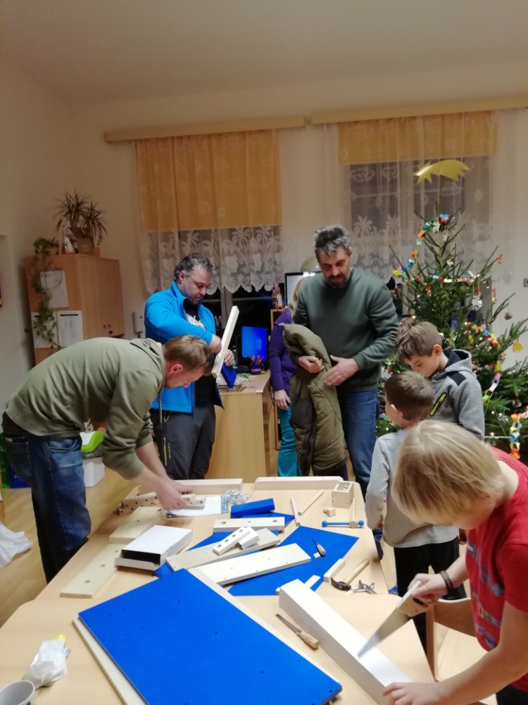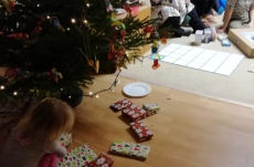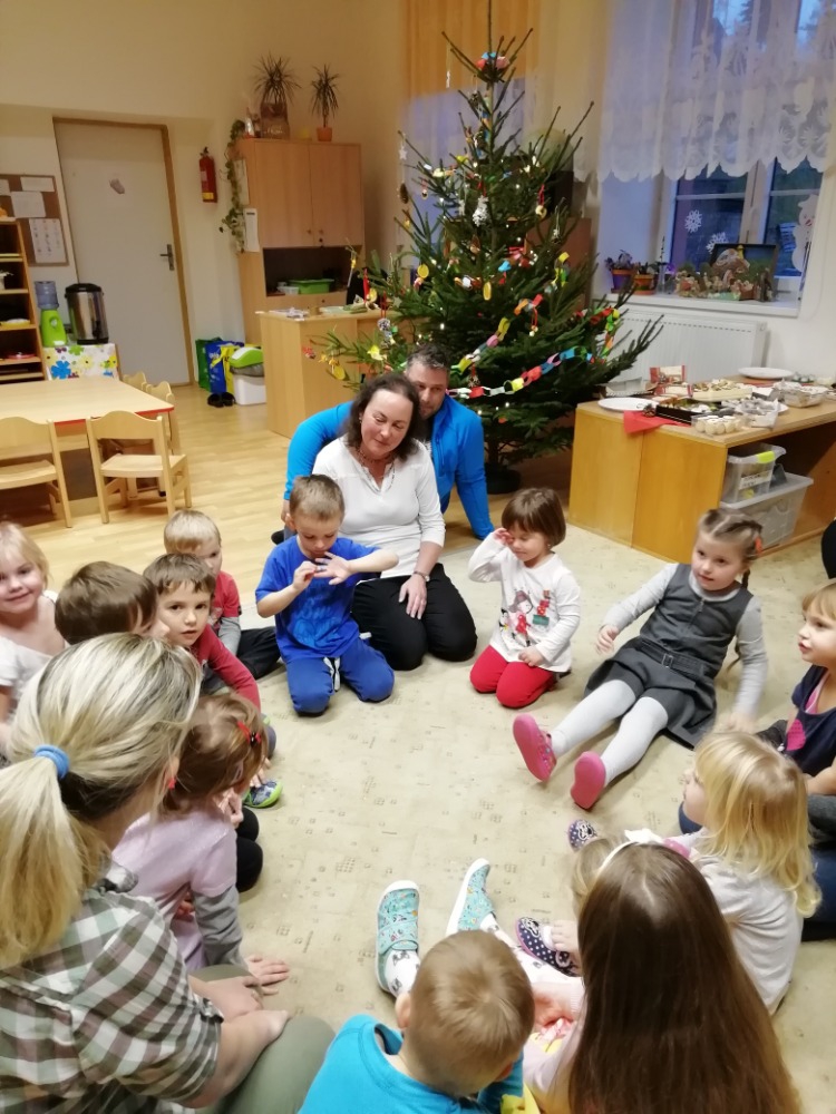 S rodiči, sourozenci a dalšími příbuznými jsme prožili středeční odpoledne. Nejprve jsme vyráběli ozdoby a strojili vánoční stromeček. Potom jsme se odebrali do jídelny a po zpěvu koled a zacinkání zvonečku jsme přišli k rozsvícenému smrčku, pod kterým jsme našli plno dárečků. Hráli jsme si s nimi až do večera. A maminkám děkujeme za výborné cukroví.