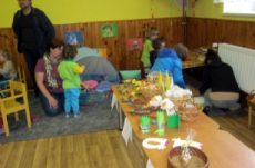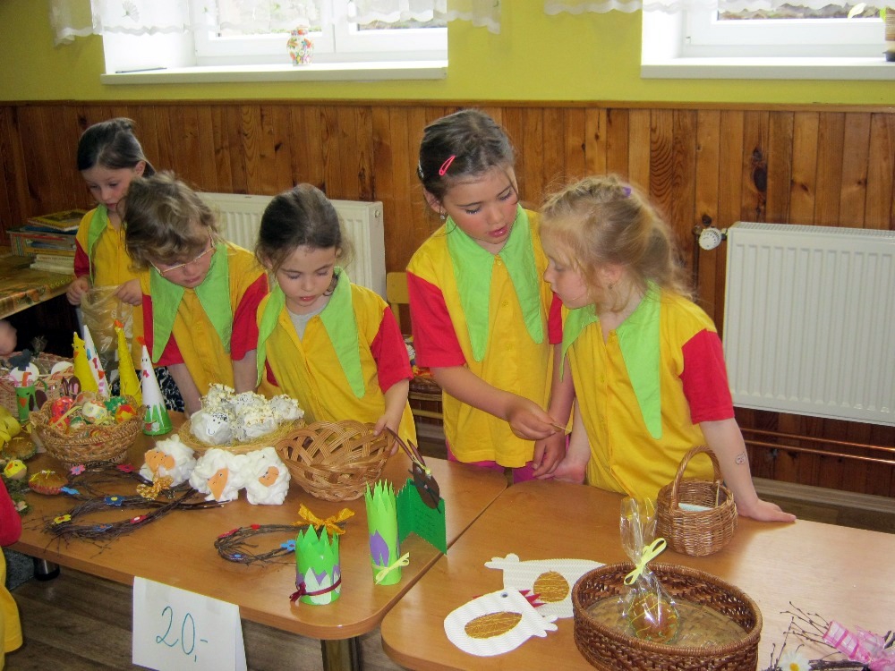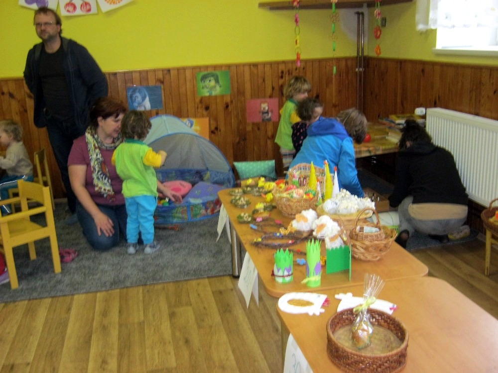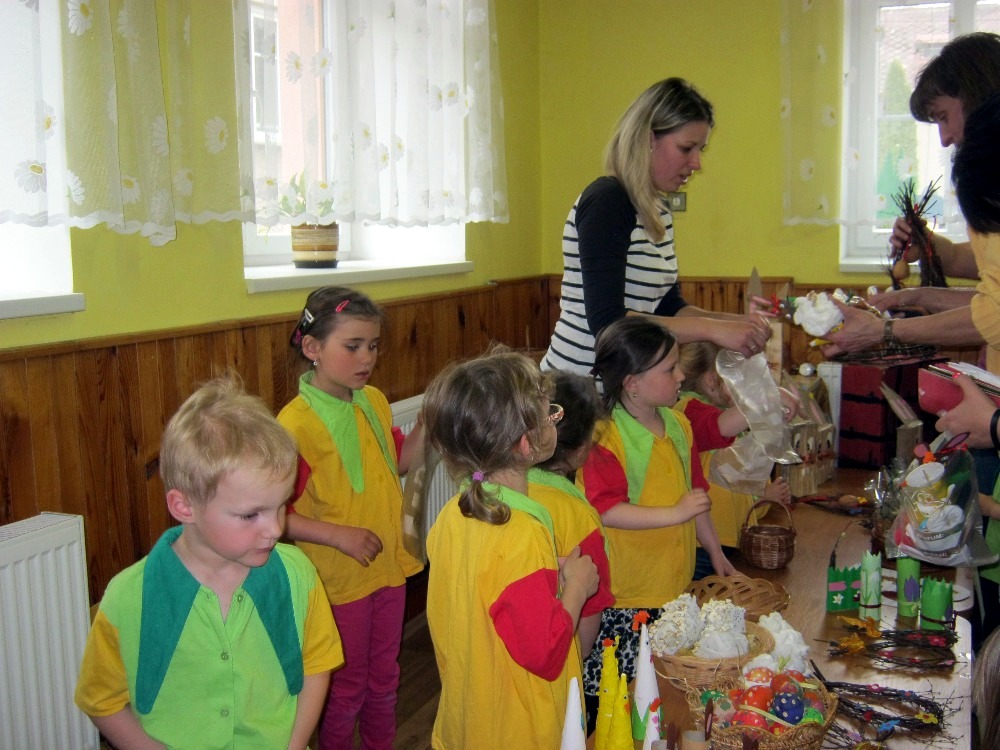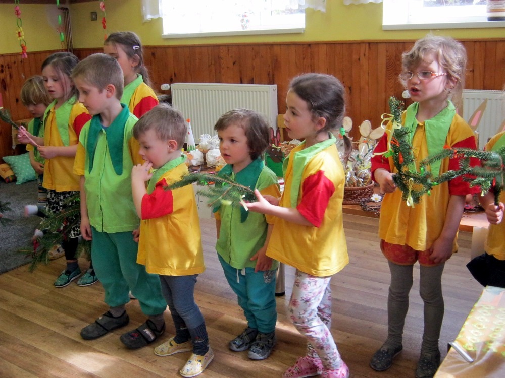 Na Škaredou středu proběhl v naší školce velikonoční jarmark. Uspořádali jsme ho v jídelně jako akci pro obec. Děti nejprve předvedly krátké pásmo jarních a velikonočních koled, básniček a písní.