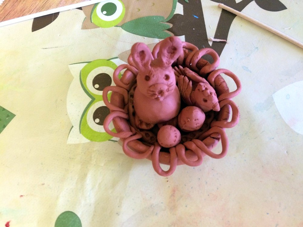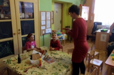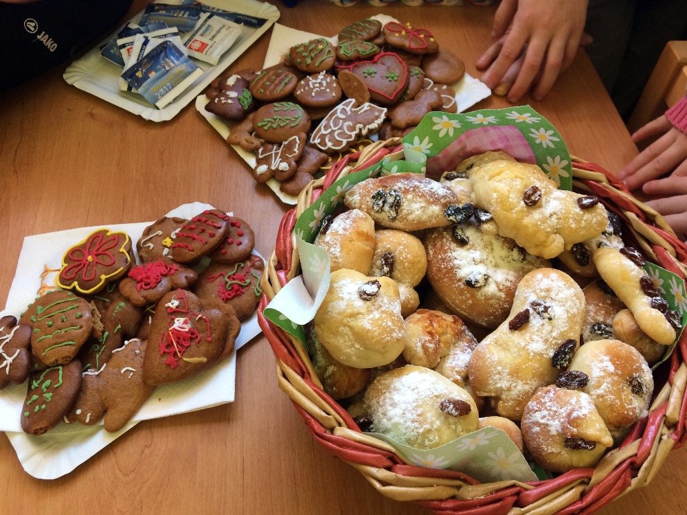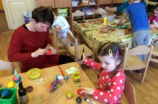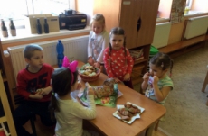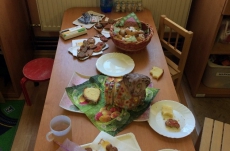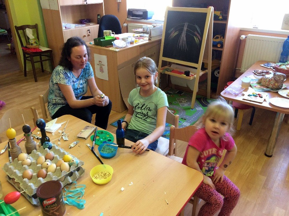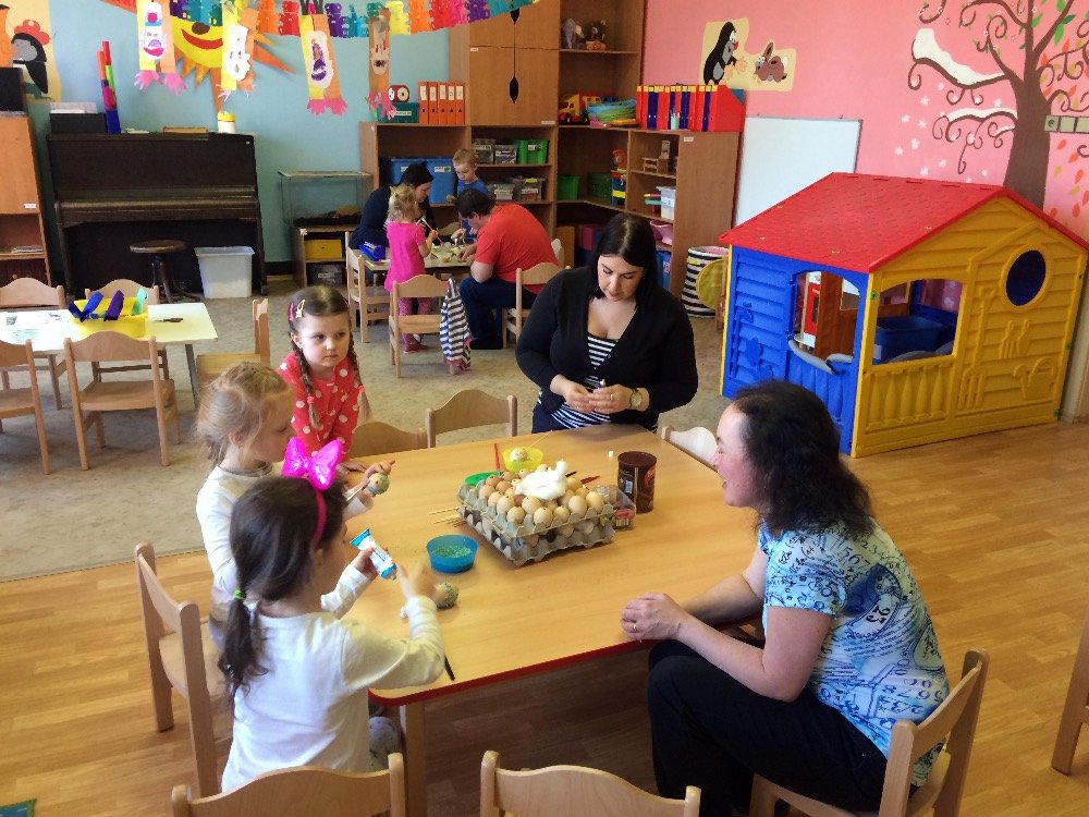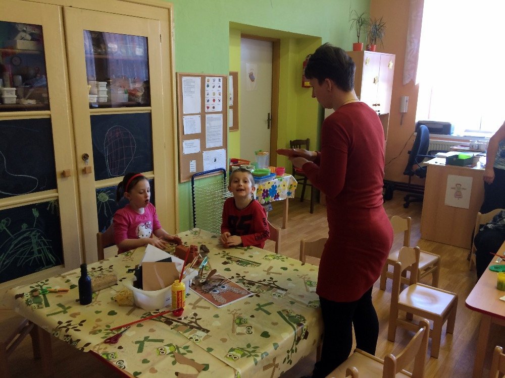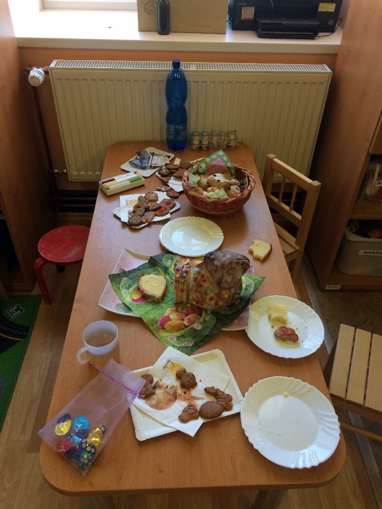 Vyráběli jsme kytičky z krepového papíru, zajíce, ptáčky a tulipány z přírodnin, mističky a zvířátka z keramické hmoty. Zdobili jsme vejdunky. Rodiče nám tak pomohli vytvořit plno krásných věcí na velikonoční výstavu. Měli jsme také dobrou hostinu. Pochutnali jsme si na perníčcích a jidášcích, které jsme si sami upekli. Paní Haitlová donesla beránka, kterého stačilo ozdobit a sníst.