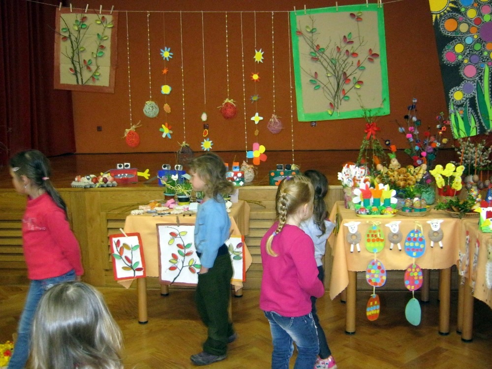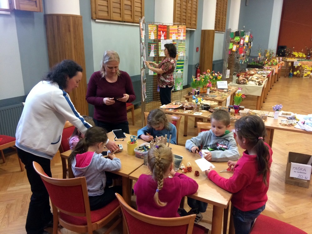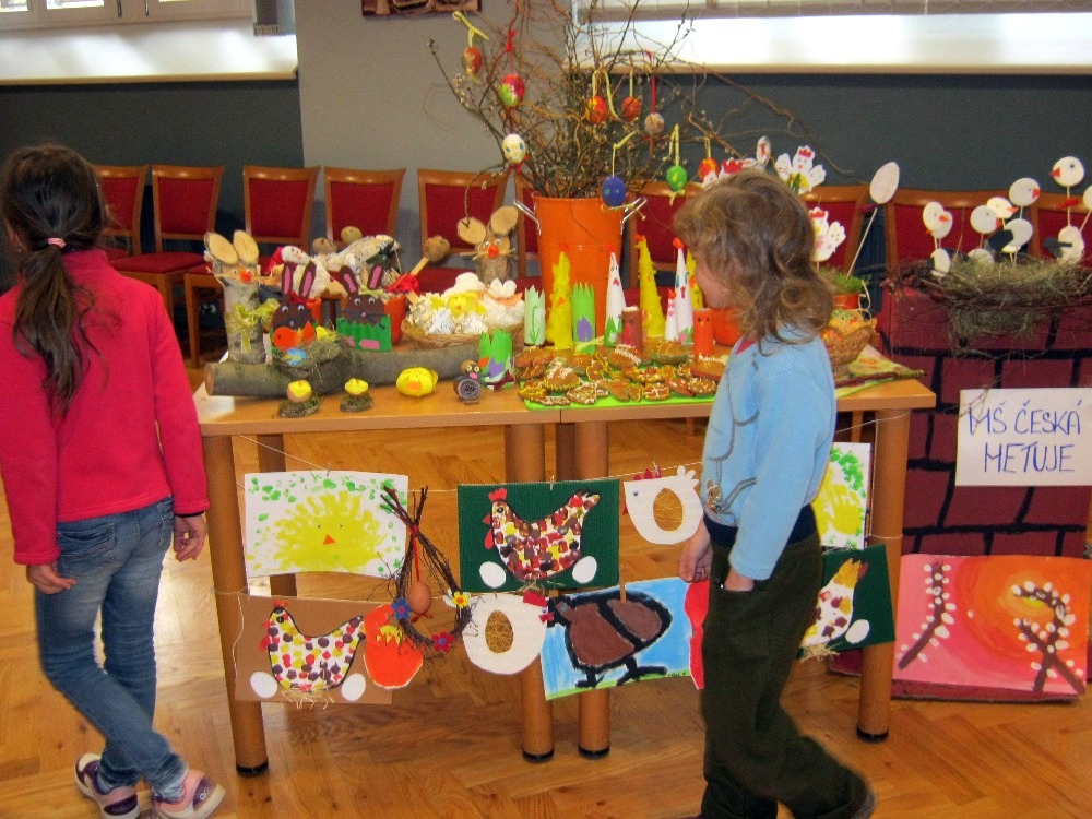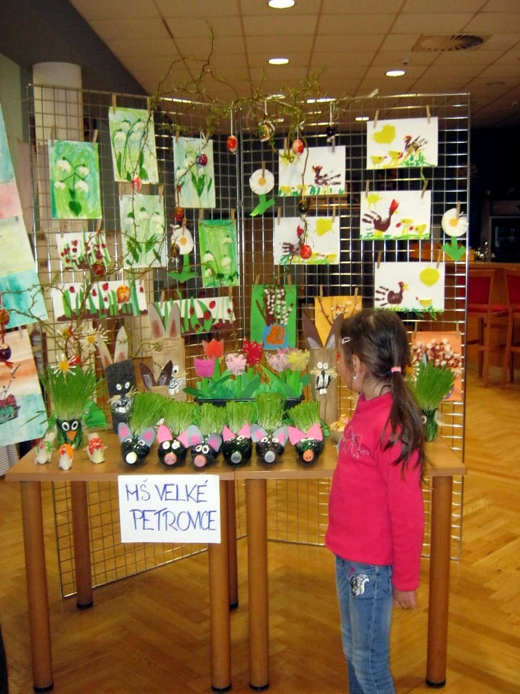 Díky tomu jsme mohli s dětmi vyrobit hodně velikonočních dekorací. Některé z nich jsme potom vybrali do našeho koutku na výstavě. Nakonec jsme se jeli na výstavu podívat. Výrobky všech dětí se nám moc líbily. Zúčastnili jsme se též zde probíhajících velikonočních dílniček.
