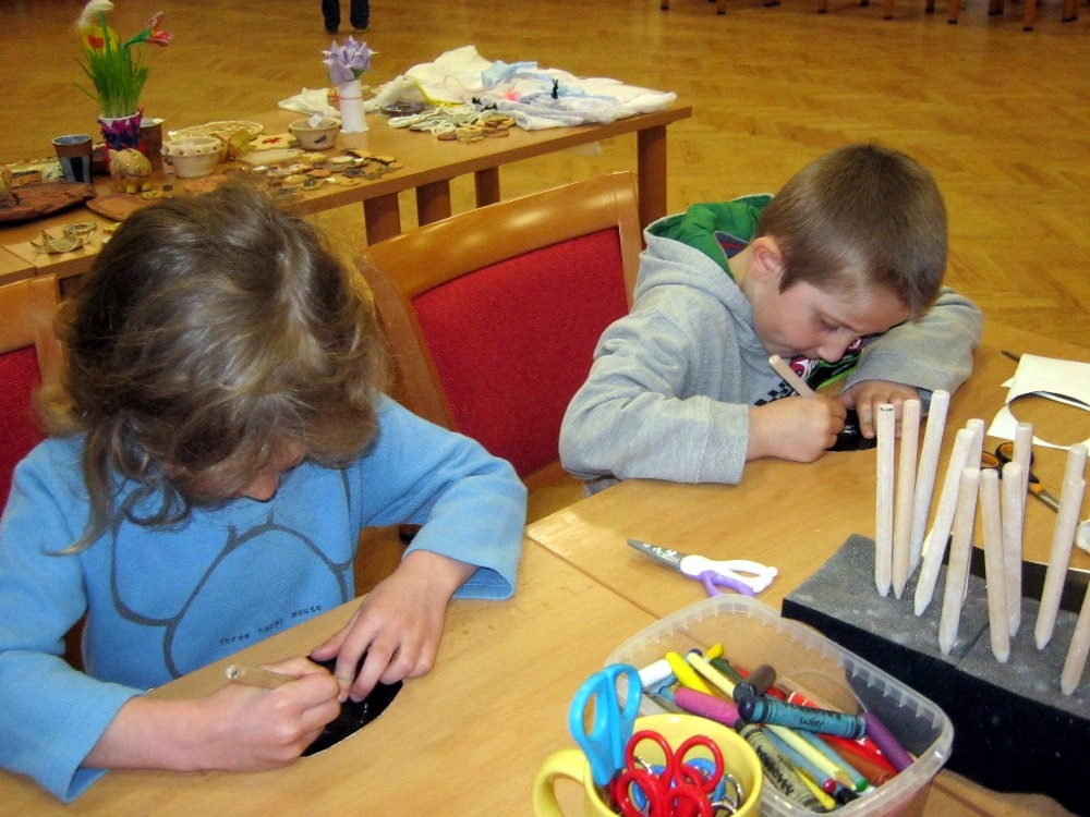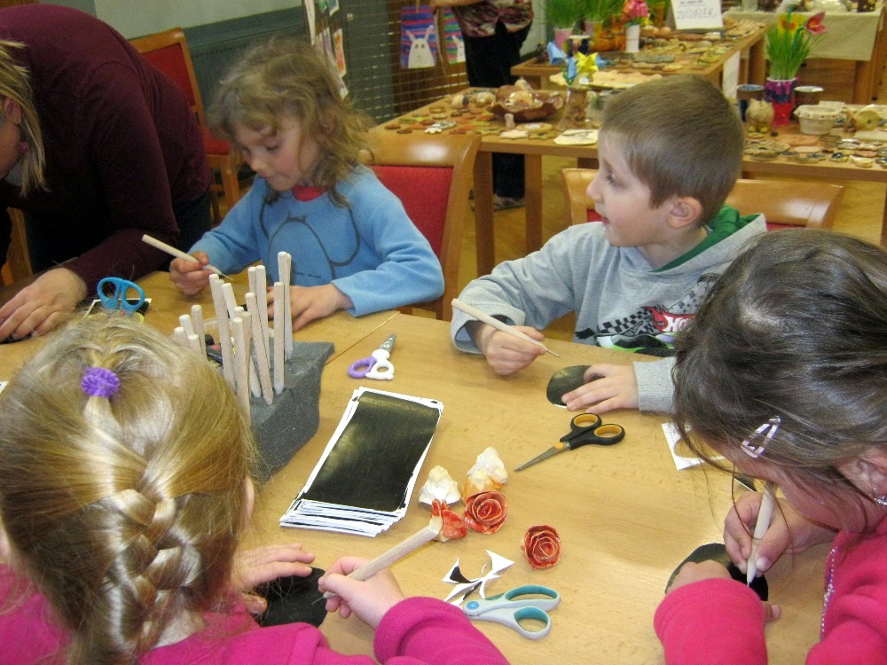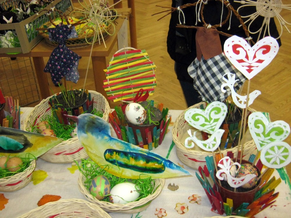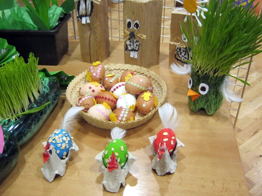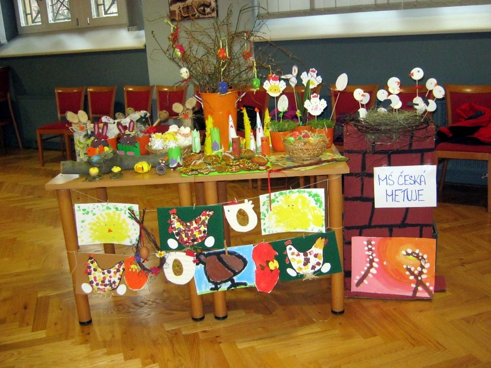 Díky tomu jsme mohli s dětmi vyrobit hodně velikonočních dekorací. Některé z nich jsme potom vybrali do našeho koutku na výstavě. Nakonec jsme se jeli na výstavu podívat. Výrobky všech dětí se nám moc líbily. Zúčastnili jsme se též zde probíhajících velikonočních dílniček.