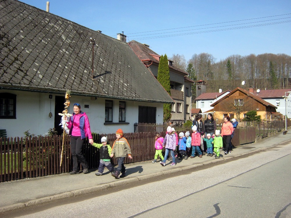V březnu jsme s dětmi symbolicky otevřeli jarní bránu a přivítali jaro. Před Smrtnou nedělí jsme společně s maminkami vynesli Morenu.