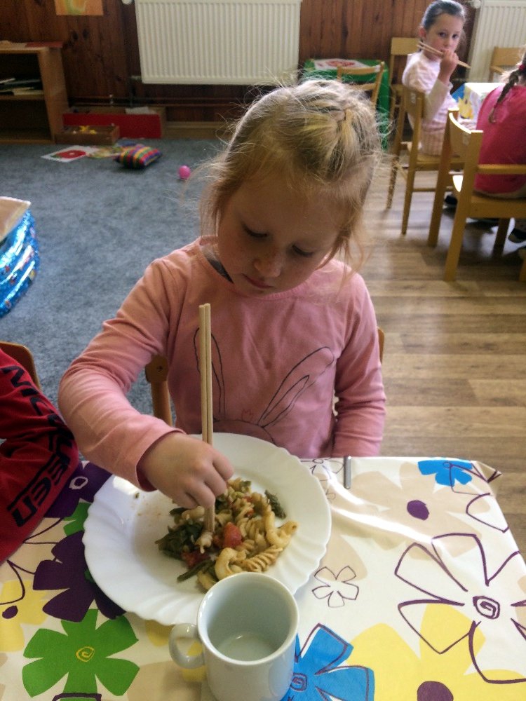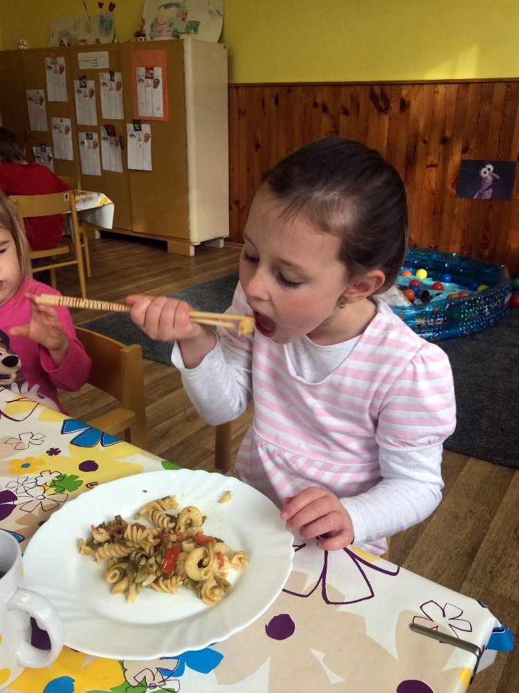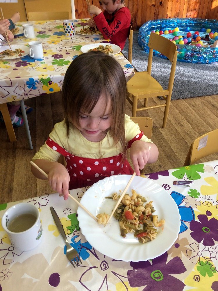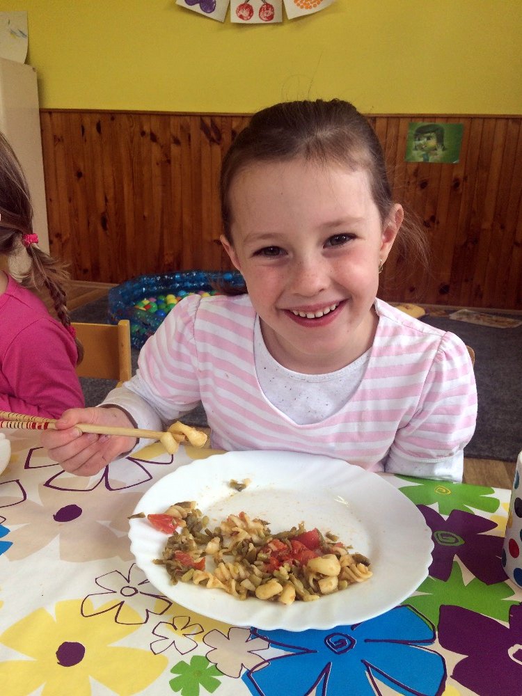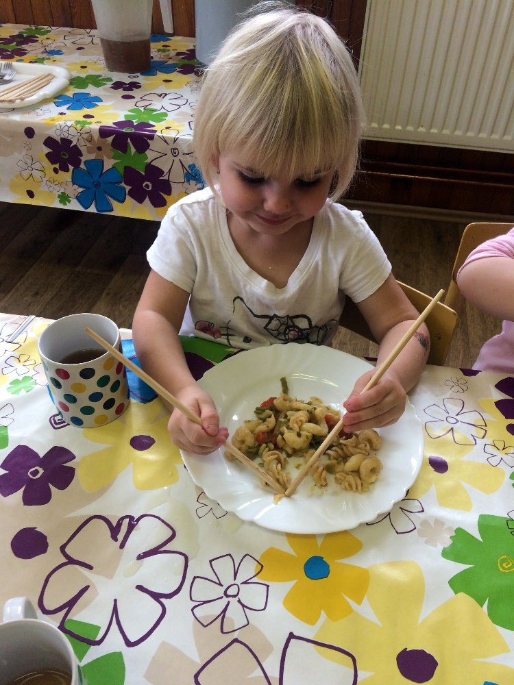 Stavěli jsme iglú a tepee, vyráběli vějíř, učili jsme se romské tance a indiánskou řeč. Nejvíc děti bavilo jíst čínskými hůlkami. Ty si také na konci týdne odnesly domů. Cílem celého snažení bylo přivést děti k tomu, že i když každý vypadáme jinak, jsme si rovnocenní a chceme se mít všichni rádi.