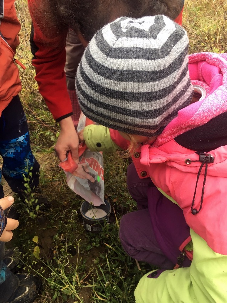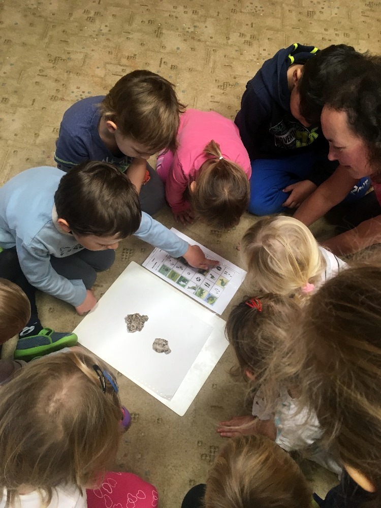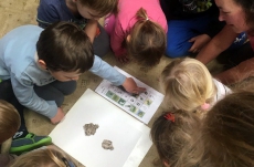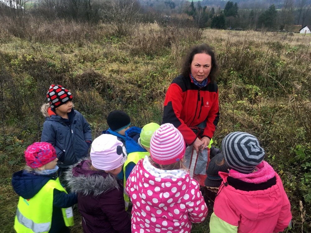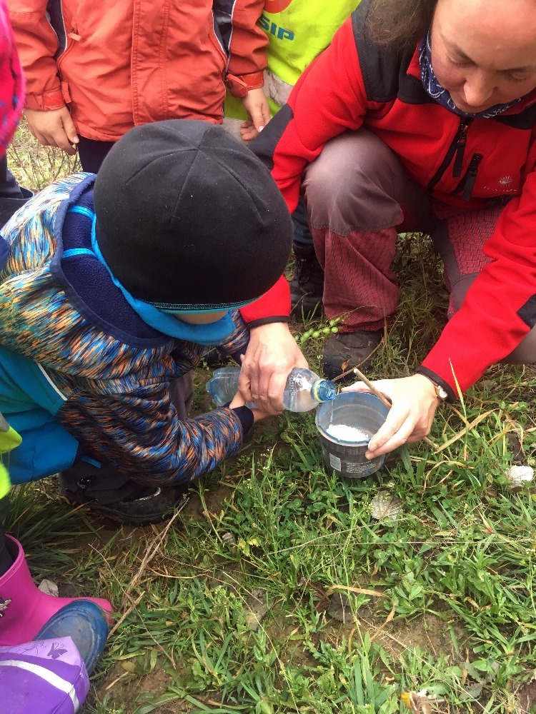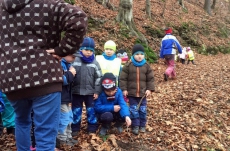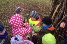 Na vycházku do lesa s námi šla paní myslivcová. Seznámila nás s pravidly chování v lese, ukázala nám různé typy parohů a stopy zvířátek. Ty jsme pozorovali již dříve a zkoušeli jsme je také odlévat. Dostali jsme stromky, které jsme ozdobili mimo jiné našimi vyrobenými krmítky ze šišek. Ptáčkové už si pochutnávají.