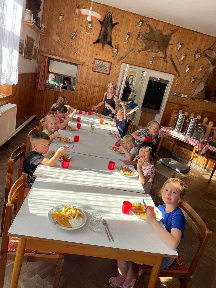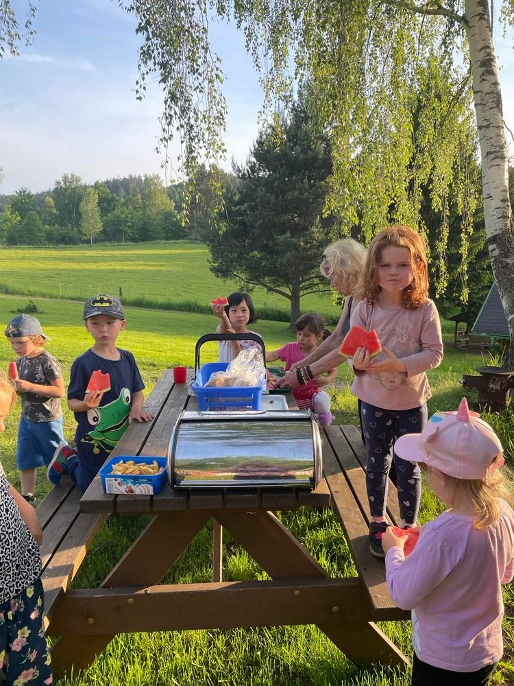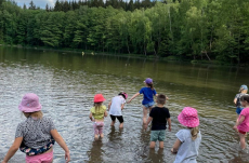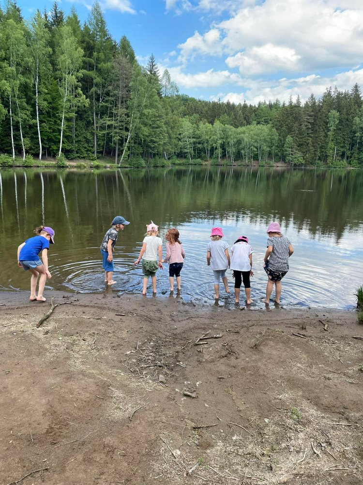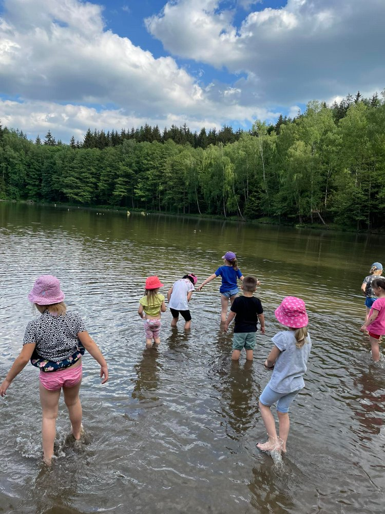 Chůze terénem byla náročná, ale odměna, v podobě brouzdání ve vodě, všechny „útrapy cesty“ překonala. Po chutné a vydatné večeři si děti nanosily klestí z lesa na přípravu ohně na večerní opékání špekáčků. Děti se „vyřádily“ v krásném prostředí, které je využíváno pro letní tábory dětí.