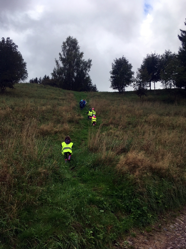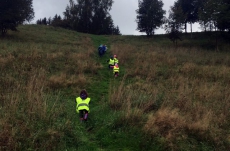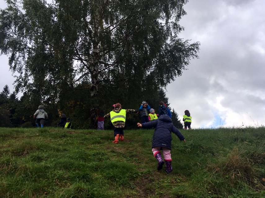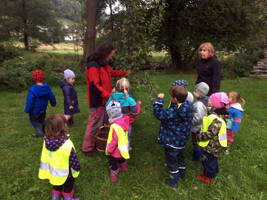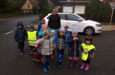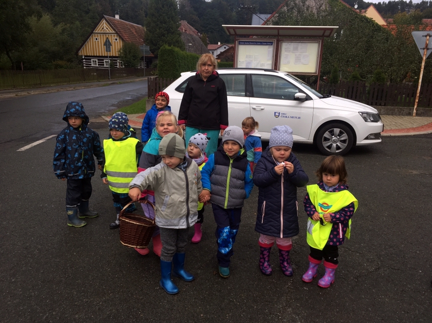 Opět po roce jsme jeli zkontrolovat, jak roste naše školková hruštička v Dědově. Zpět do školky jsme se vrátili pěšky. Za sběru podzimních plodů nám cesta lesem rychle utekla.