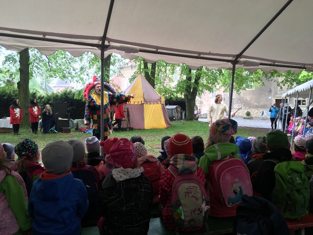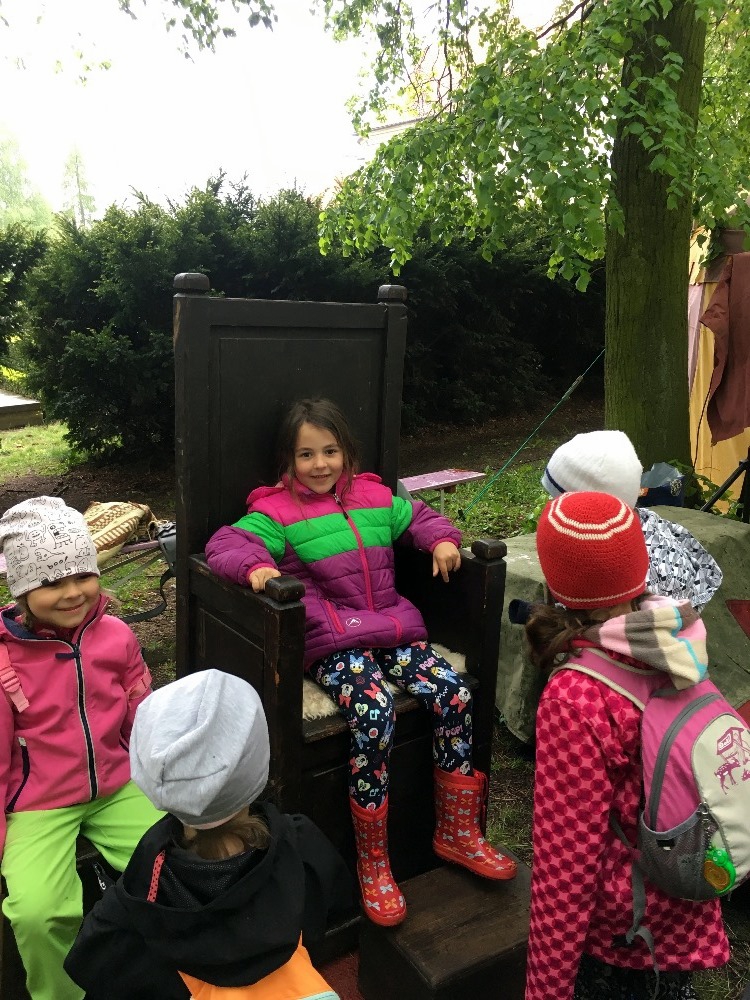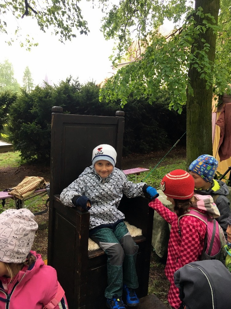 Po skončení pohádky si děti na stanovištích vyzkoušely činnosti a řemesla z dob, kdy žili princové a princezny. Po dobrém obědě jsme prošli zámecký park.