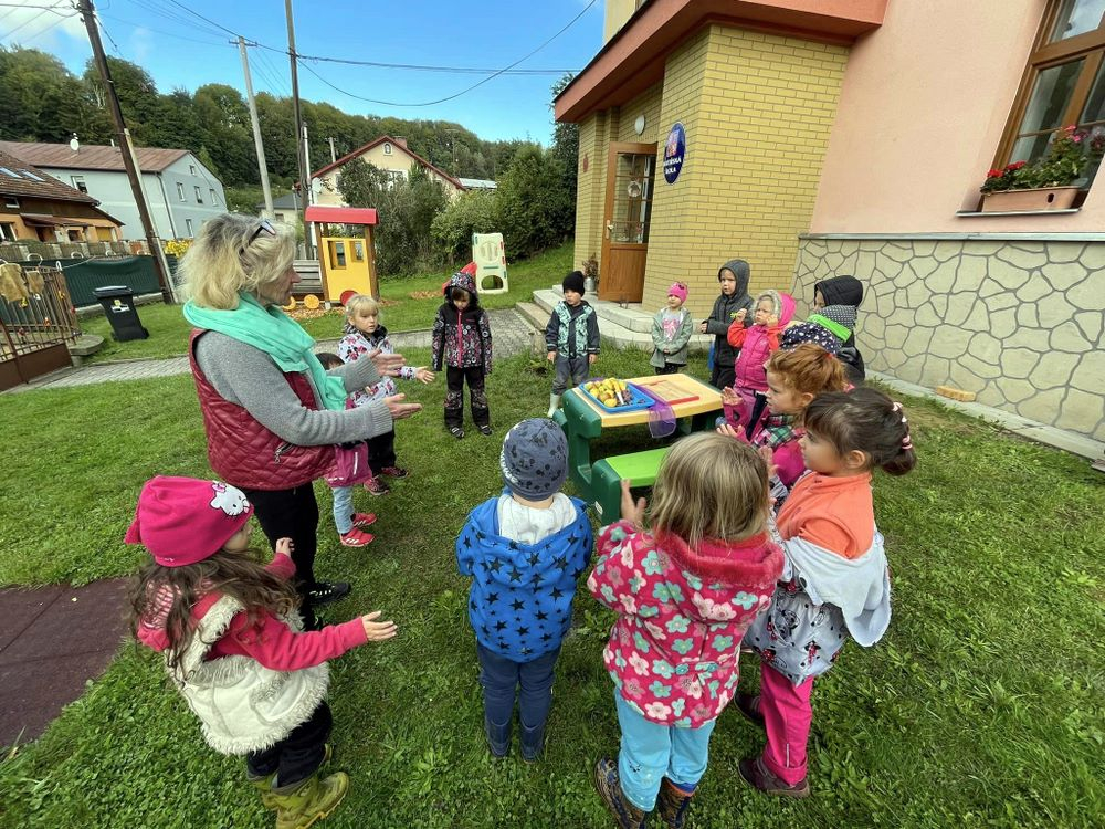 Tradiční návštěva školkové hruštičky v Dědově se uskutečnila v době krásného počasí, takže zpáteční pěší turistika nás bavila.
