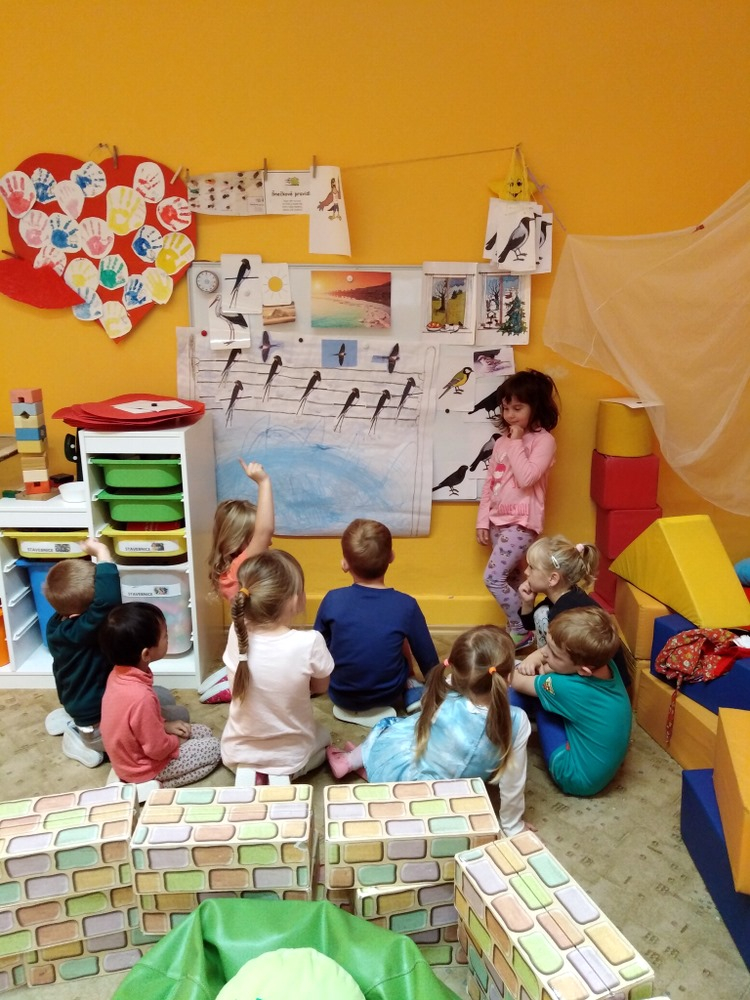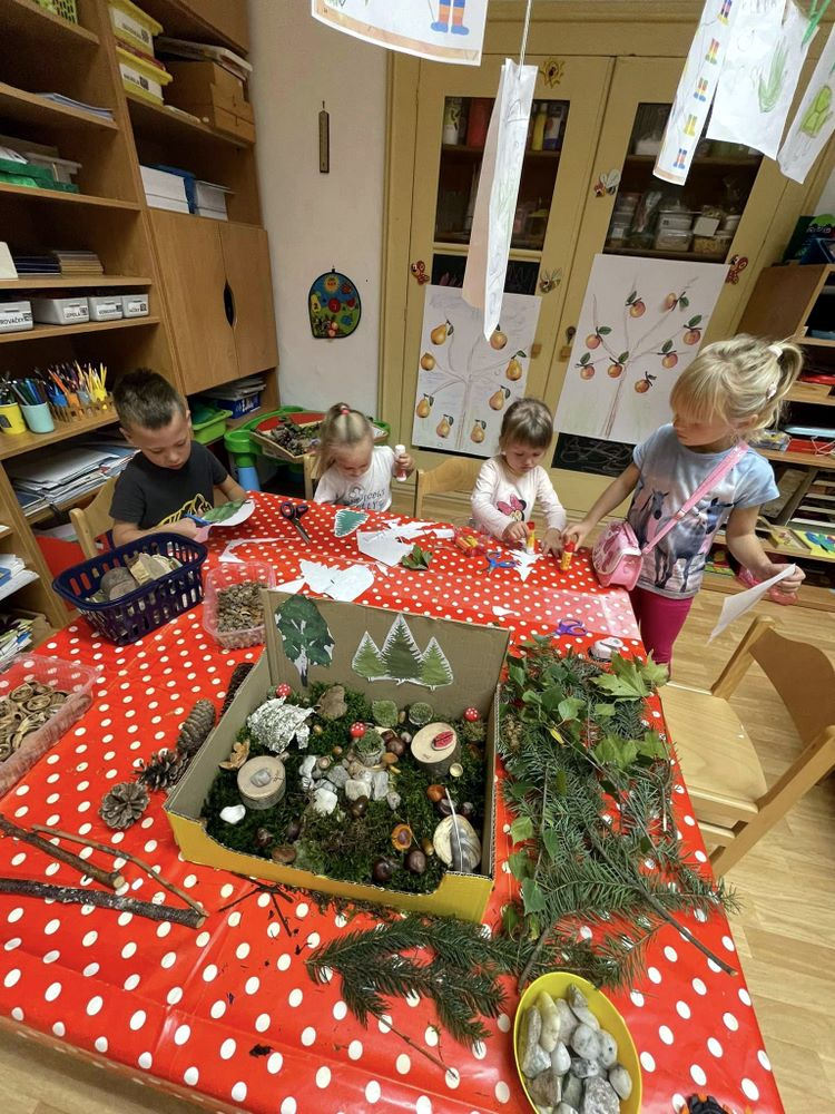 Zpívání, kreslení, modelování, vytváření z papíru dle fantazie, také rozvíjení matematických dovedností, zvyšování obratnosti prostřednictvím pohybových aktivit, oblíbené dramatizace pohádek je jen malý výčet činností, které naplňují naše dny.