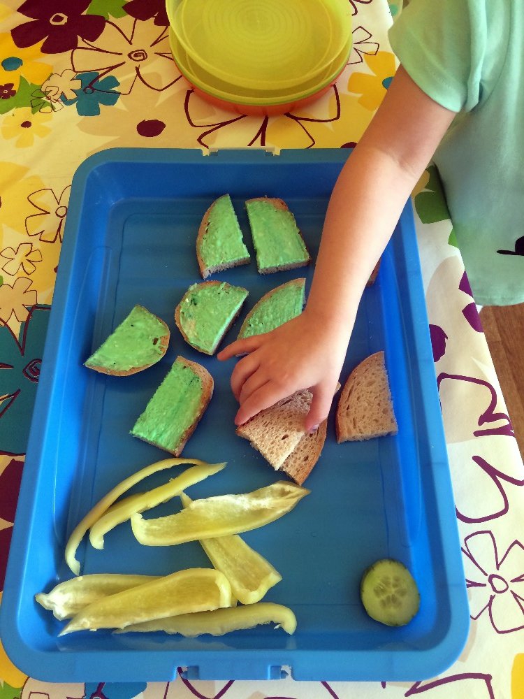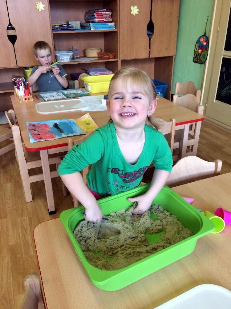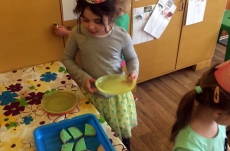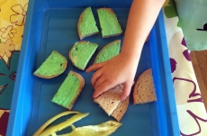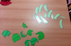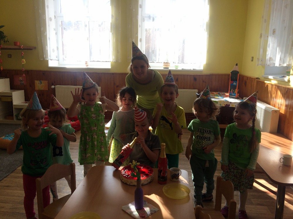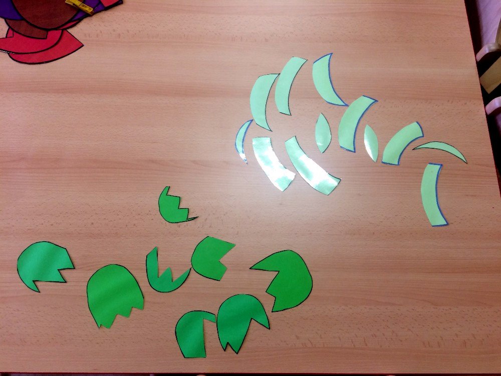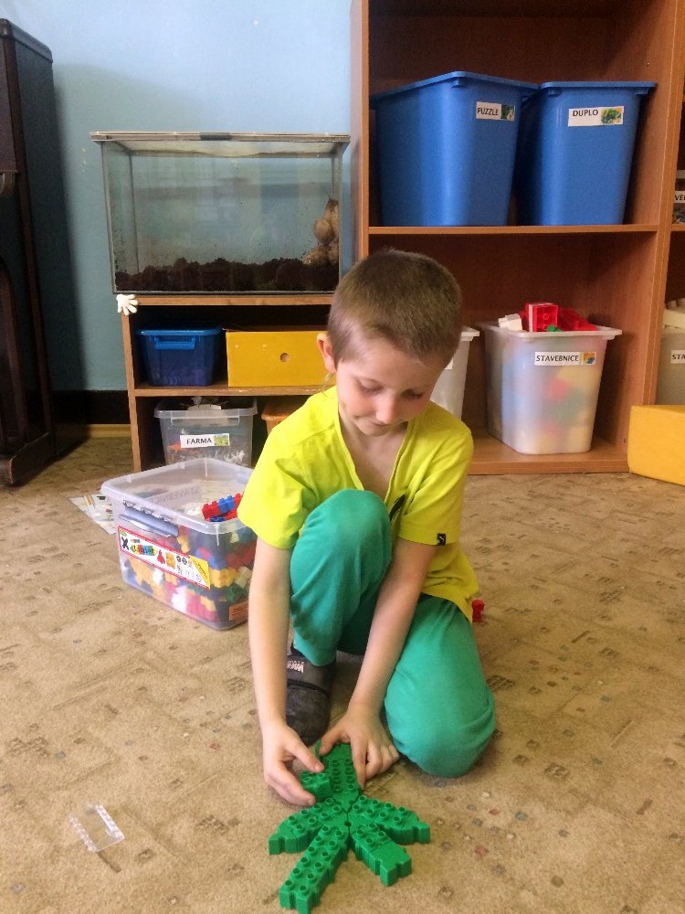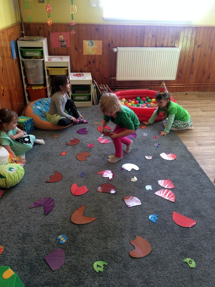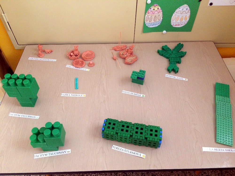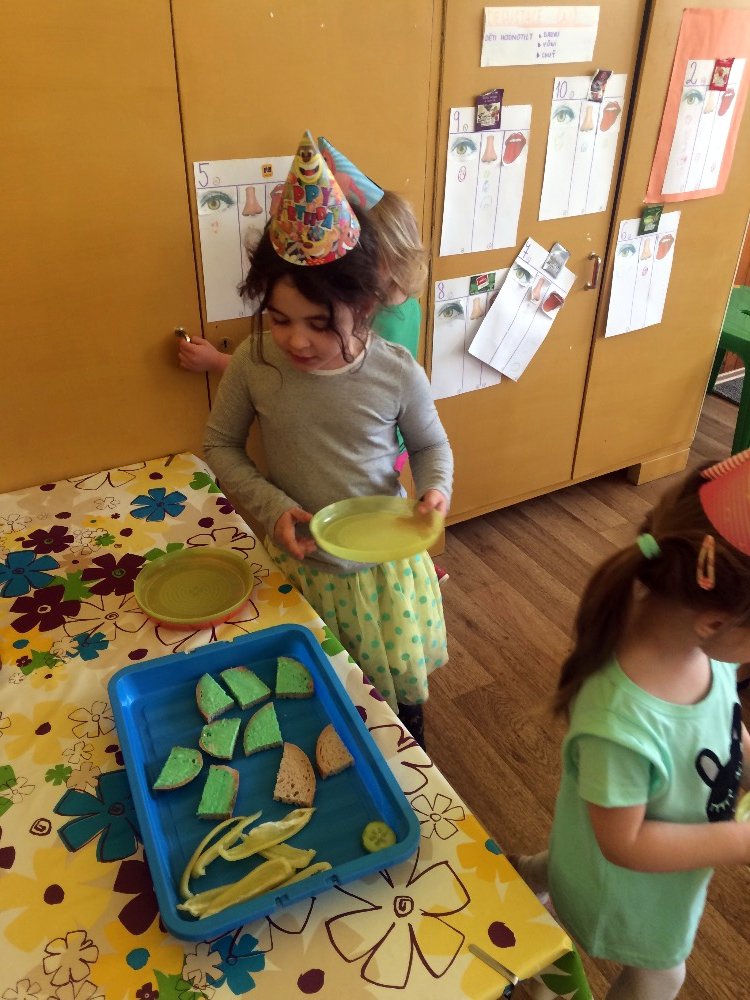 Zelený čtvrtek jsme pojali celý v zeleném. Přišli jsme v zeleném oblečení, svačili zelené pokrmy, plnili úkoly v zelené barvě, vyráběli předměty ze zelených dílů stavebnic, tancovali jsme na písničku Travička zelená.
