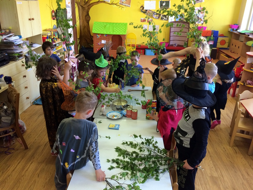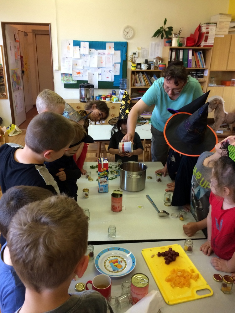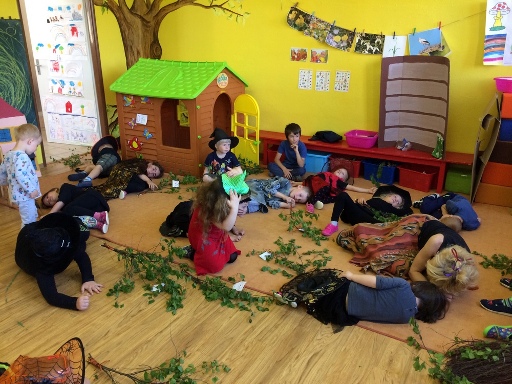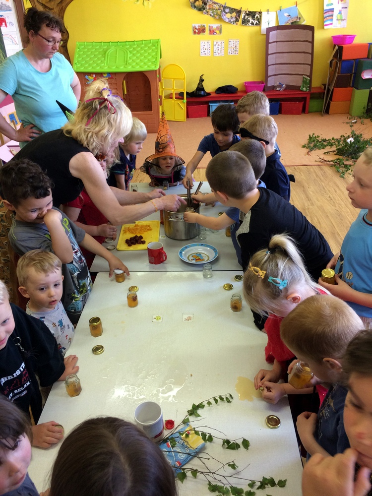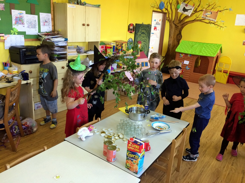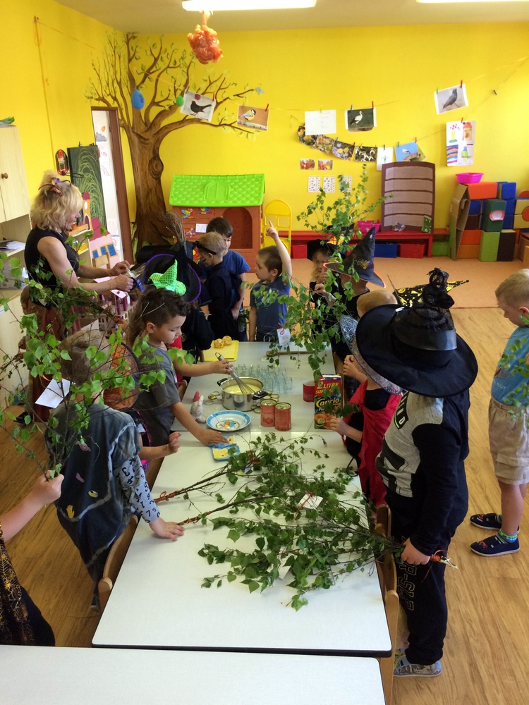 Společně jsme pak tančili, vařili kouzelný nápoj, hledali poklad v zakletém slizu,povídali si o kouzlech a zaklínadlech, létali na košťatech.