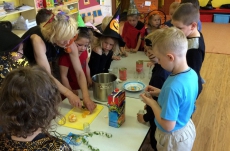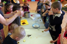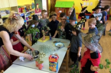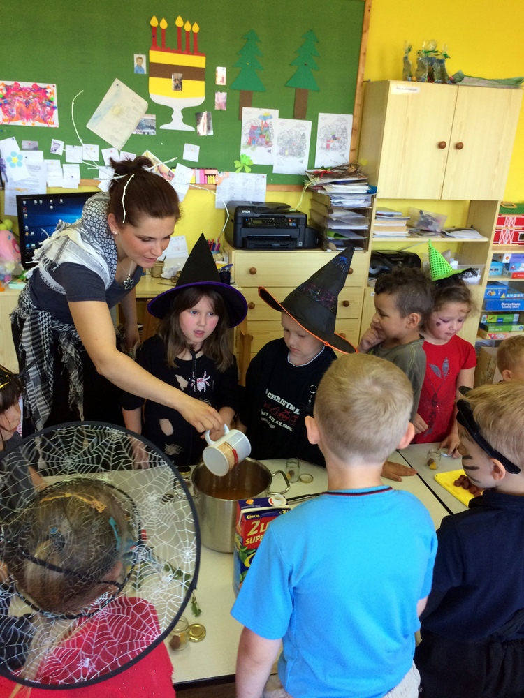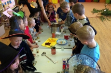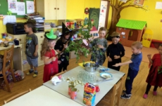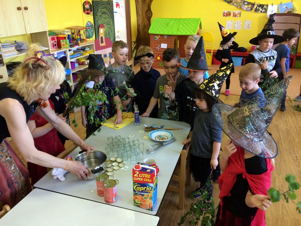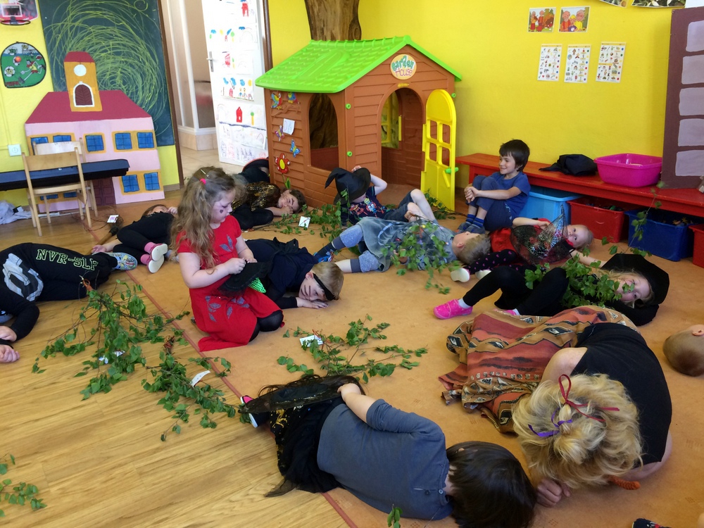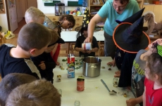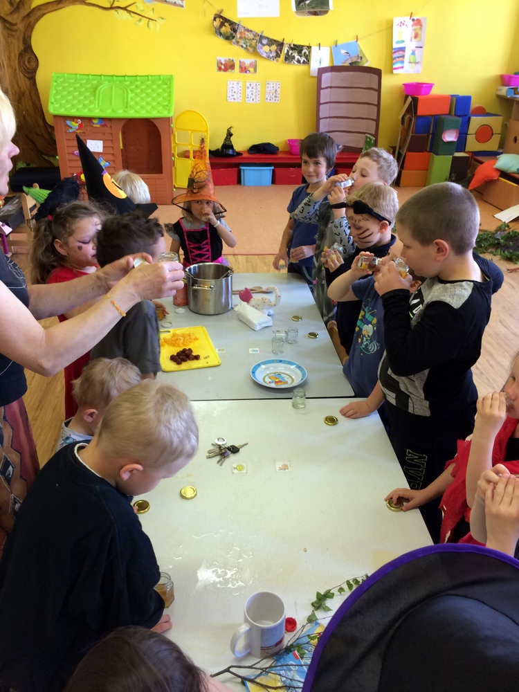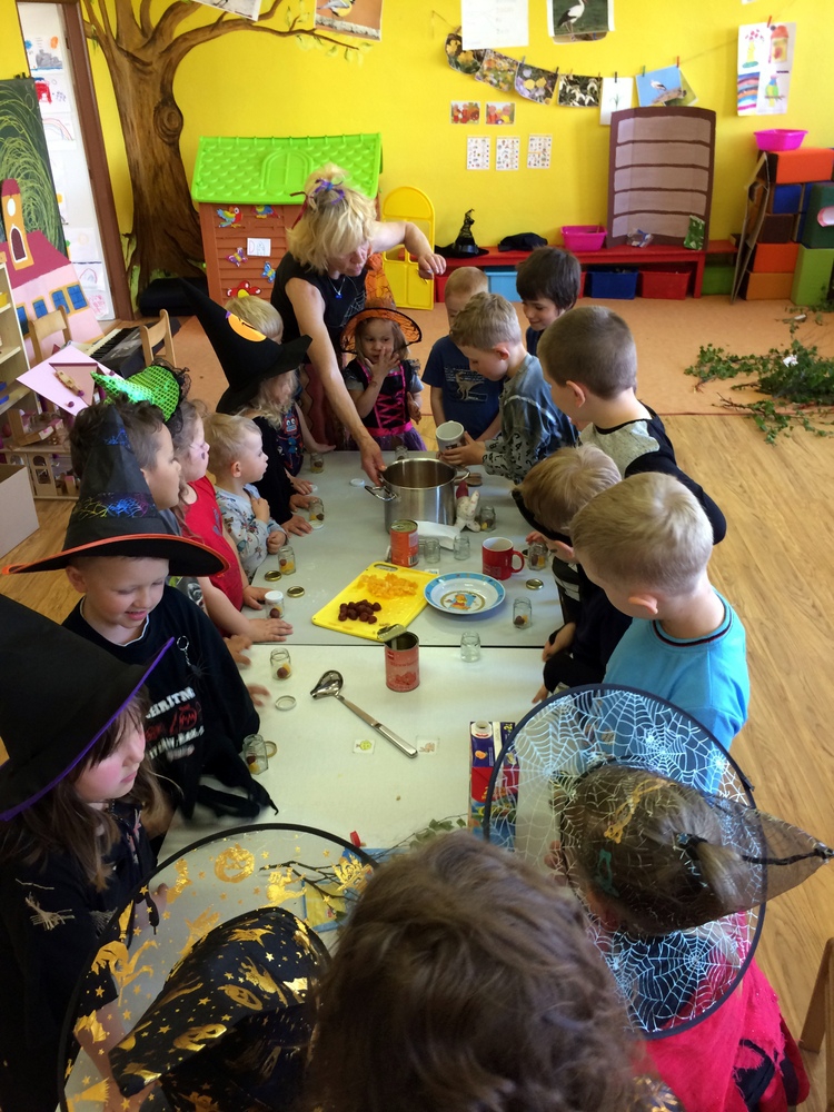 Společně jsme pak tančili, vařili kouzelný nápoj, hledali poklad v zakletém slizu,povídali si o kouzlech a zaklínadlech, létali na košťatech.