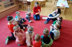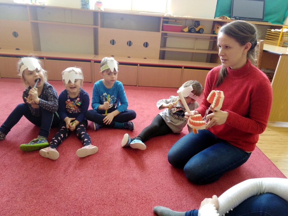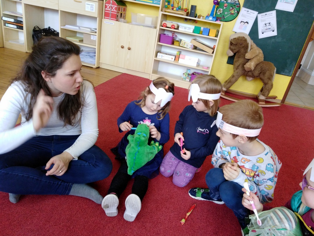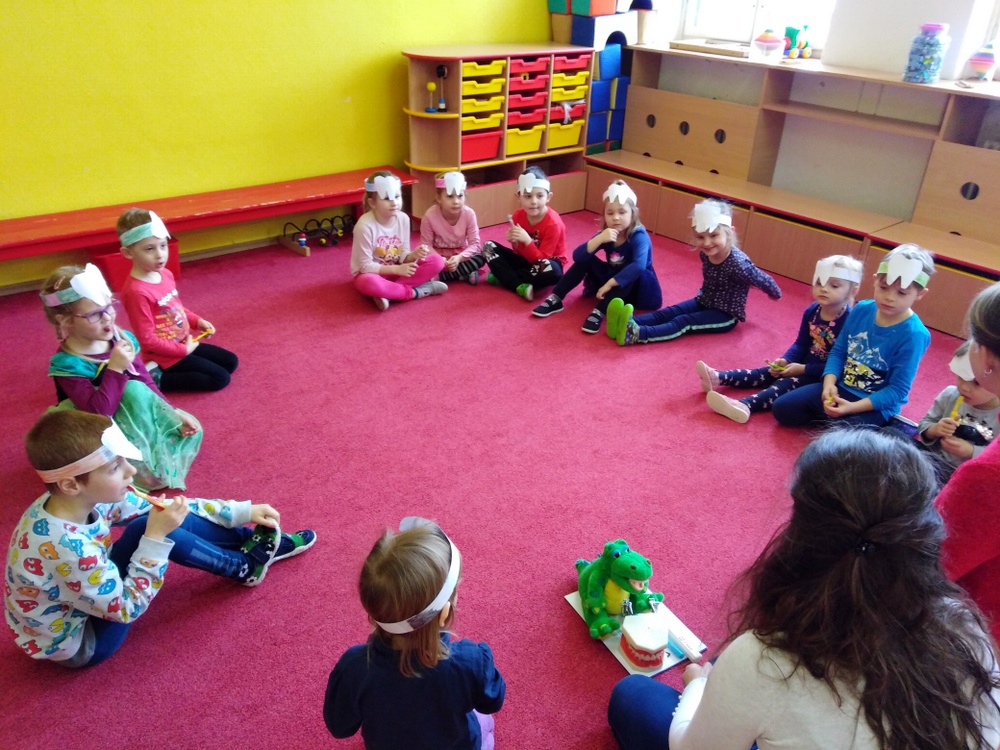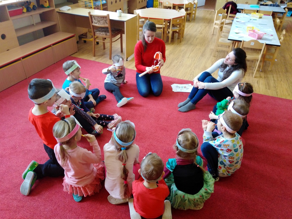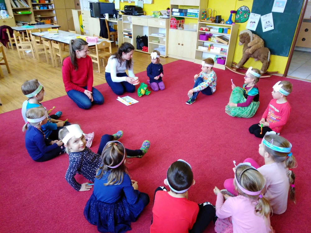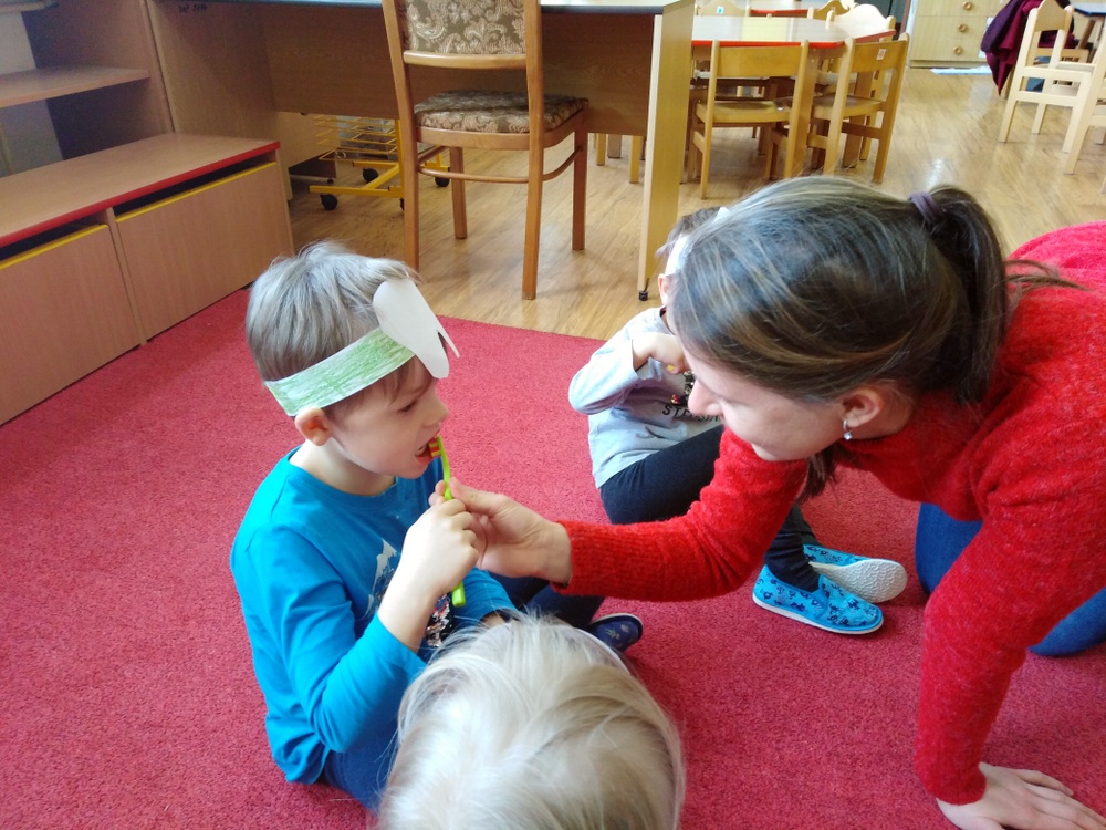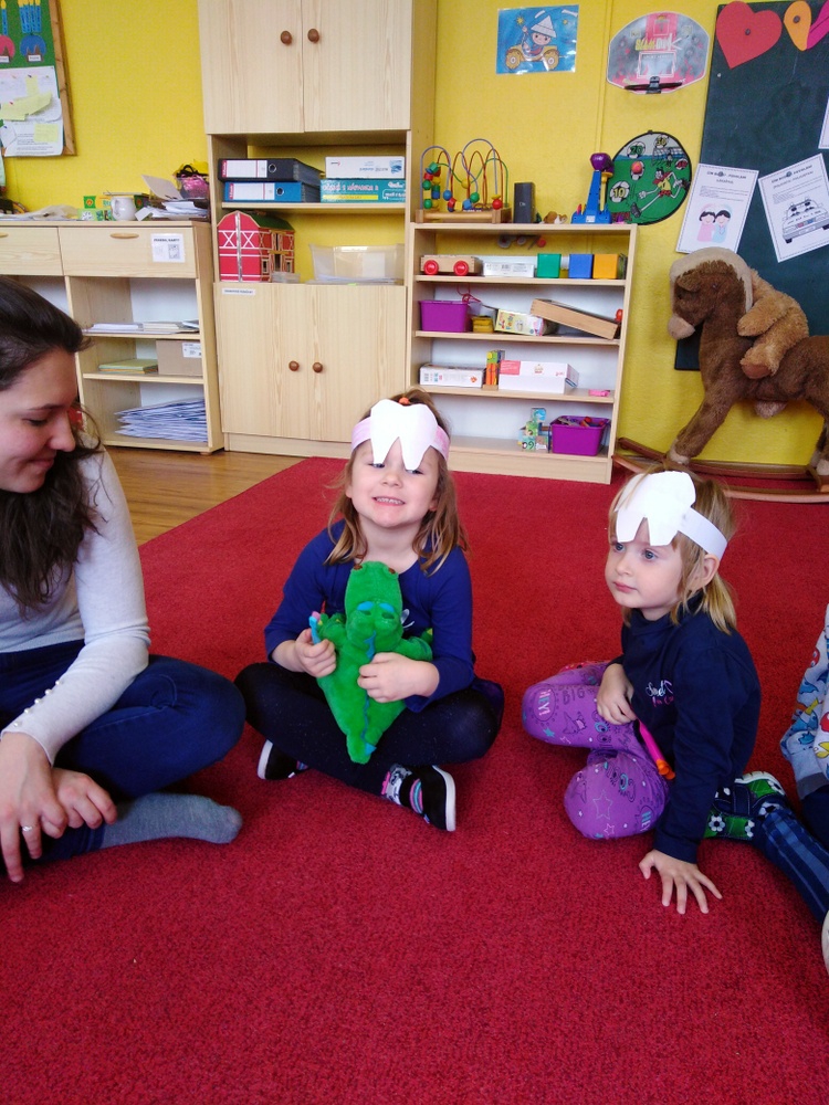Dne 12.2. nás ve školce navštívily zubní laborantky. Ráno si děti vyrobily zoubkovou čelenku pro navození hezké a vtipné atmosféry.