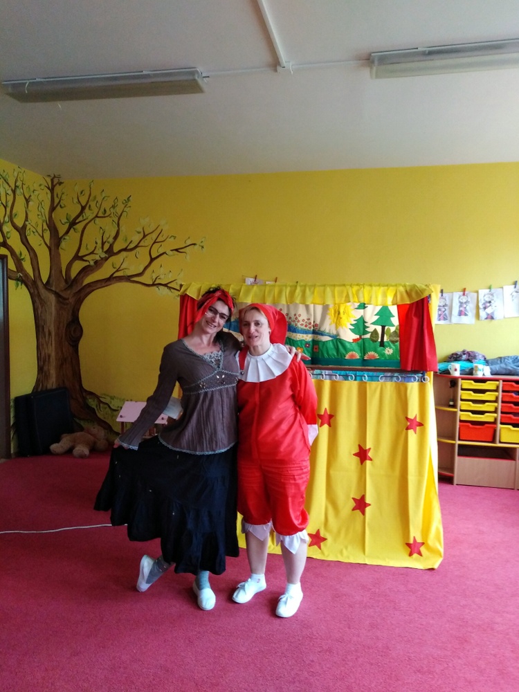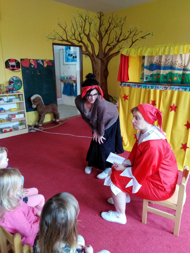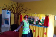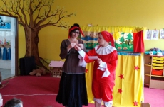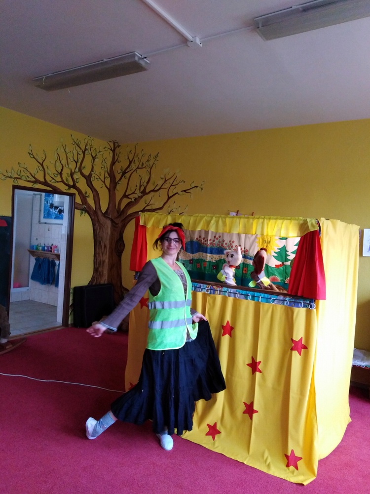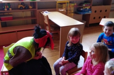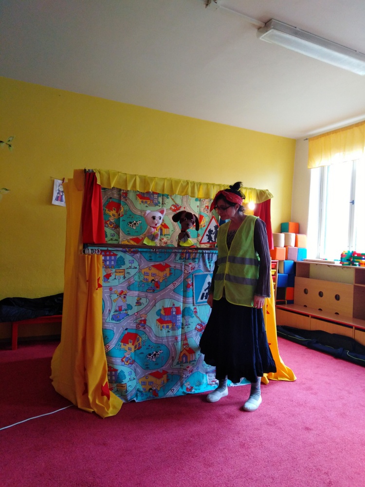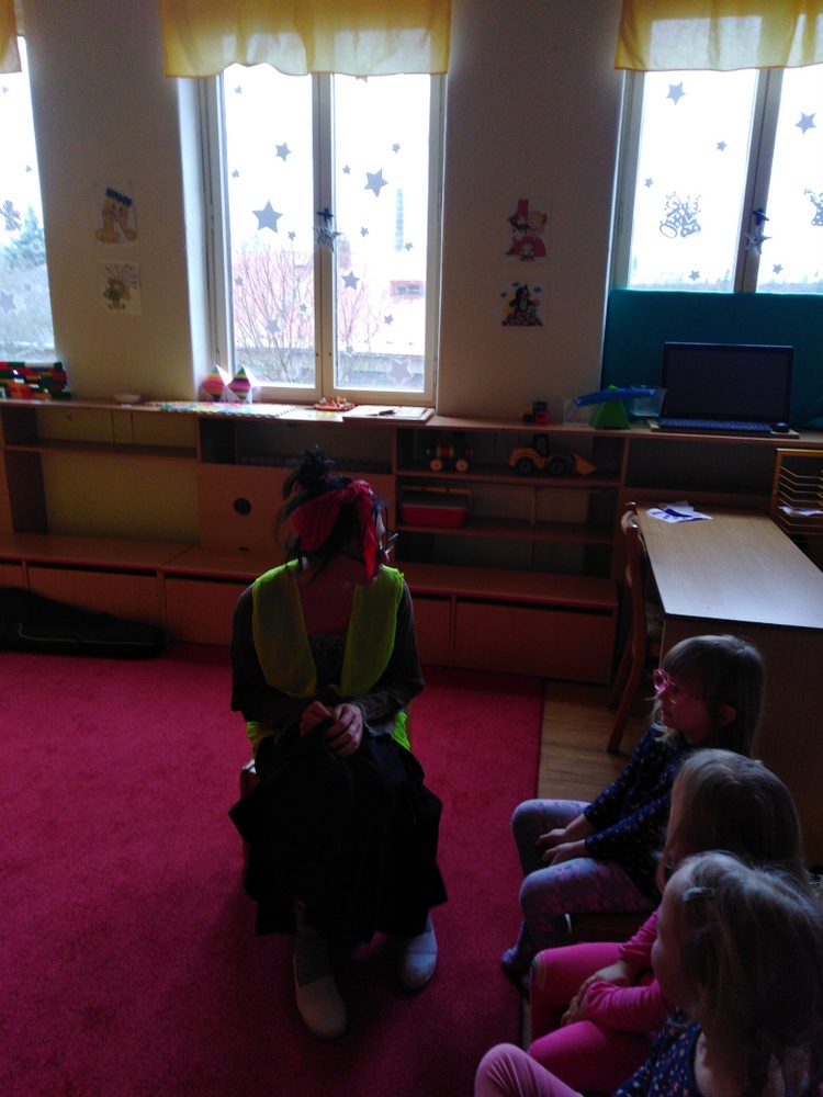 V březnu navštívilo naši školku Divadlo Úsměv s pohádkou Jak naučit čarodějku dopravním značkám.