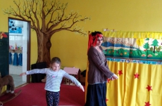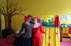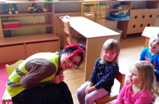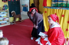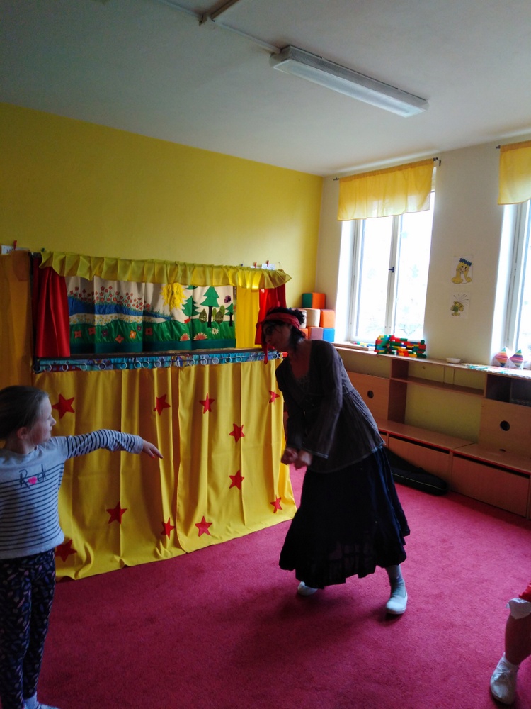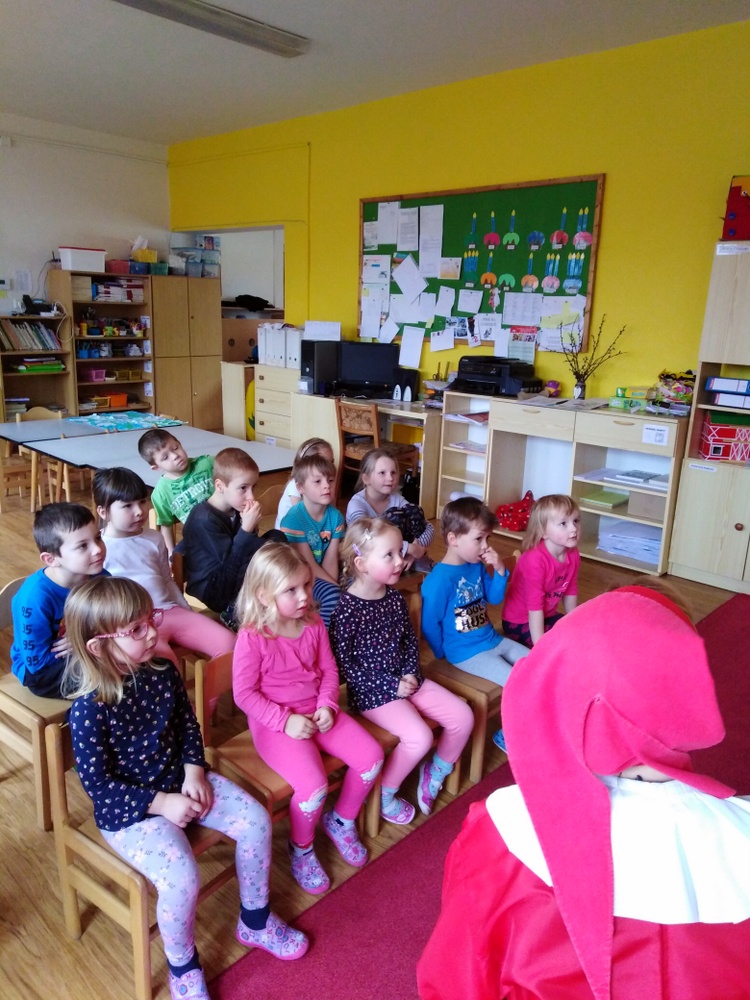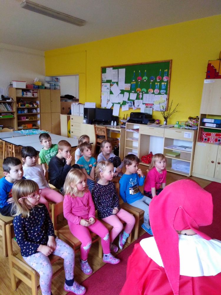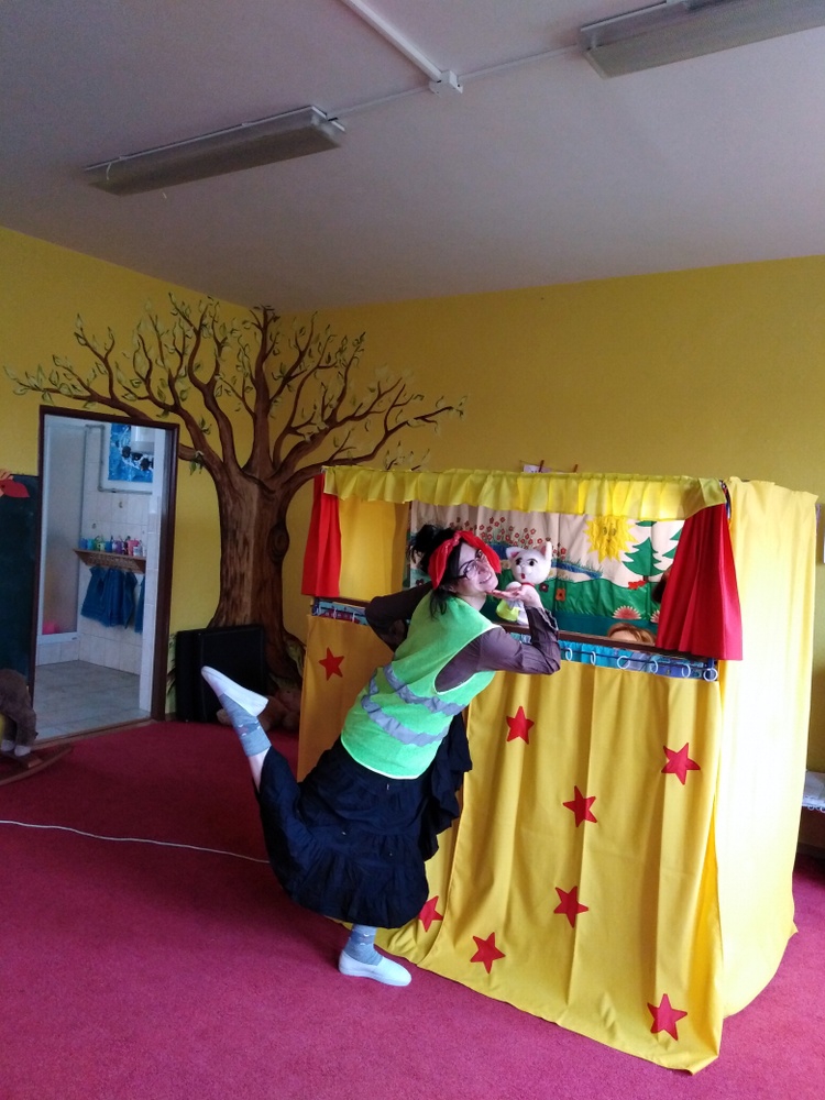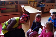 V březnu navštívilo naši školku Divadlo Úsměv s pohádkou Jak naučit čarodějku dopravním značkám.