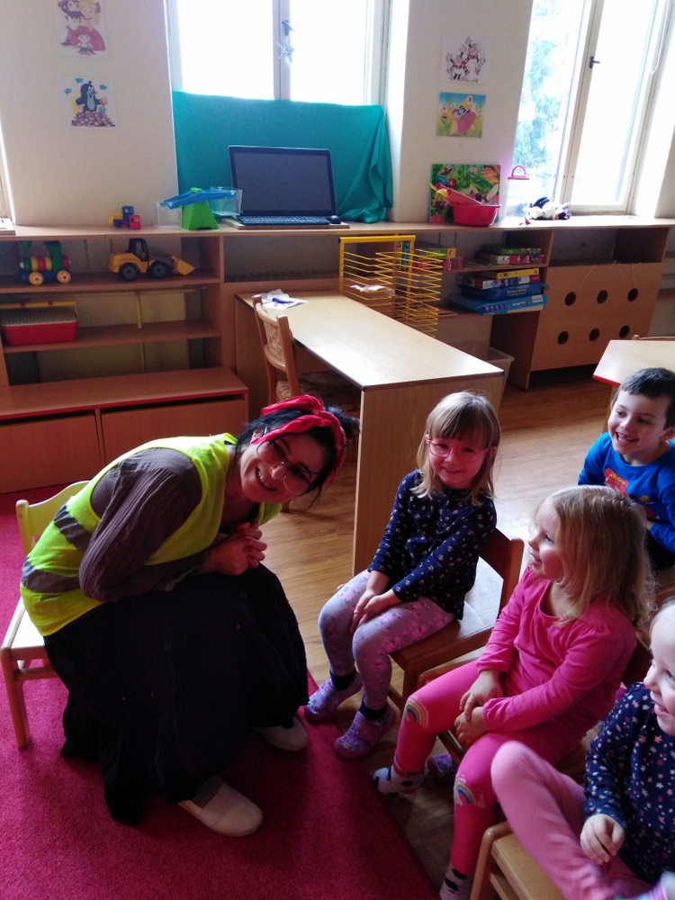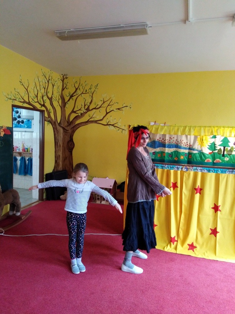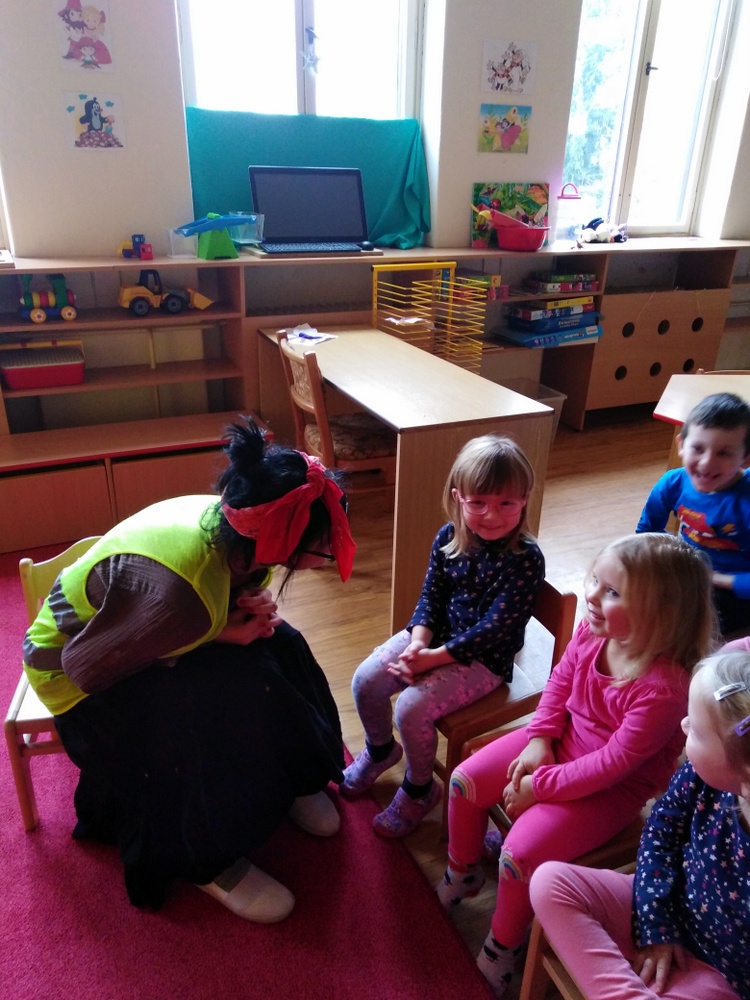 Děti se společně s čarodějnicí učili pravidlům silničního provozu a poznávat dopravní značky. Děti společně s čarodějkou zpívali, čarovali, smáli se a radovali z nového poznání.
