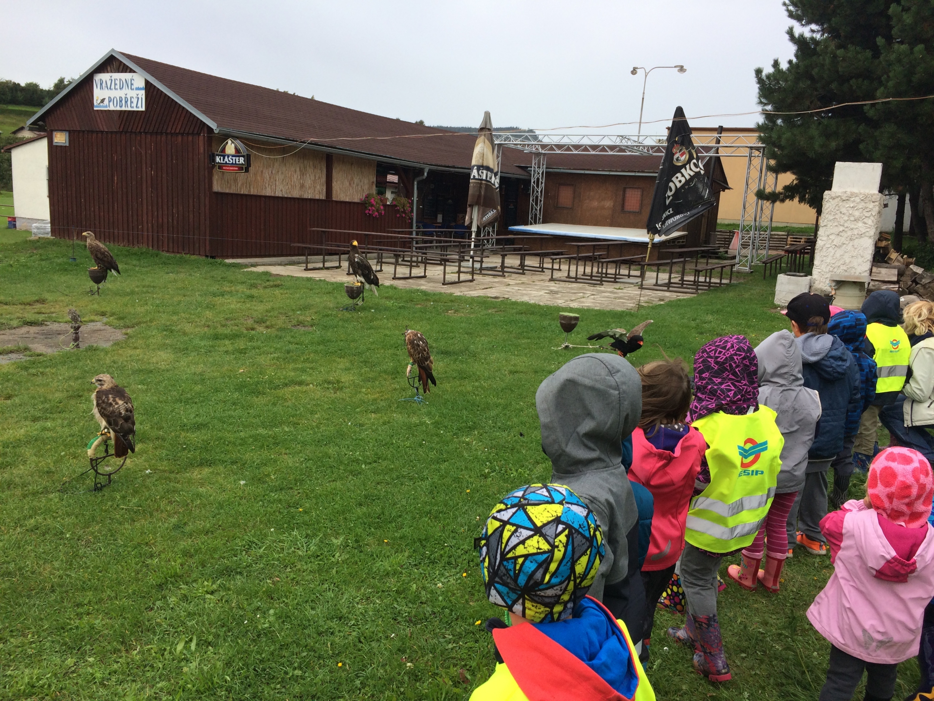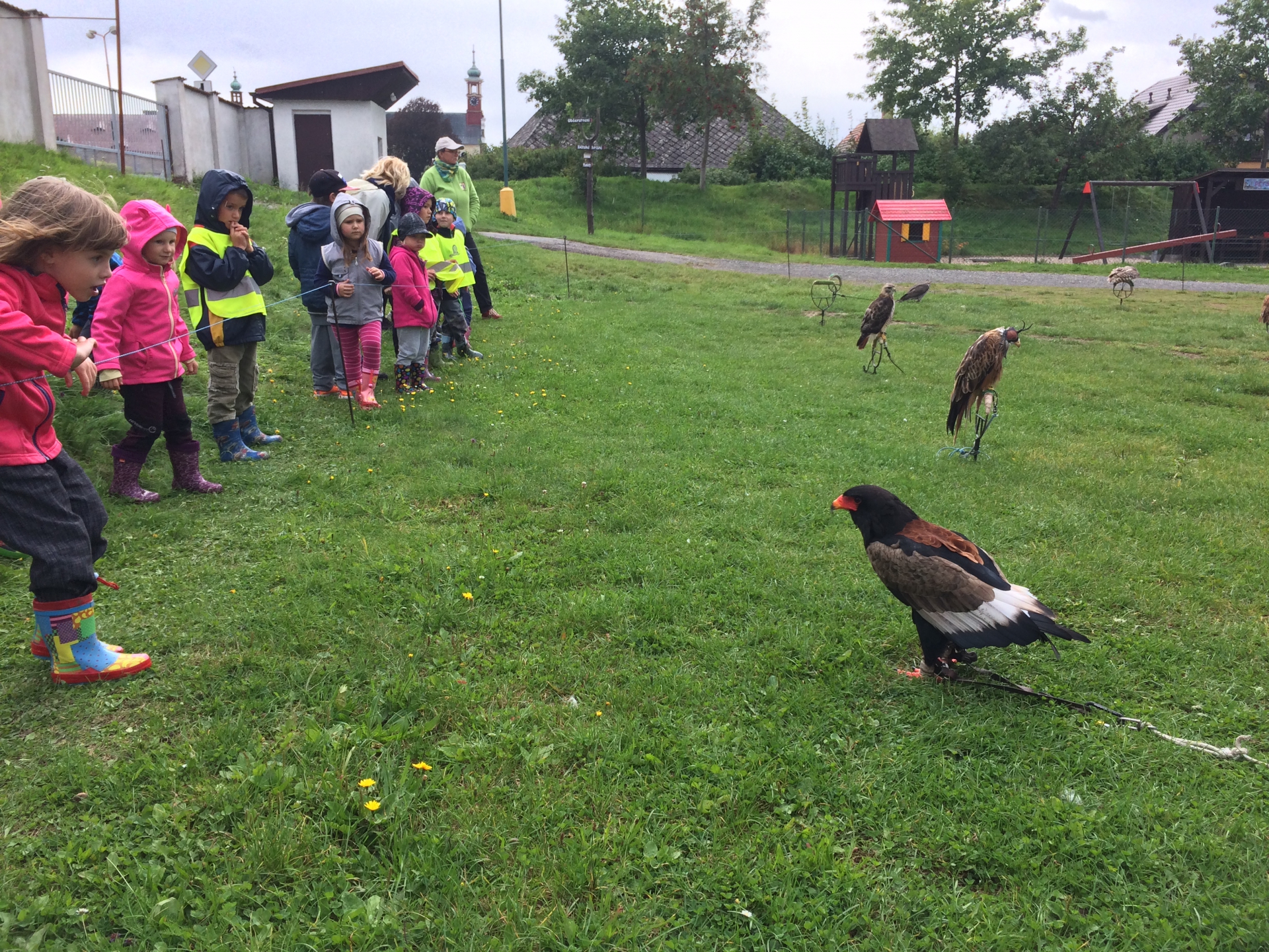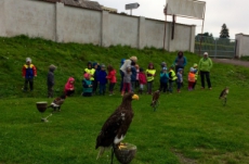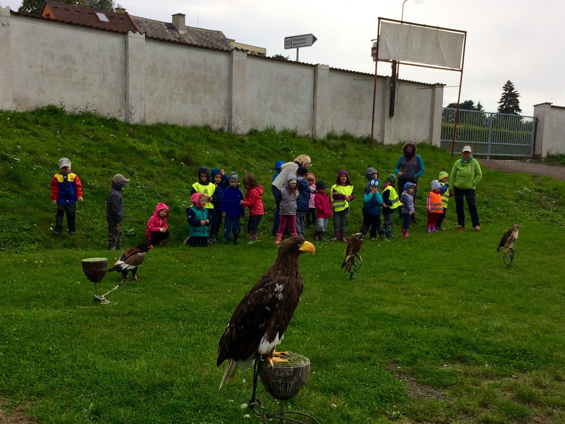 S dětmi jsme se byli podívat na ukázce dravých ptáků na nedalekém fotbalovém hřišti.