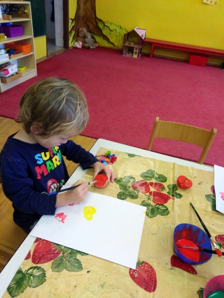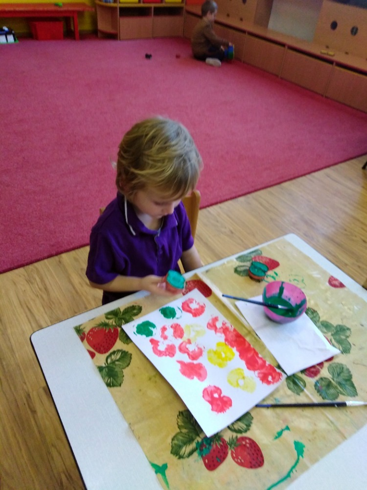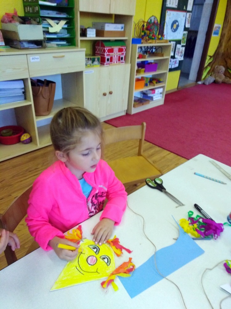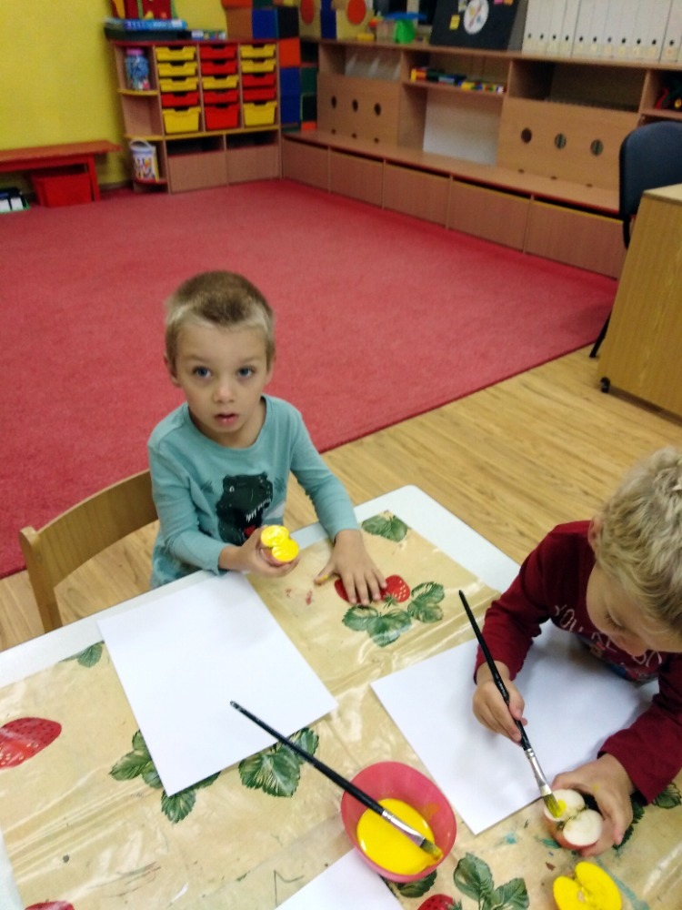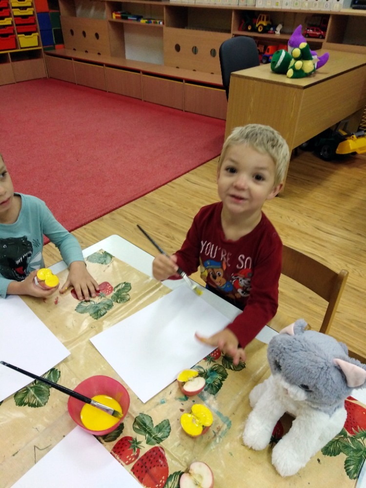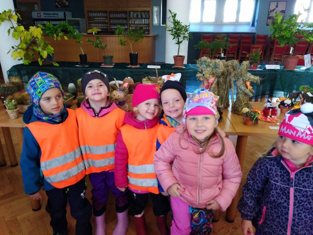 Celý měsíc jsme navazovali kamarádské vztahy, vytvářeli školková pravidla, zdokonalovali návyky a dovednosti v rámci hygieny, sebeobsluhy a stolování. Zahájili jsme celoroční sportovní projekt Se Sokolem do života. Se skřítkem Podzimníčkem jsme zopakovali roční období a připomněli si znaky podzimu. Pozorovali jsme změny a barvy v přírodě. Na téma „plody podzimu“ jsme tvořili, učili se nové básničky a písničky, hráli na rytmické nástroje. Také jsme se podívali na podzimní výstavu v Pellyho domech.