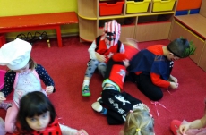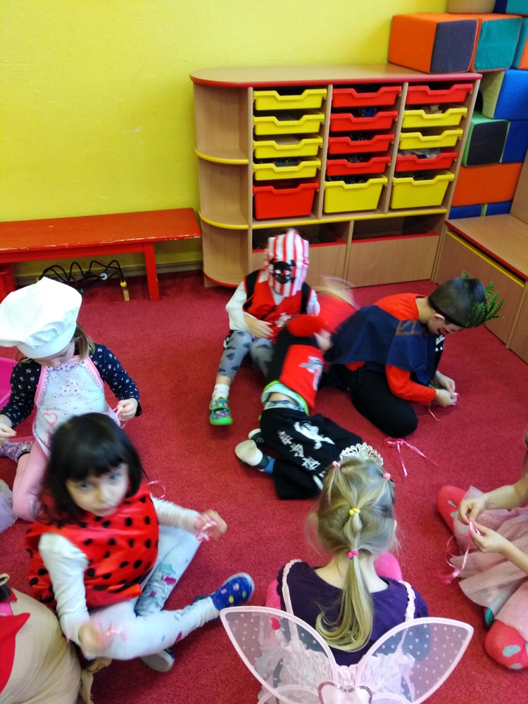 Již od pondělí jsme se připravovali na čtvrteční karneval. Vyráběli jsme papírové karnevalové masky, kreslili jsme klauny, ale především jsme se snažili navodit dětem veselou karnevalovou atmosféru.