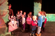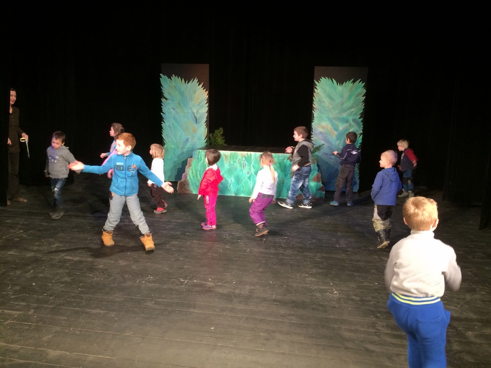 Dne 28.3. jsme navštívili Kolárovo divadlo v Polici nad Metují, kde děti shlédly divadelní představení: Tajemství lesní tůně. Po představení měly děti možnost si prohléhnout jeviště.