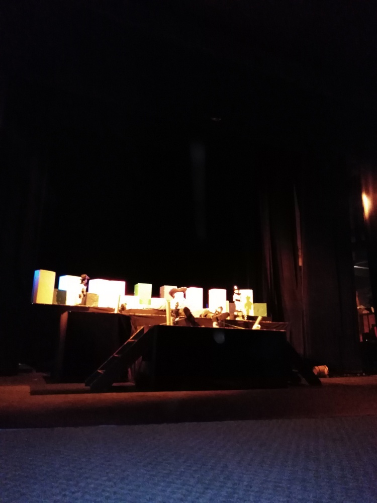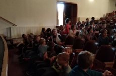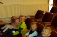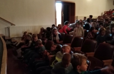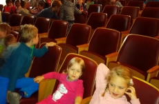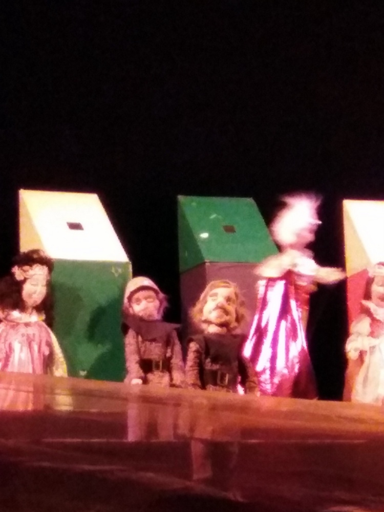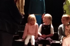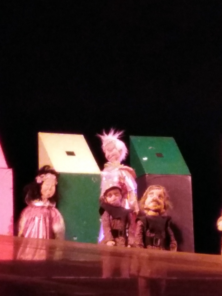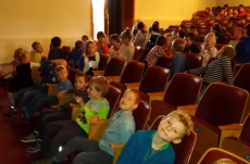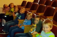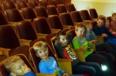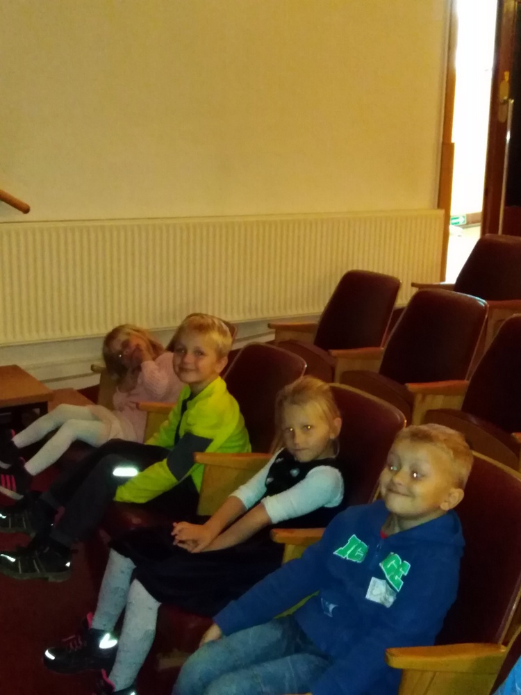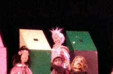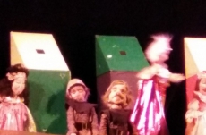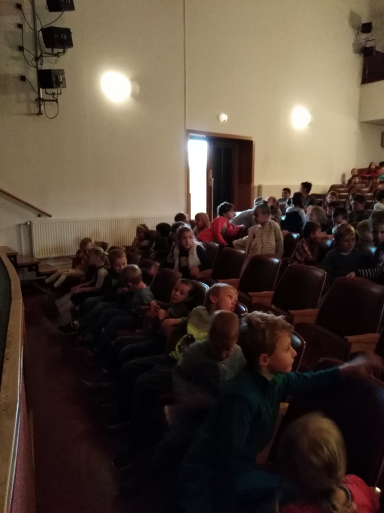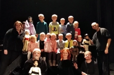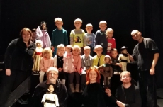 Děti se po skončení představení seznámily s loutkami i loutkoherci. Vše zakončilo společné focení na pódiu divadla.