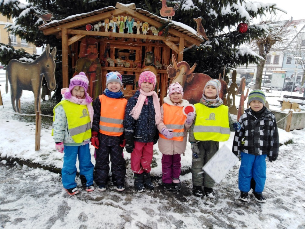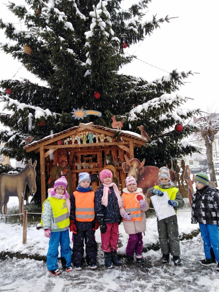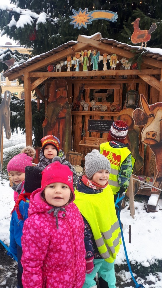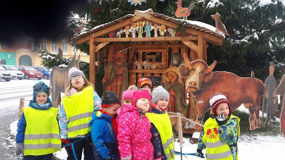 Na náměstí jsme obdivovali vánoční strom s betlémem.